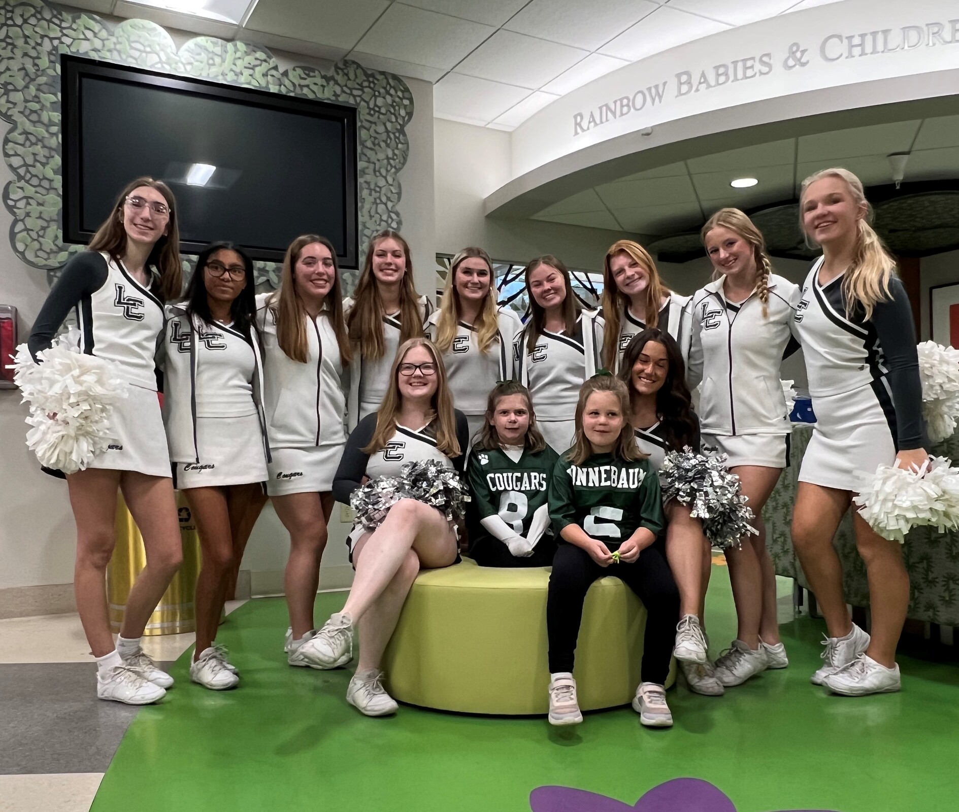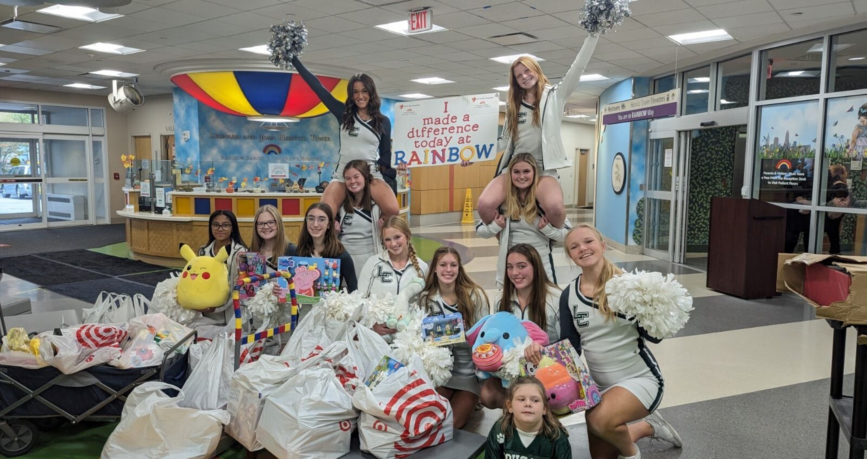 Lake Catholic High School, led by its cheerleading team, raised more than $4,400 to use for donations that the team delivered Oct. 16 to University Hospitals Rainbow Babies & Children’s Hospital’s Angie Fowler Adolescent & Young Adult Cancer Institute.