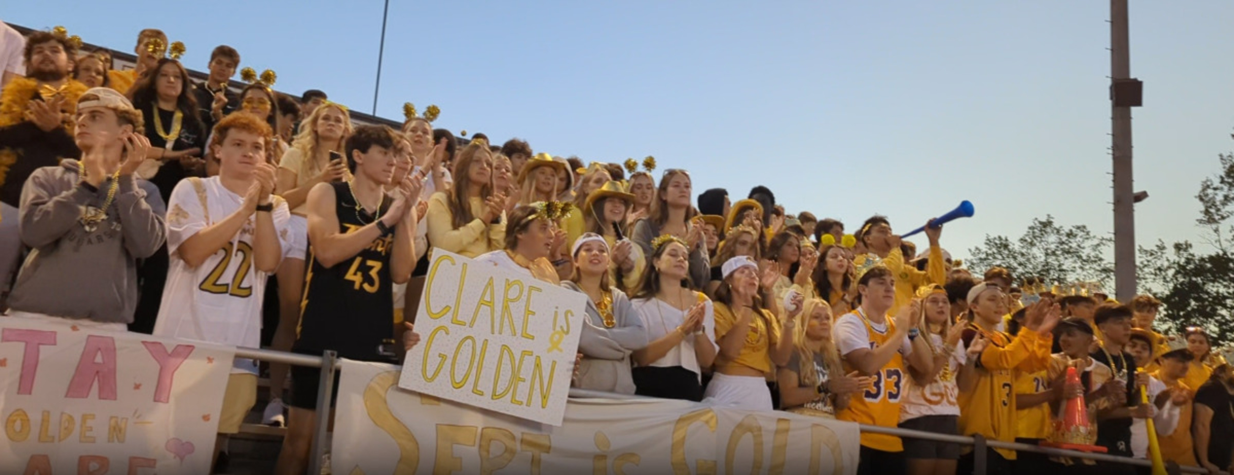 Carla Ronnebaum, the school’s director of advancement and a 2000 graduate, was affected by childhood cancer when her daughter Clare was diagnosed with brain cancer five years ago. The Ronnebaums were the catalyst for the cheerleaders’ campaign, which started in September, Childhood Cancer Awareness Month.