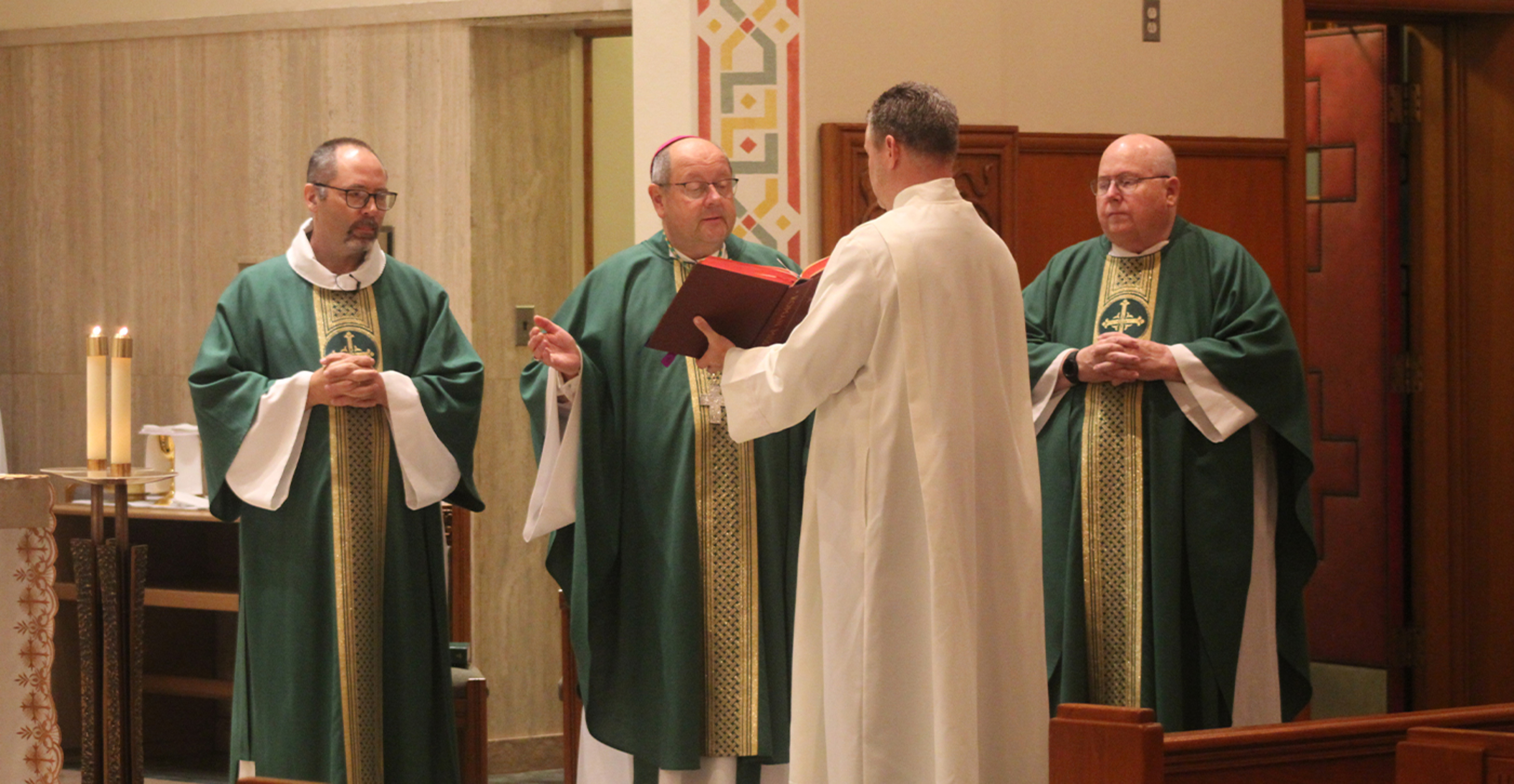 With these words, Bishop Edward Malesic greeted those attending the opening Mass at the annual deacon convocation on Oct. 21 at the Center for Pastoral Leadership in Wickliffe. The bishop celebrated the liturgy in Sacred Heart Chapel for many of the diocese’s deacons, their wives and members of the Permanent Diaconate Formation Program.