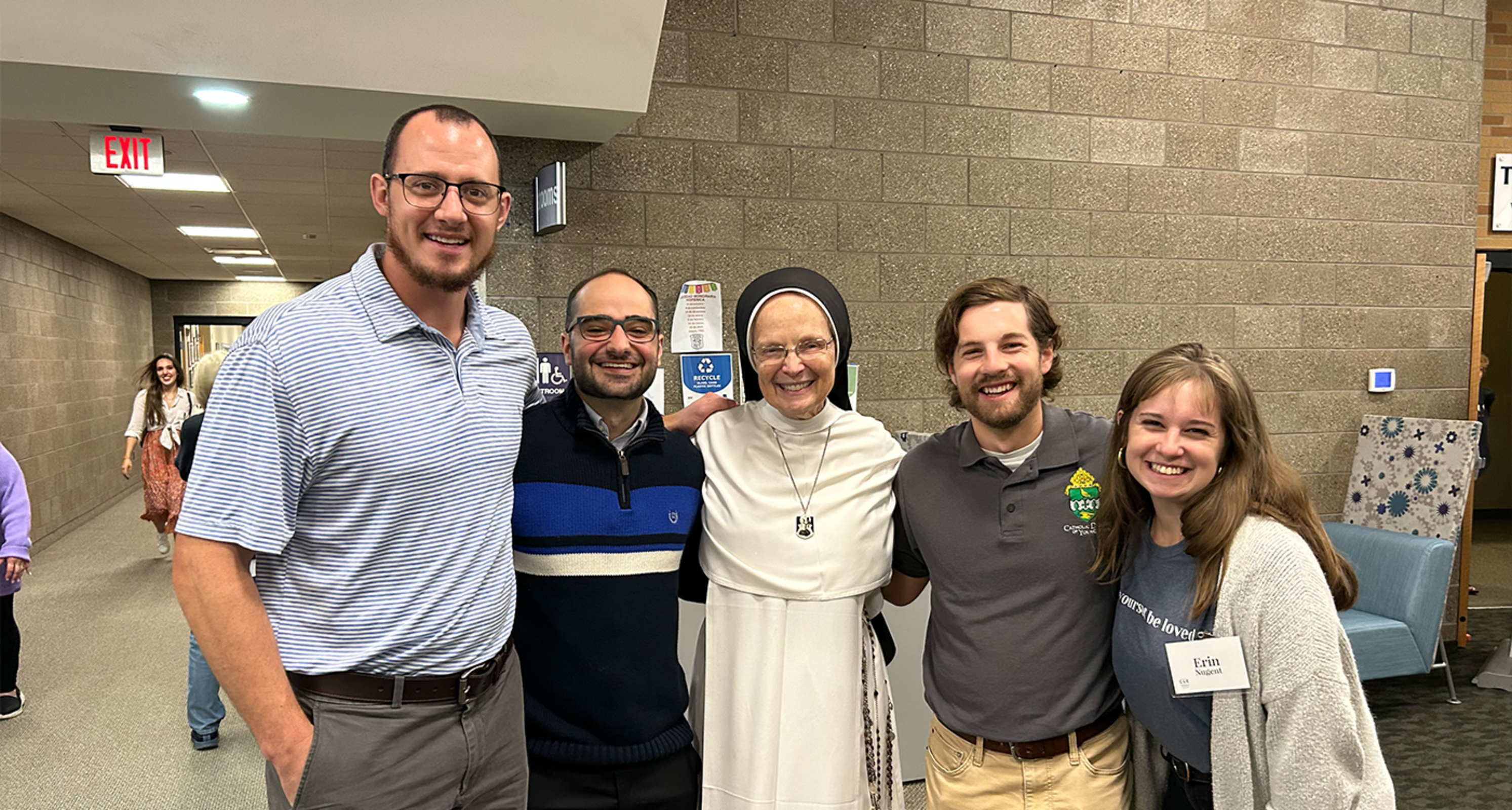 After Mass, attendees had a chance to mingle with the bishop, pose for photos and have items blessed before heading to the cafeteria area for a light breakfast and discussion. Sister Bogdanowicz addressed the group after breakfast. Next on the agenda was lunch followed by confessions and adoration until 2 p.m. Bulman spoke at the afternoon session, which was followed by questions and answers and closing prayer.