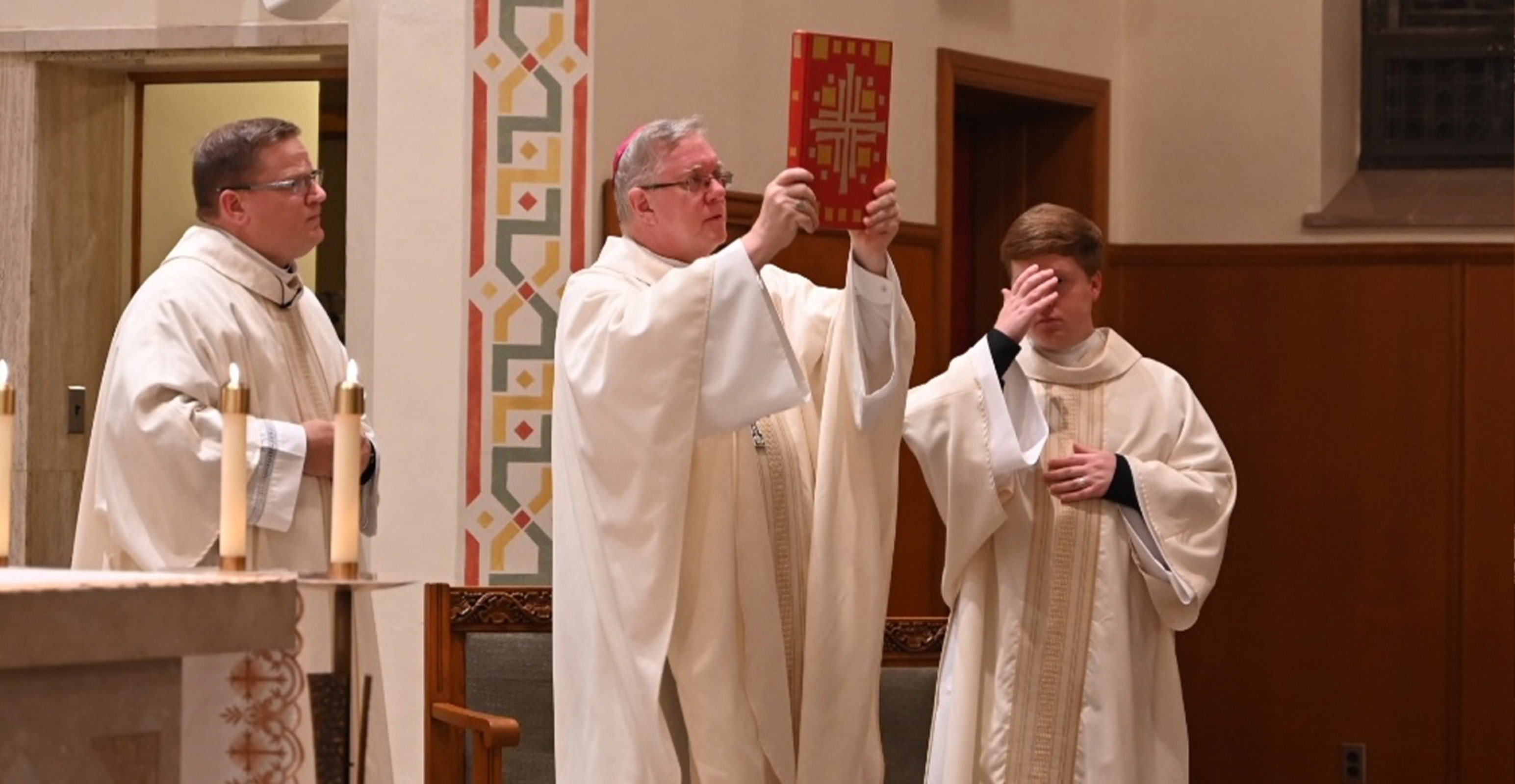 “Tonight, you will be given a special office – a unique responsibility – within the Christian community to be bearers of God’s word. Yes, you will proclaim God’s word in the liturgical assembly, but you will be more than just glorified professional readers. Likewise, being instituted in the ministry of lector is more than just another step propelling you, God willing, to sacramental ordination,” Auxiliary Bishop Michael Woost told the five seminarians who were instituted into the ministry of lector.