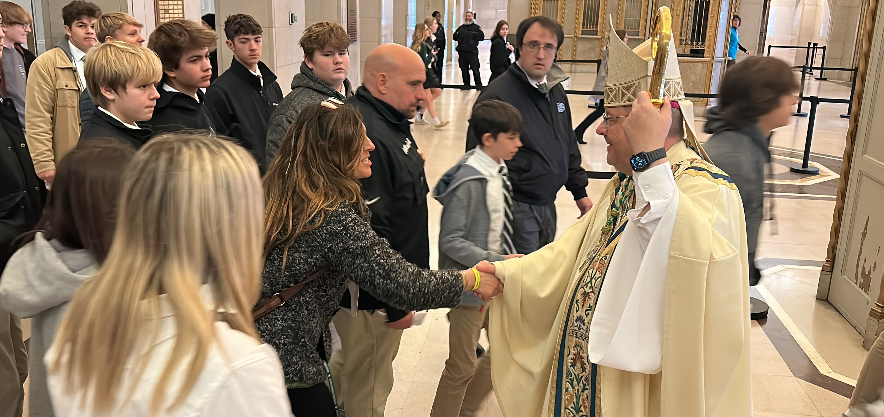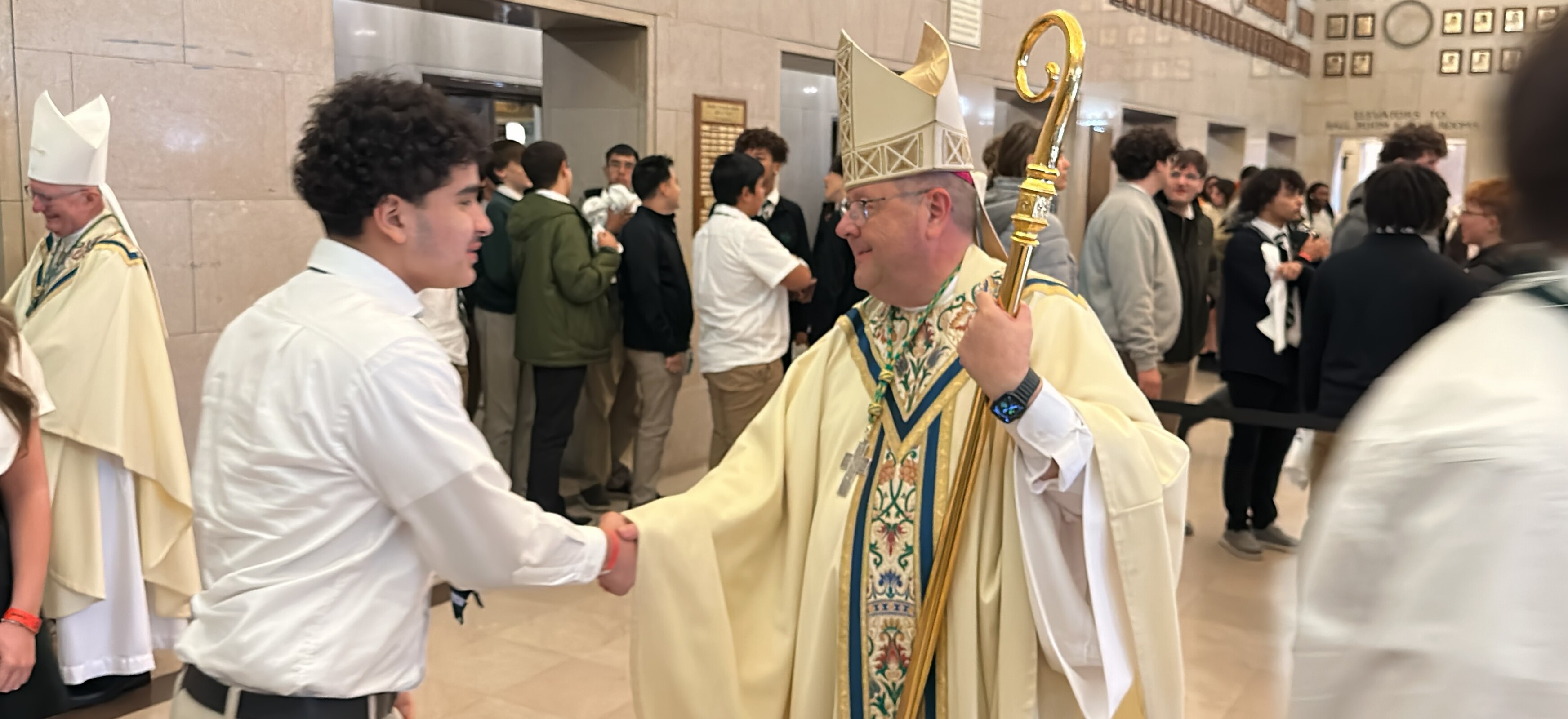 The Mass provides a foretaste of heaven, an opportunity to “be part of a faithful and joyful community, not online, but in person, in the flesh. To experience the real presence of real people together. To experience the real presence of God together … In all our diversity – and we are each unique – we are still one body, one body in Christ, And each one of us is loved by the God who made us. Not one of you, not one of your classmates, not anyone you know is excluded from God’s love. He wants the very best for you; he wants you to be saints,” the bishop said. Even with all our flaws, God can draw us together in his great love for us as individuals and as Church.