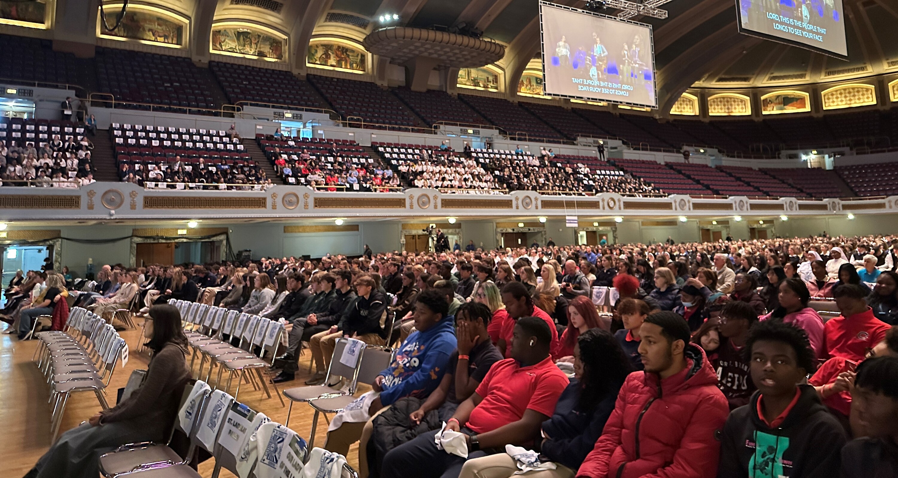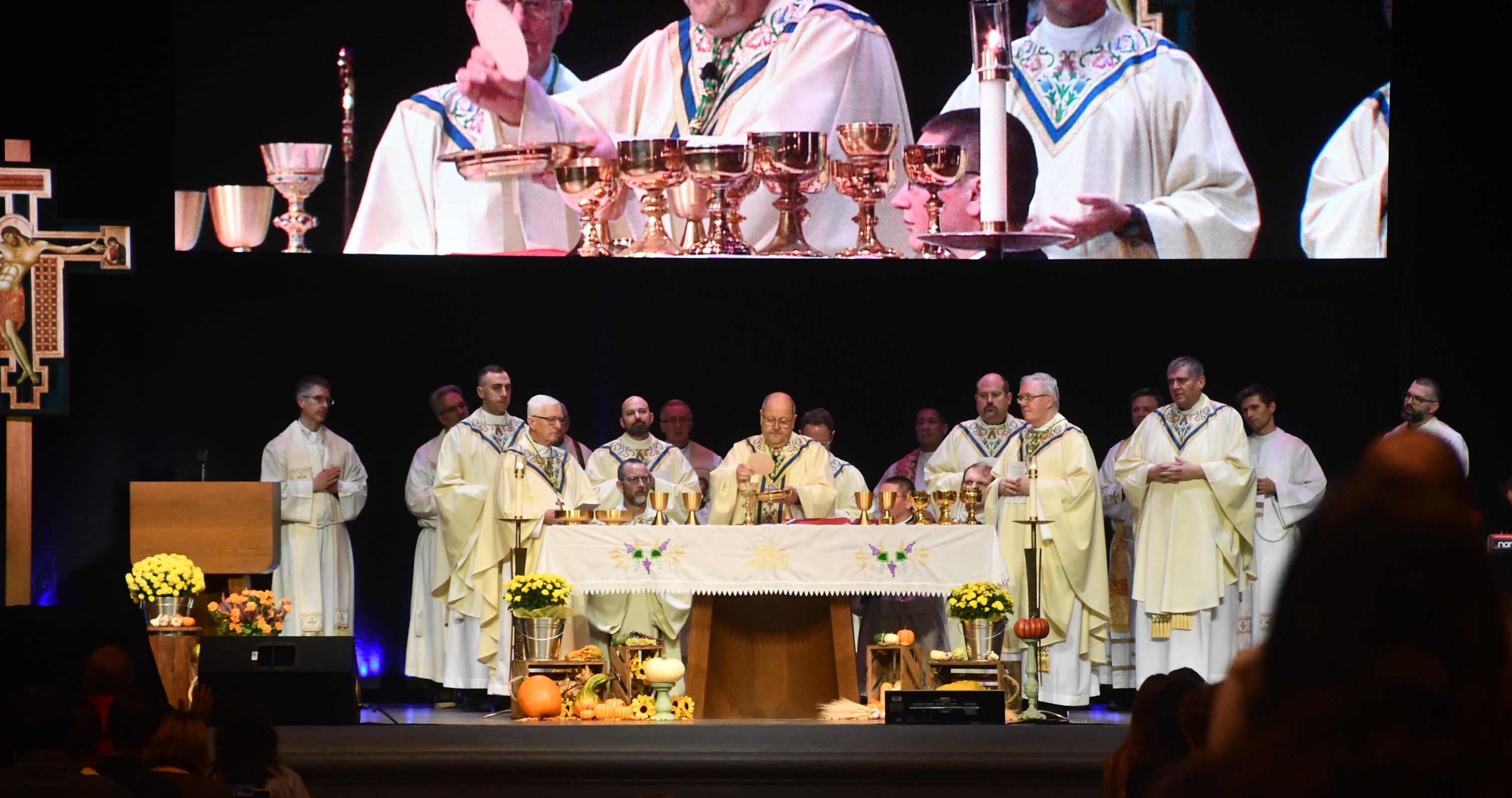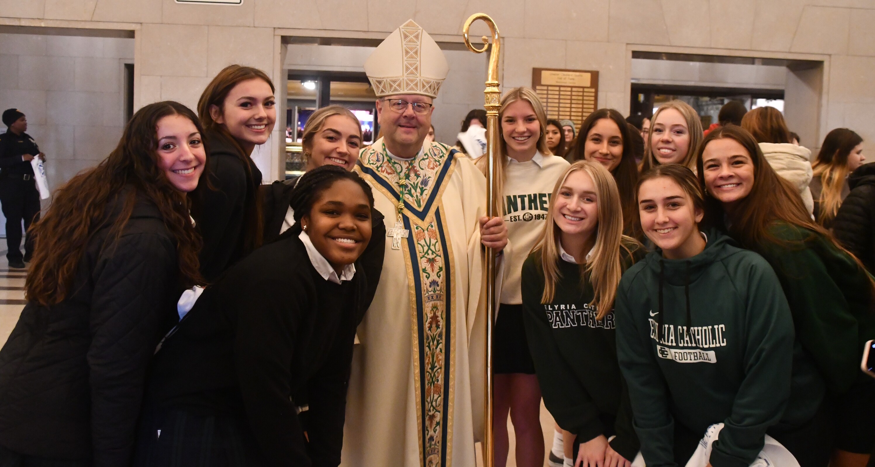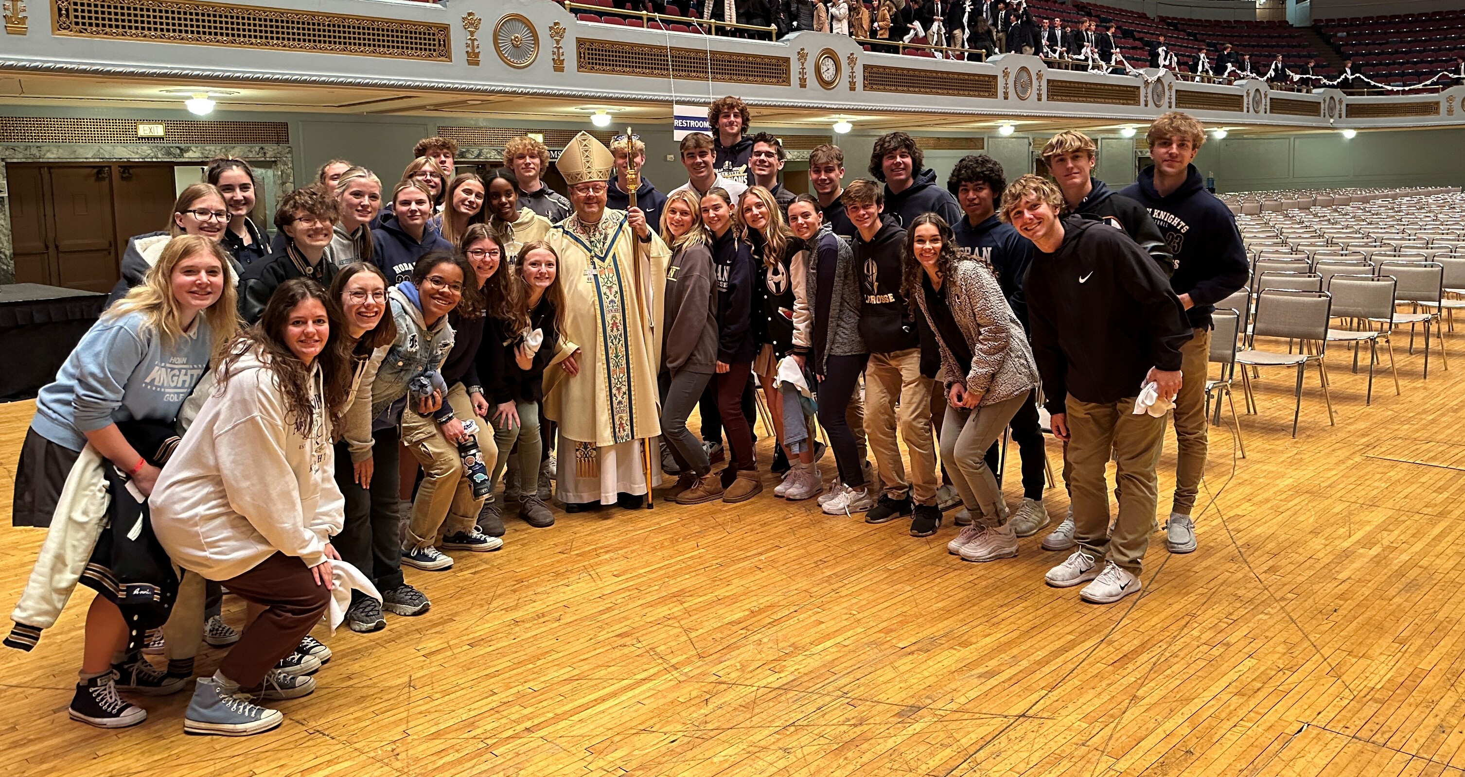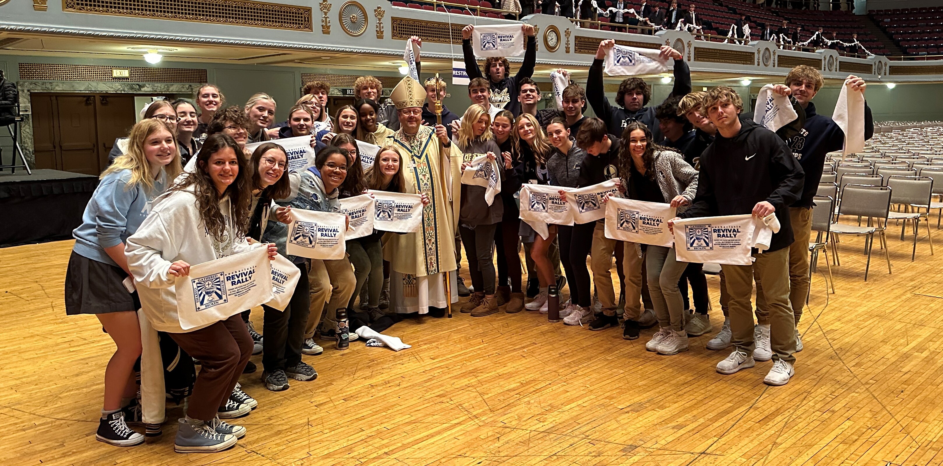 Thousands of young people from Catholic high schools and parishes throughout the eight-county Diocese of Cleveland gathered at the historic Cleveland Public Auditorium on Nov. 1 for a Eucharistic Revival Rally and Mass.