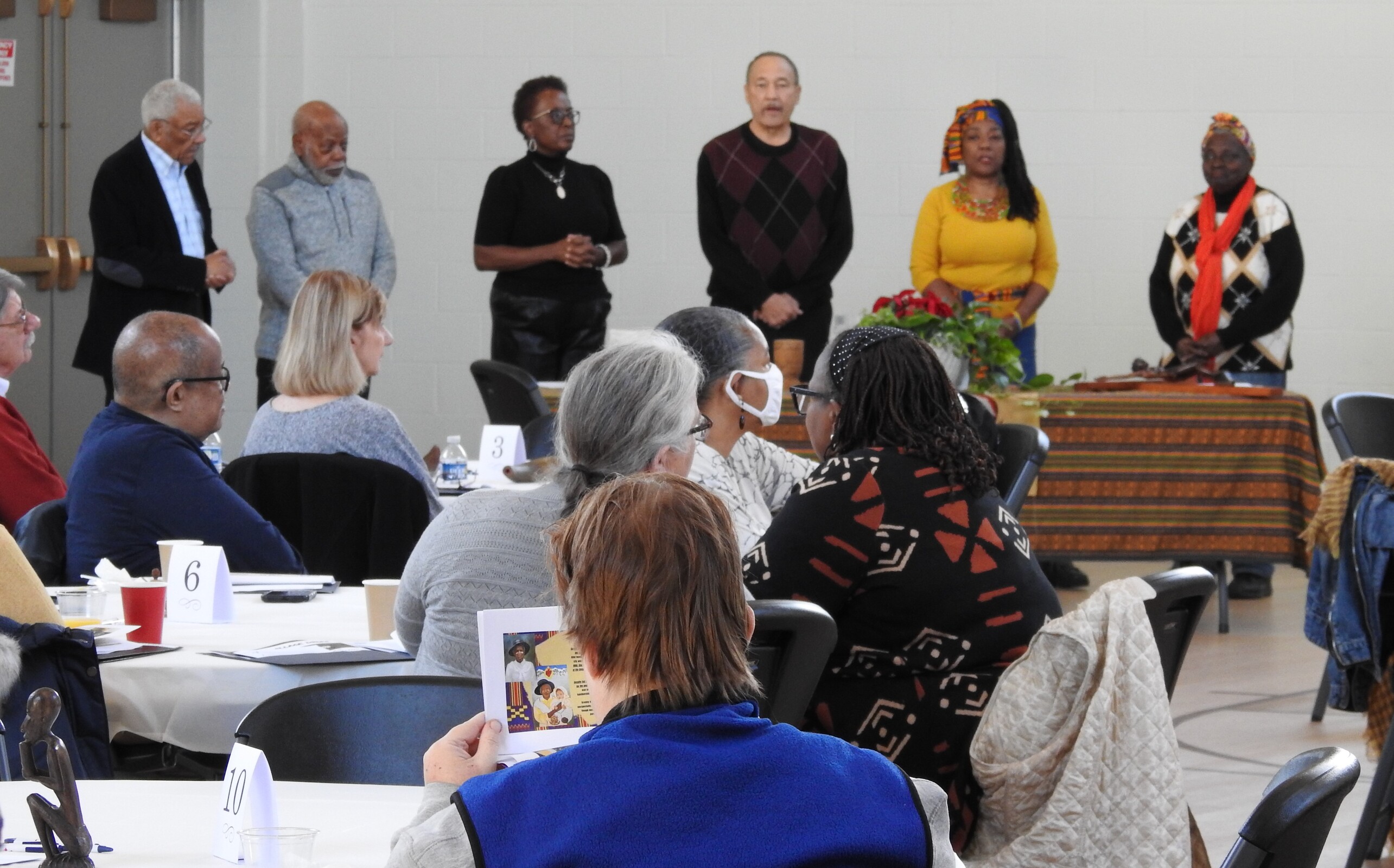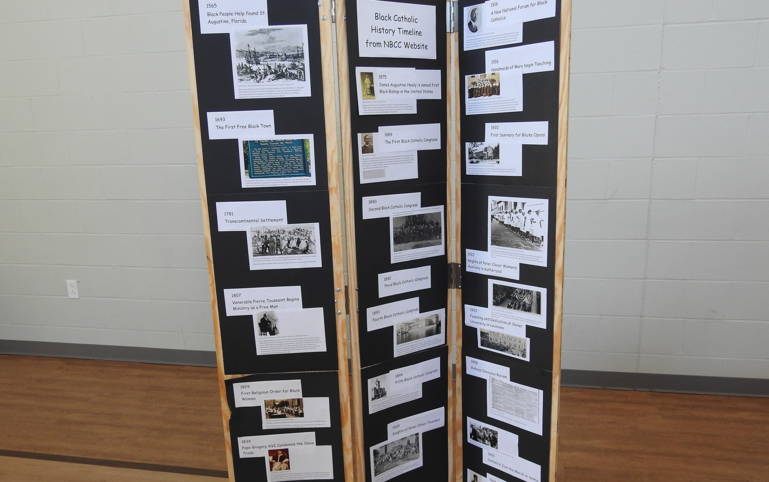 Deacon Allen showed a brief video about each candidate and noted there was a display about each on a table at the back of the room. There also was a board with important dates, facts and figures for Black Catholics.