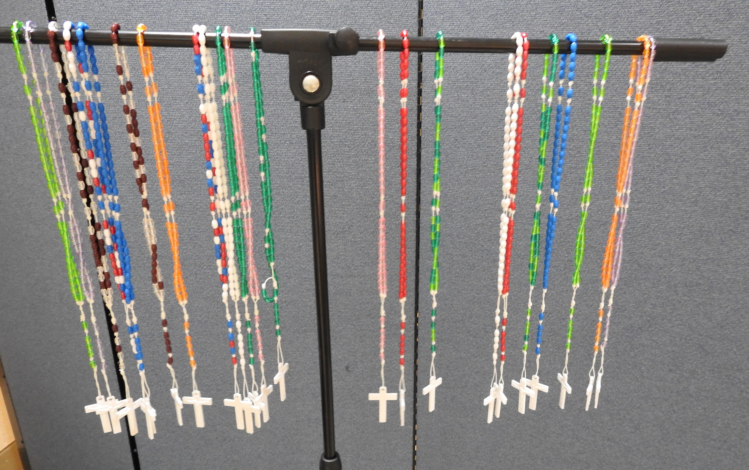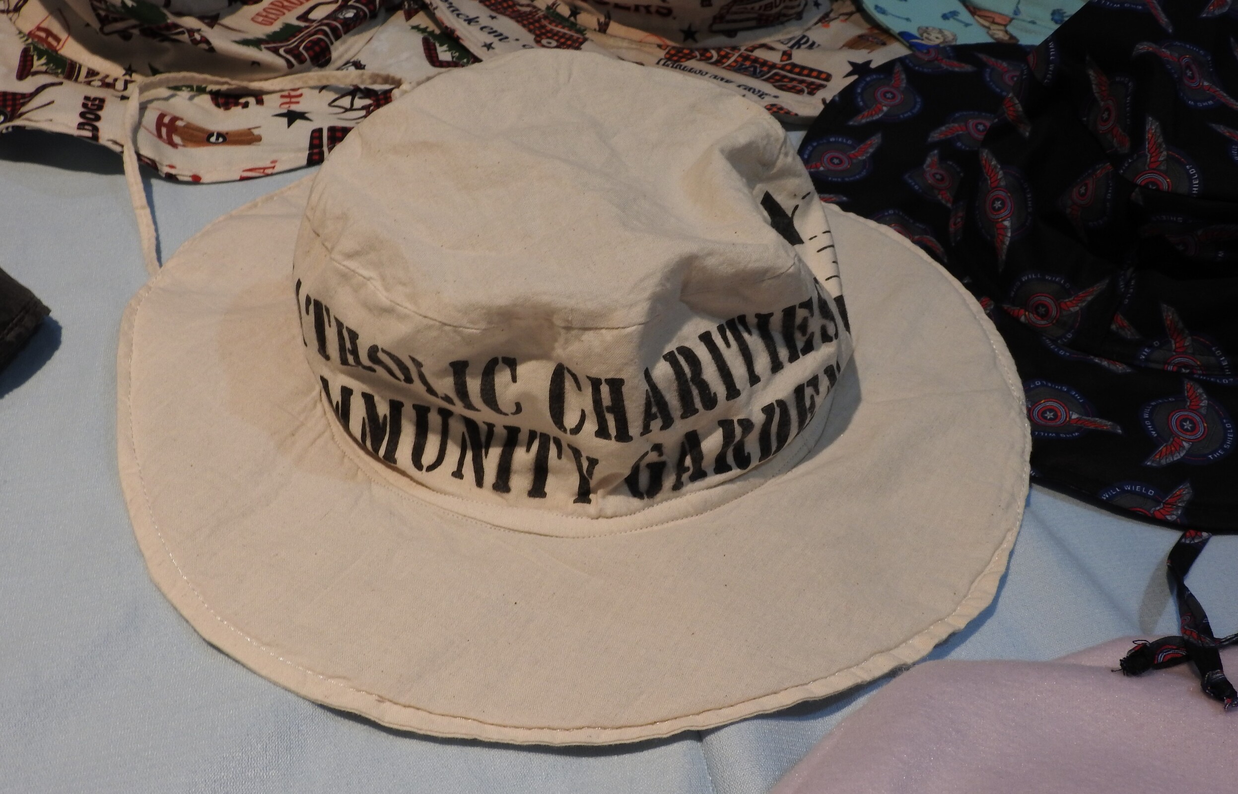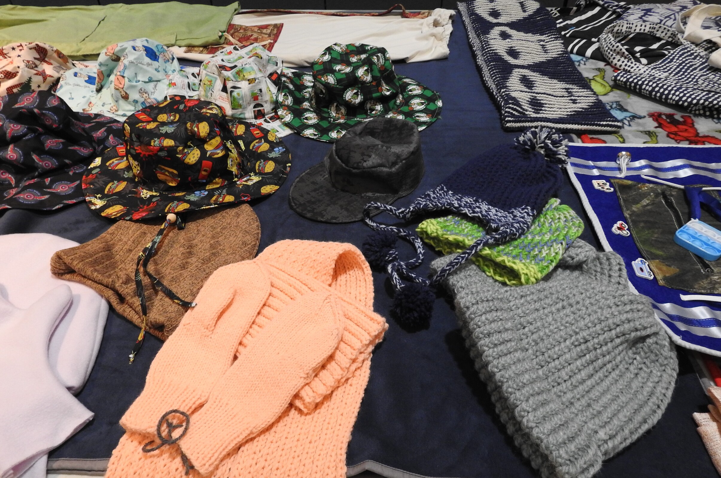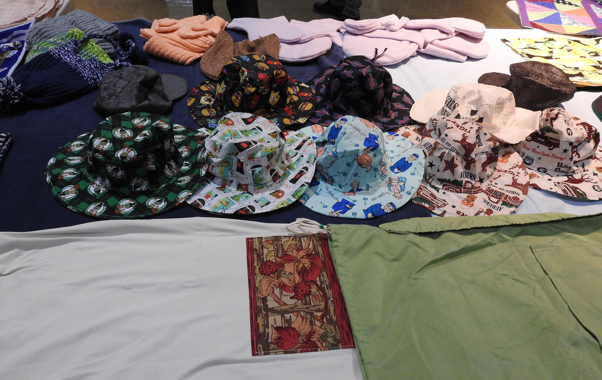 As the need for face masks waned, the men shifted to other projects such as hats, baby swaddlers, blankets, wheelchair and walker bags, clothing cover-ups for nursing home residents, laundry bags, toiletry bags, cell phone bags, fidget blankets, scarves, hats, mittens and even some curtains. A few of the men also knit and crochet and some have made rosaries. Some of their work has found its way to the border of the United States and Mexico, where the items assist refugees and immigrants.