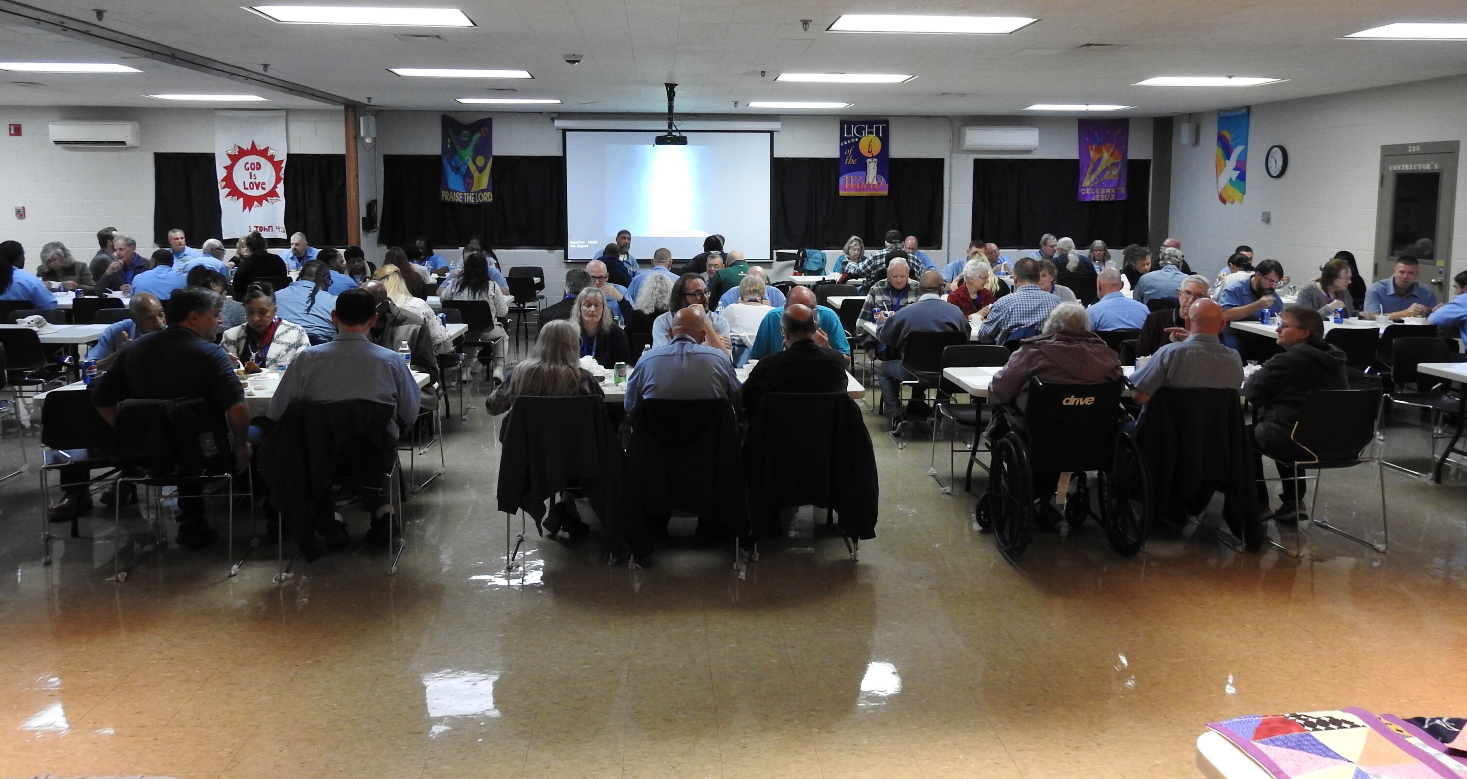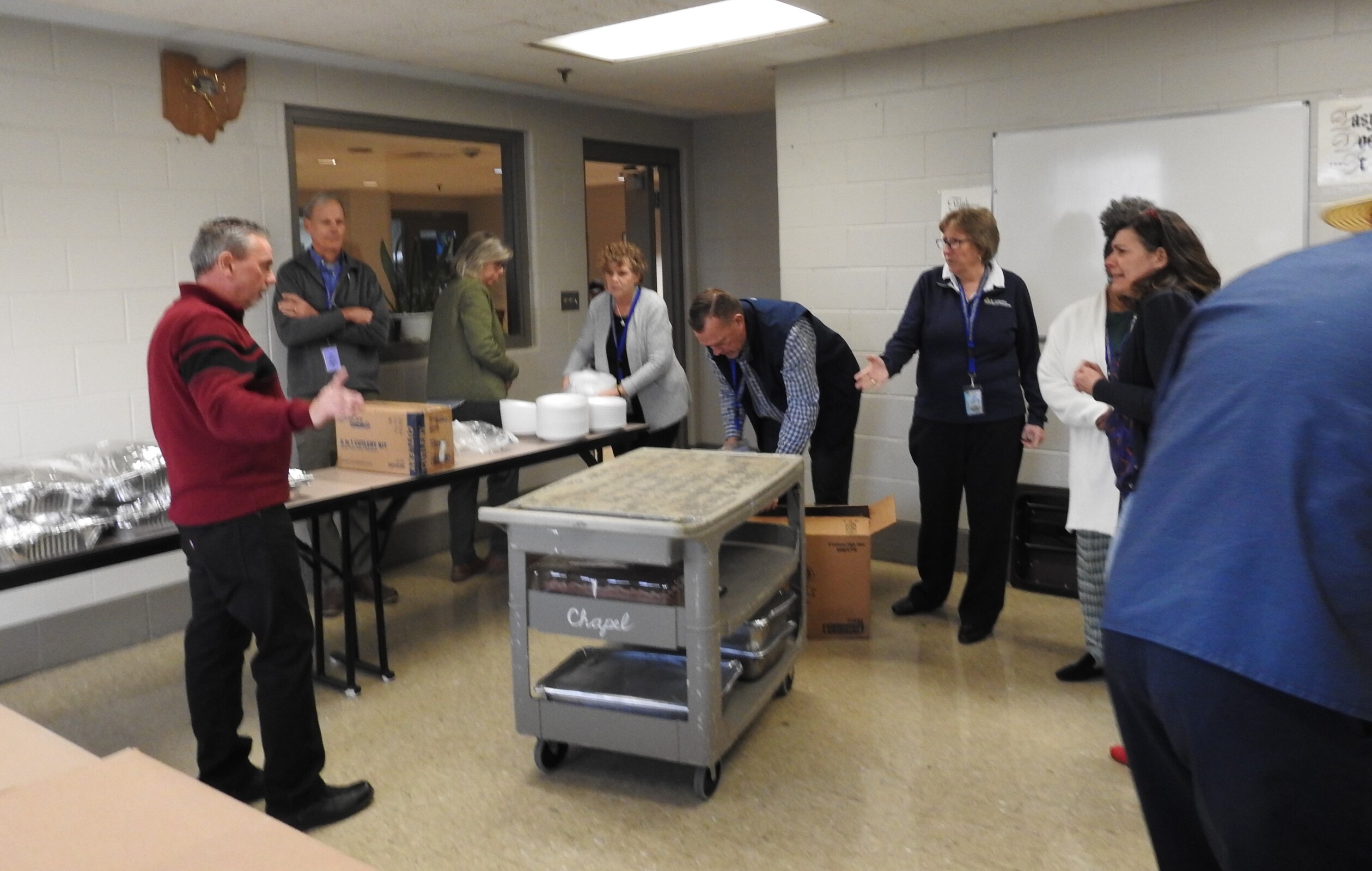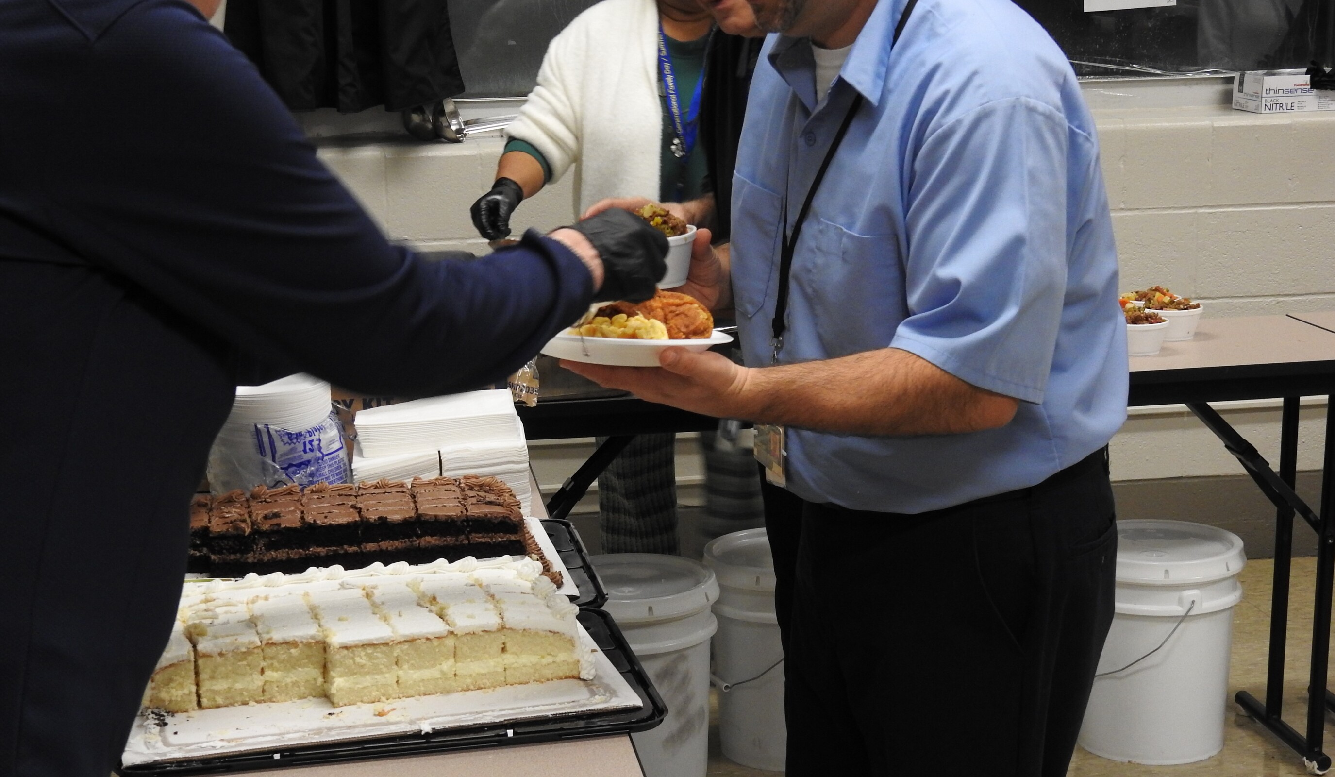 As a thank-you to the men at Grafton – specifically the “sewers and growers” -- Catholic Charities, Diocese of Cleveland, hosted a dinner at the prison recently featuring some of their requested foods: fried chicken and macaroni and cheese. The guests also enjoyed chocolate or white cake for desert. The meal was served by volunteers and administrators from Catholic Charities.