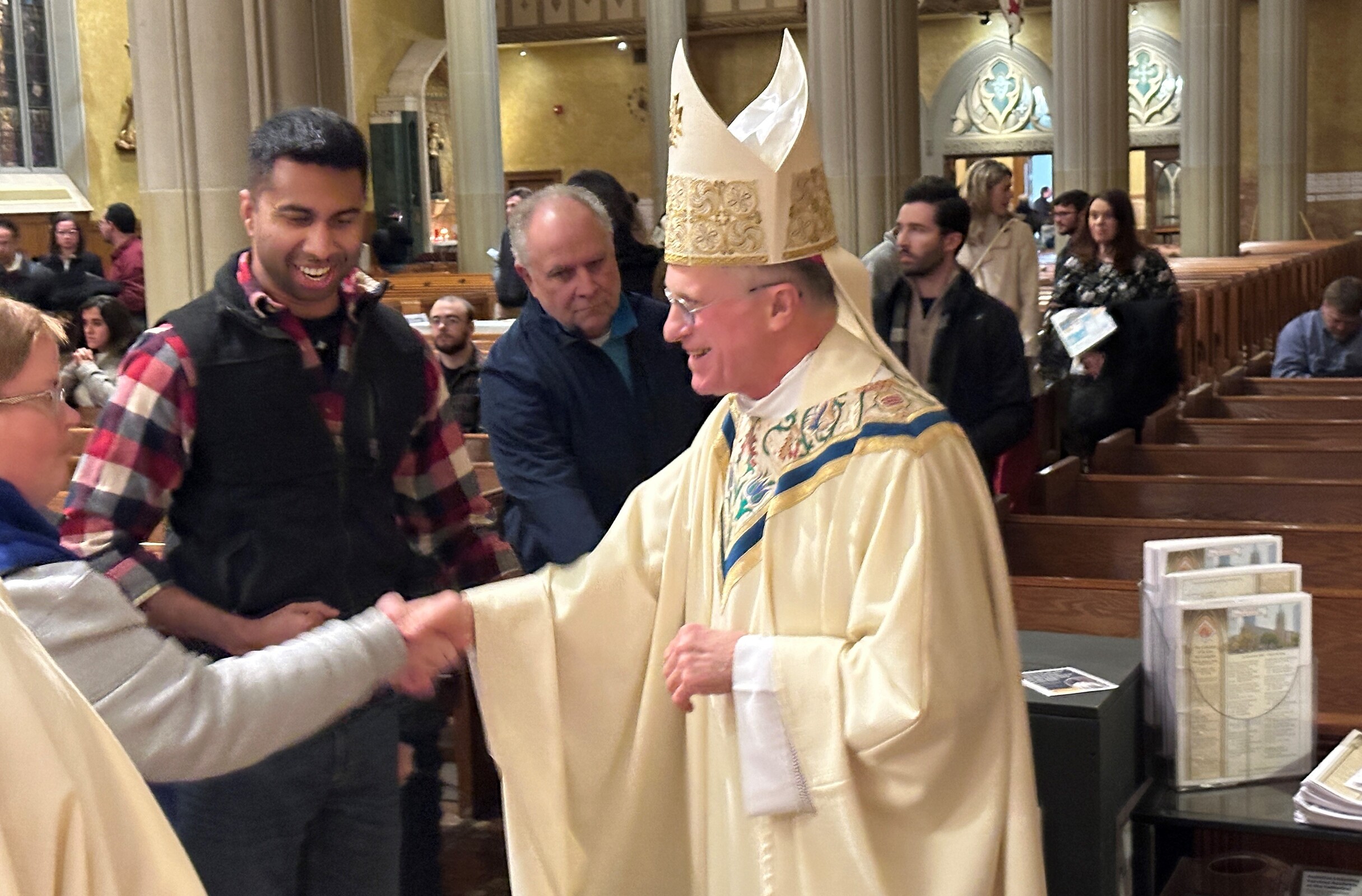 Archbishop Timothy Broglio, who shepherds the Archdiocese for the Military Services, USA and is serving as president of the United States Conference of Catholic Bishops, celebrated the vigil Mass on Nov. 25 in the Cathedral of St. John the Evangelist. He also attended a post-Mass reception in the cathedral rectory.