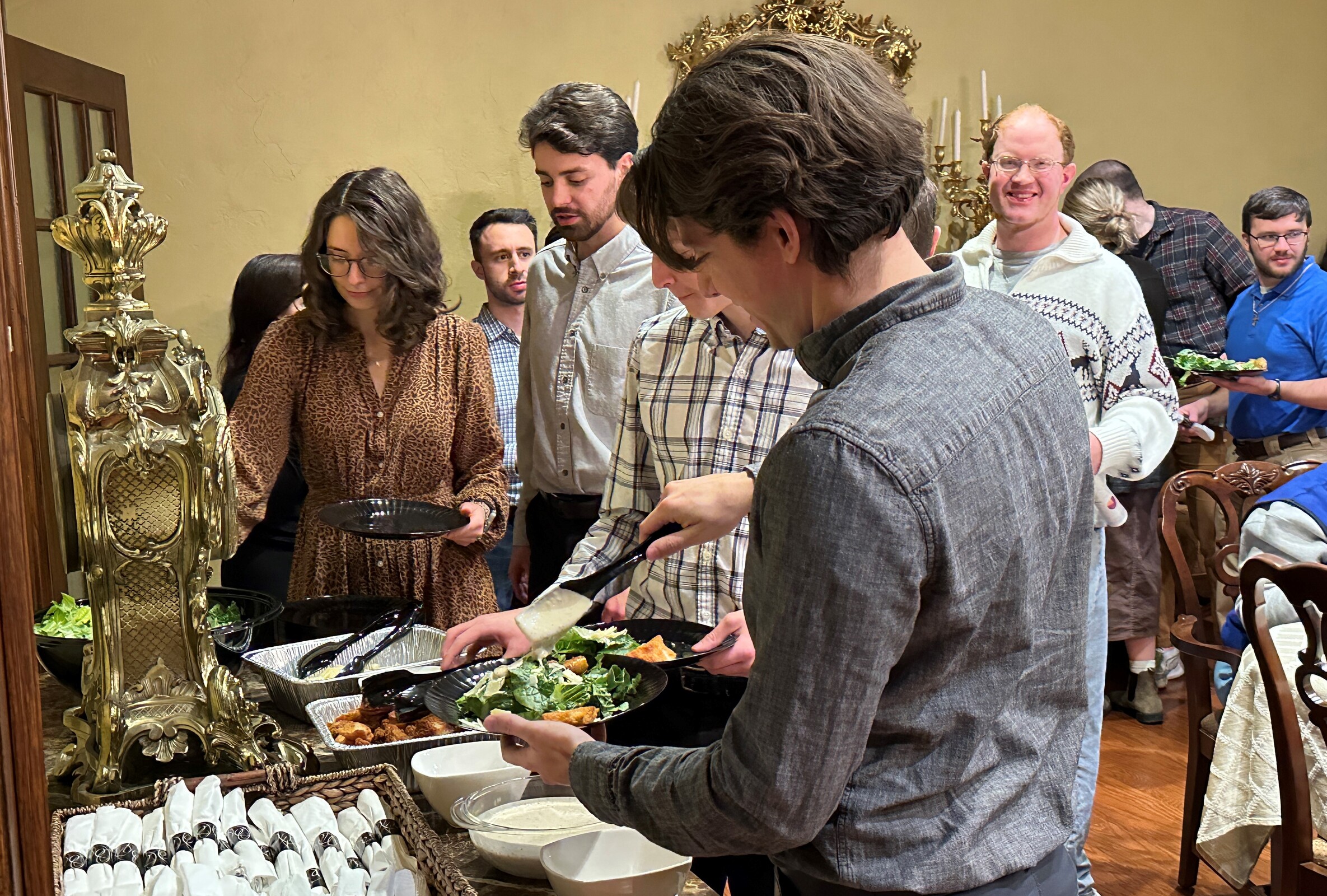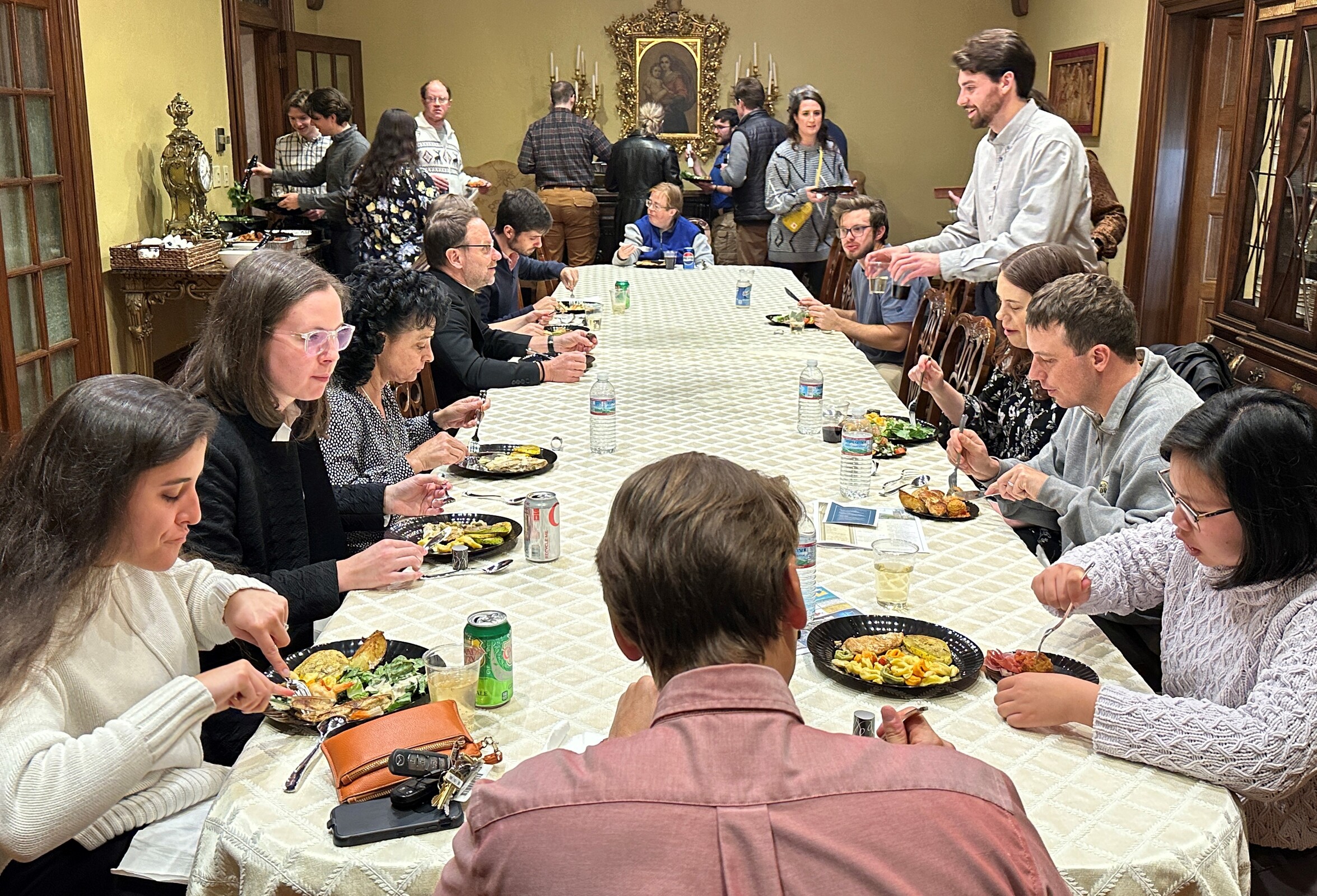The archbishop spent some time after Mass greeting the faithful before stopping at the reception to mingle with the young adults.