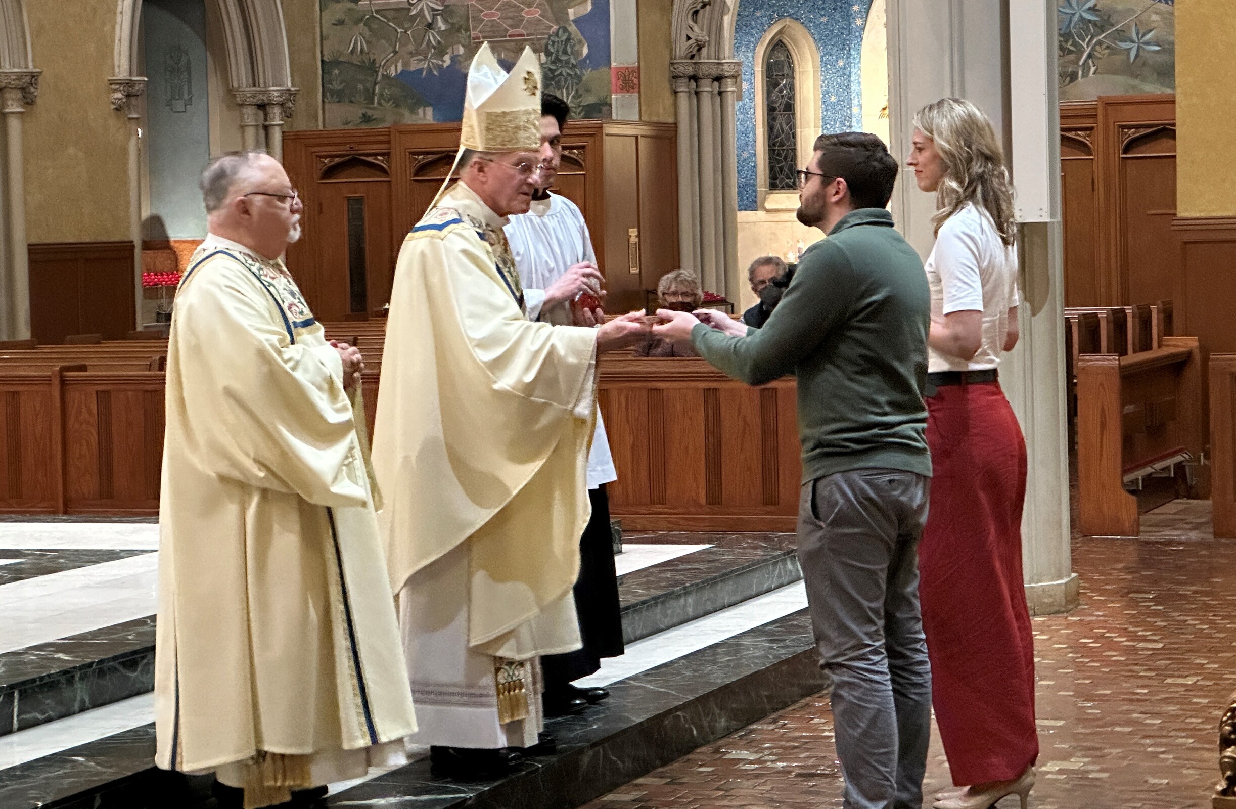 Father Damian Ference, vicar for evangelization and head of Parish Life and Special Ministries, concelebrated the Mass. Deacon John Sferry from the cathedral and Deacon Rob Blackburn from St Basil the Great Parish in Brecksville – who also is a young adult – assisted with the liturgy.