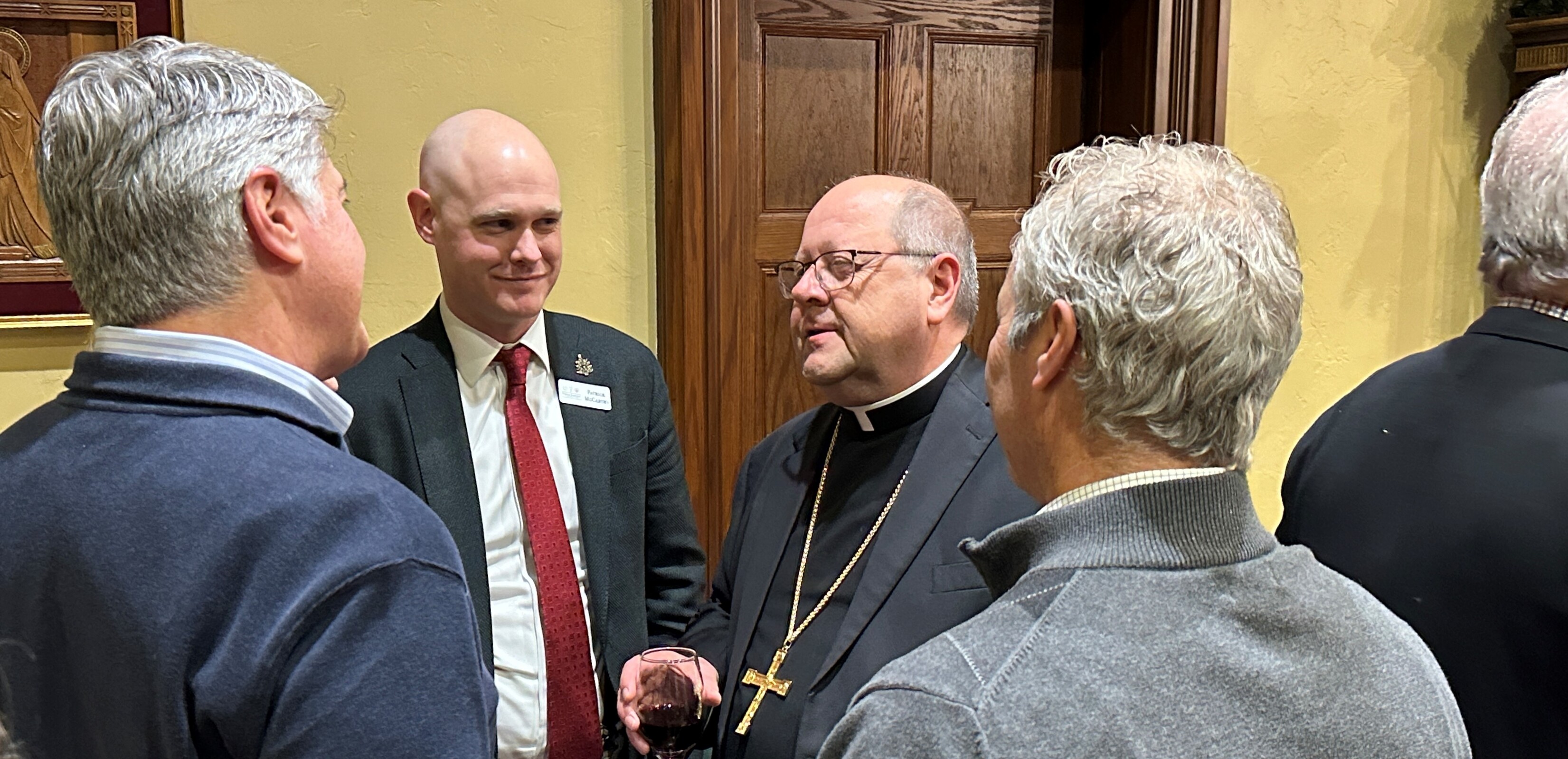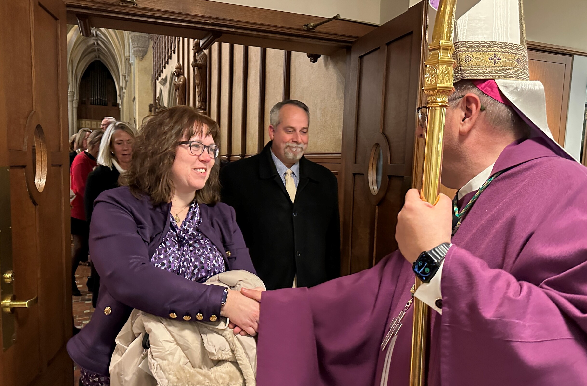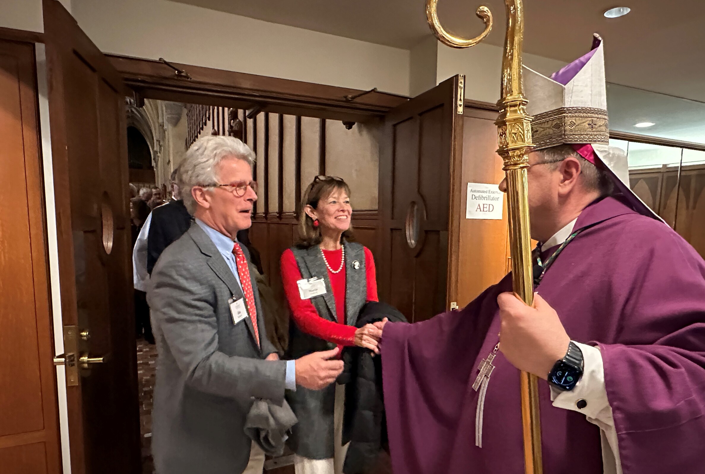After Mass, the bishop greeted guests as they exited the cathedral and moved into the cathedral rectory parlor.