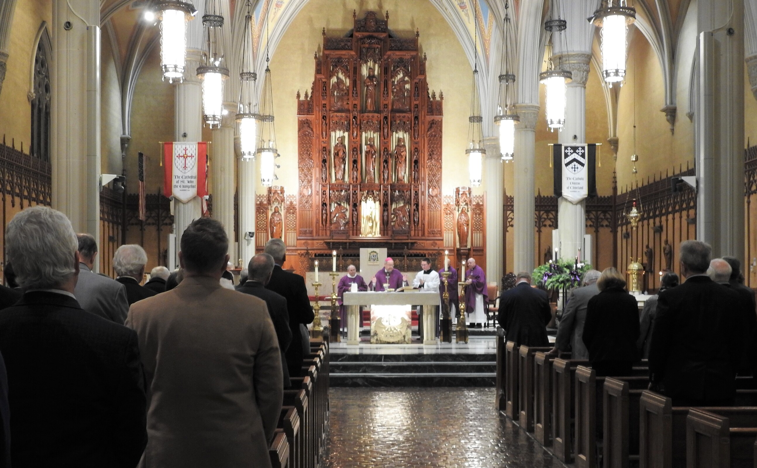Members of the St. John the Evangelist Leadership Guild gathered Dec. 11 in the Cathedral of St. John the Evangelist for a private Mass celebrated by Bishop Edward Malesic. The celebration – their fourth and final one for the year – was a thank-you for the financial support guild members have made during 2023.