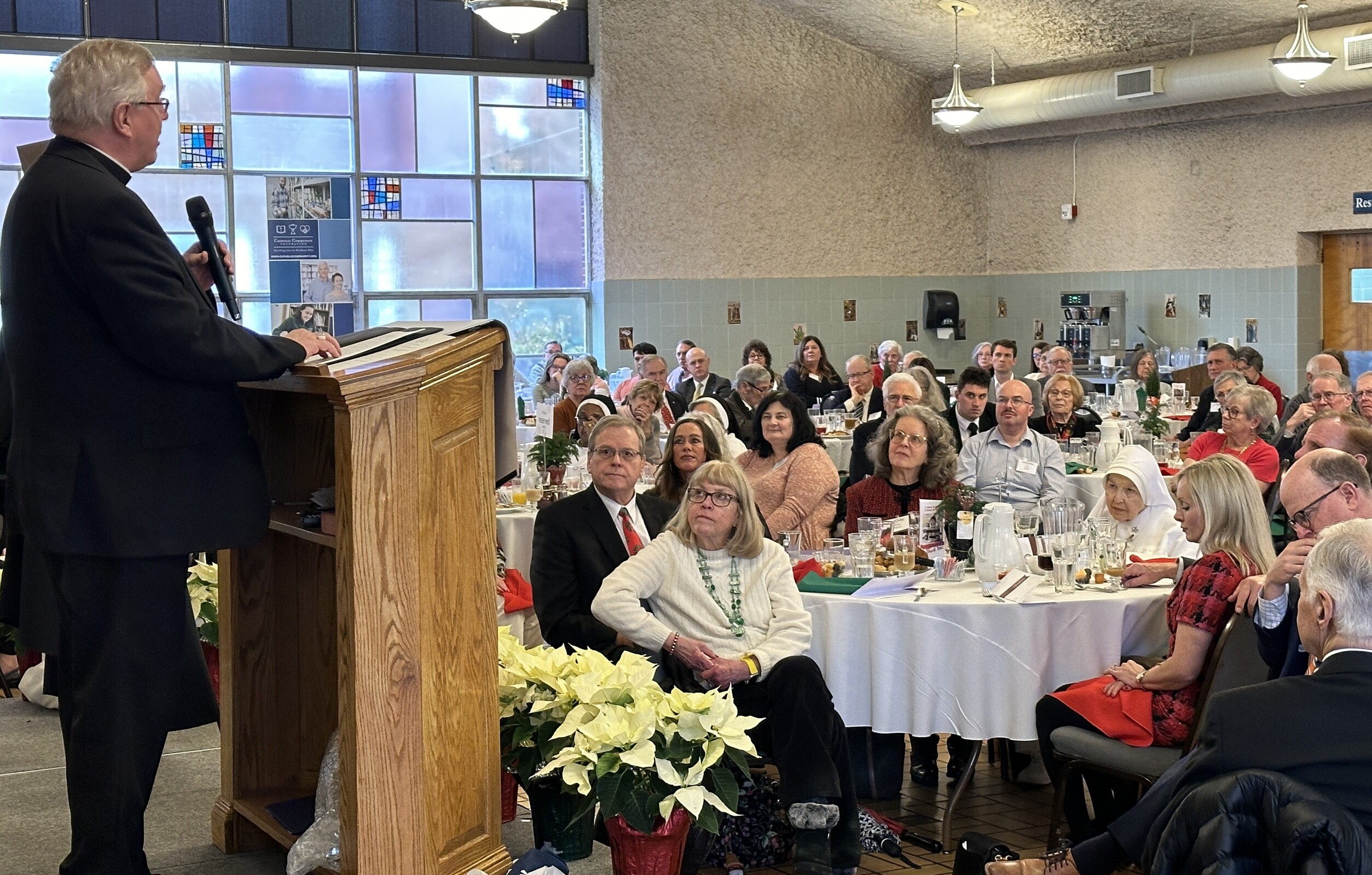 The Archbishop Hoban Award is presented annually at the Deo Gratias event to recognize those who give help and touch the lives of many. Bishop Woost mentioned Catholic Charities, Diocese of Cleveland as another example. Catholic Charities is winding down its 2023 appeal and preparing to begin the 2024 appeal. The nonprofit is one of the largest social service agencies in the region. It assists more than 400,000 people each year through dozens of programs that help the unhoused, the hungry, those with substance/addiction issues, mental health issues and more.