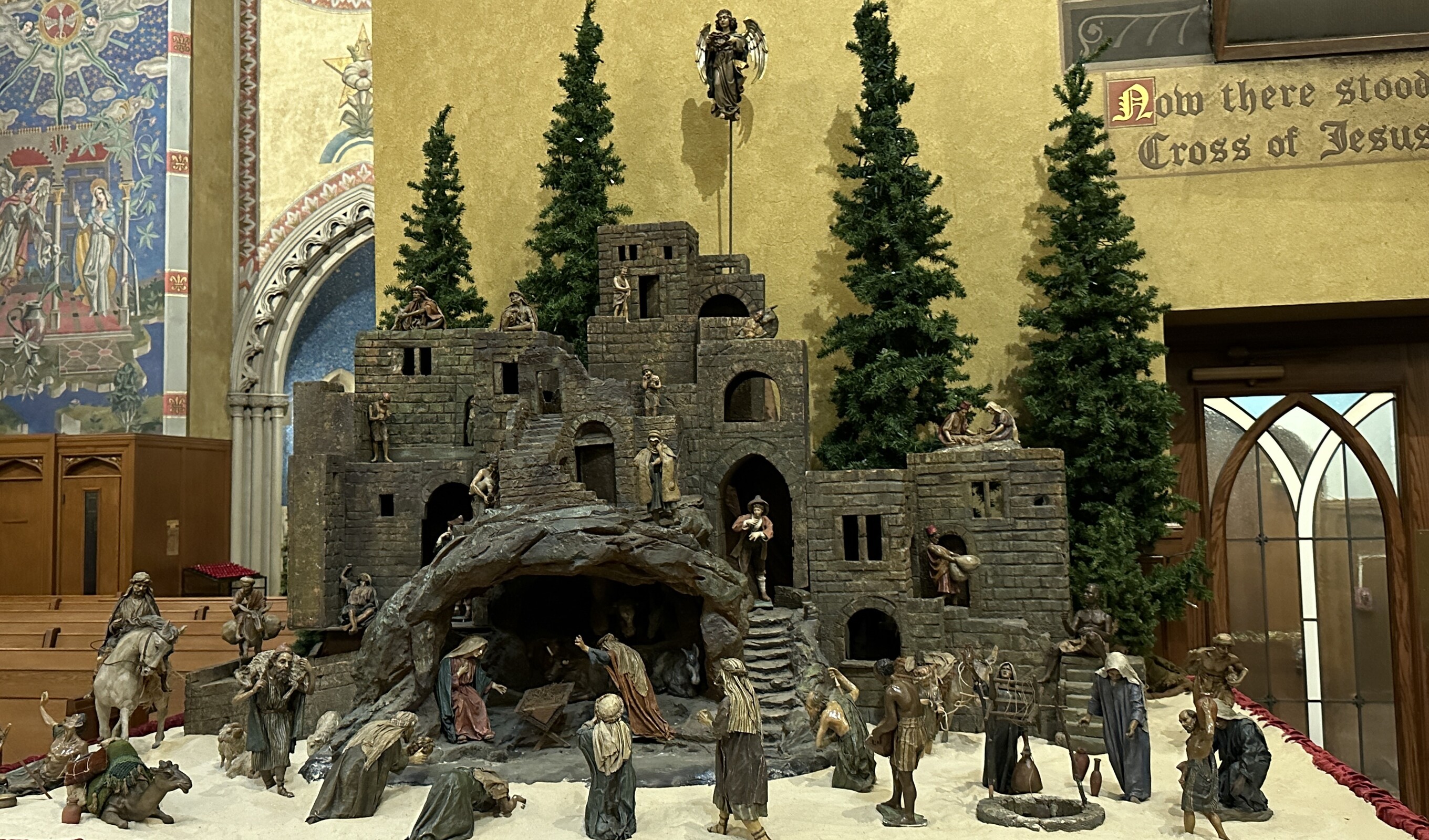 But one thing is missing from both creches: Baby Jesus. He will be placed in the manger on Christmas Eve in time for the 4:30 p.m. vigil Mass.