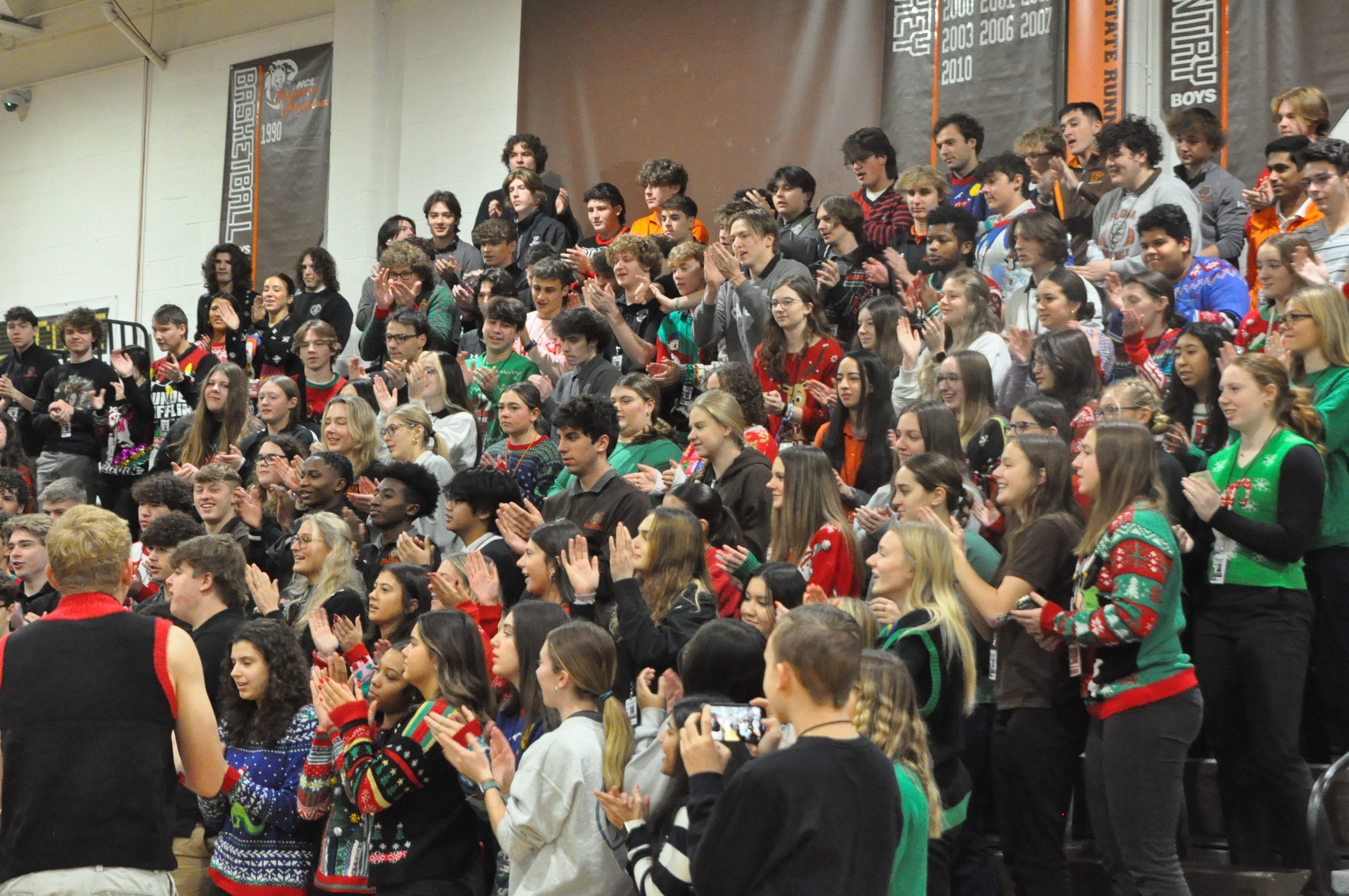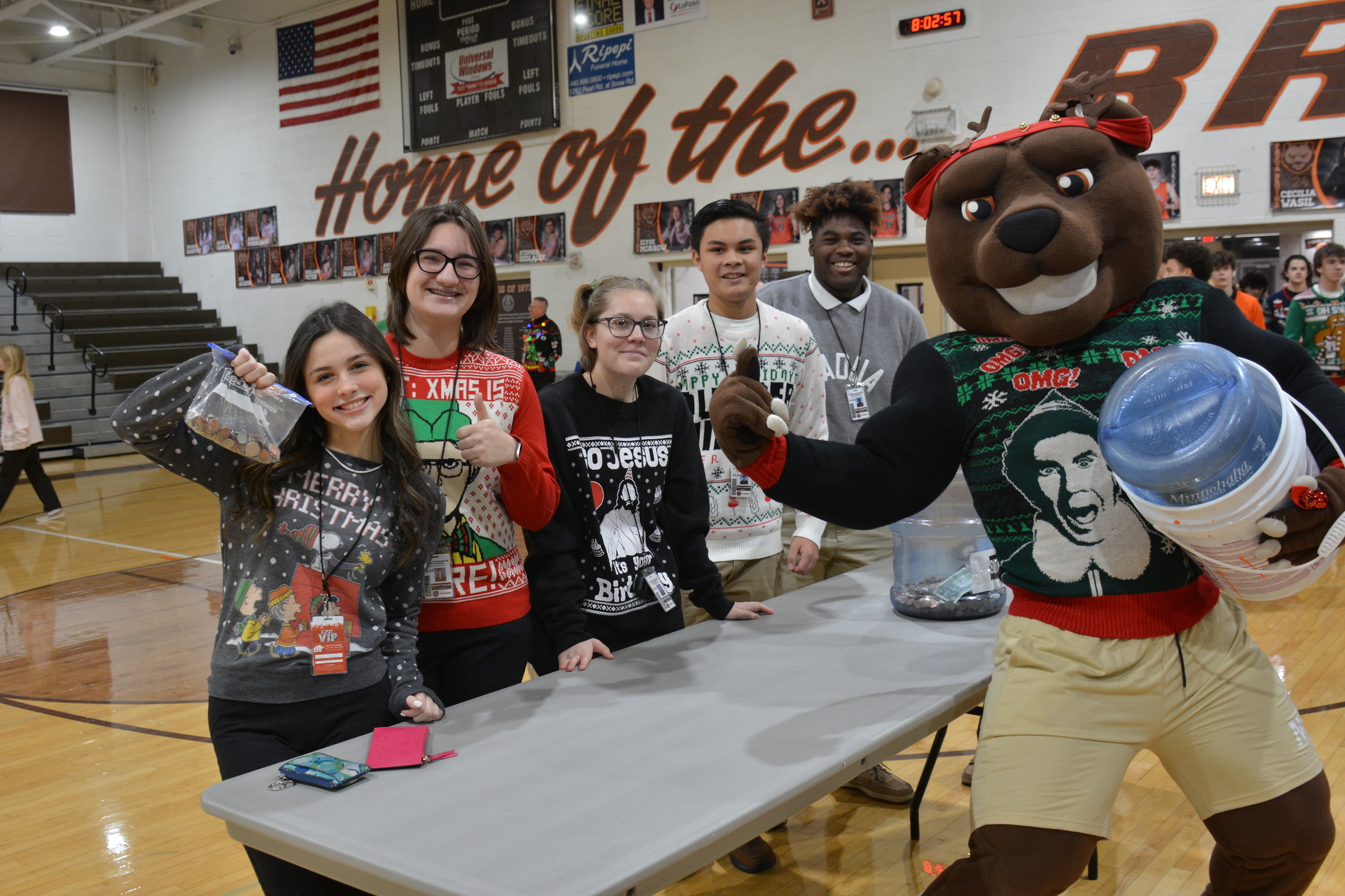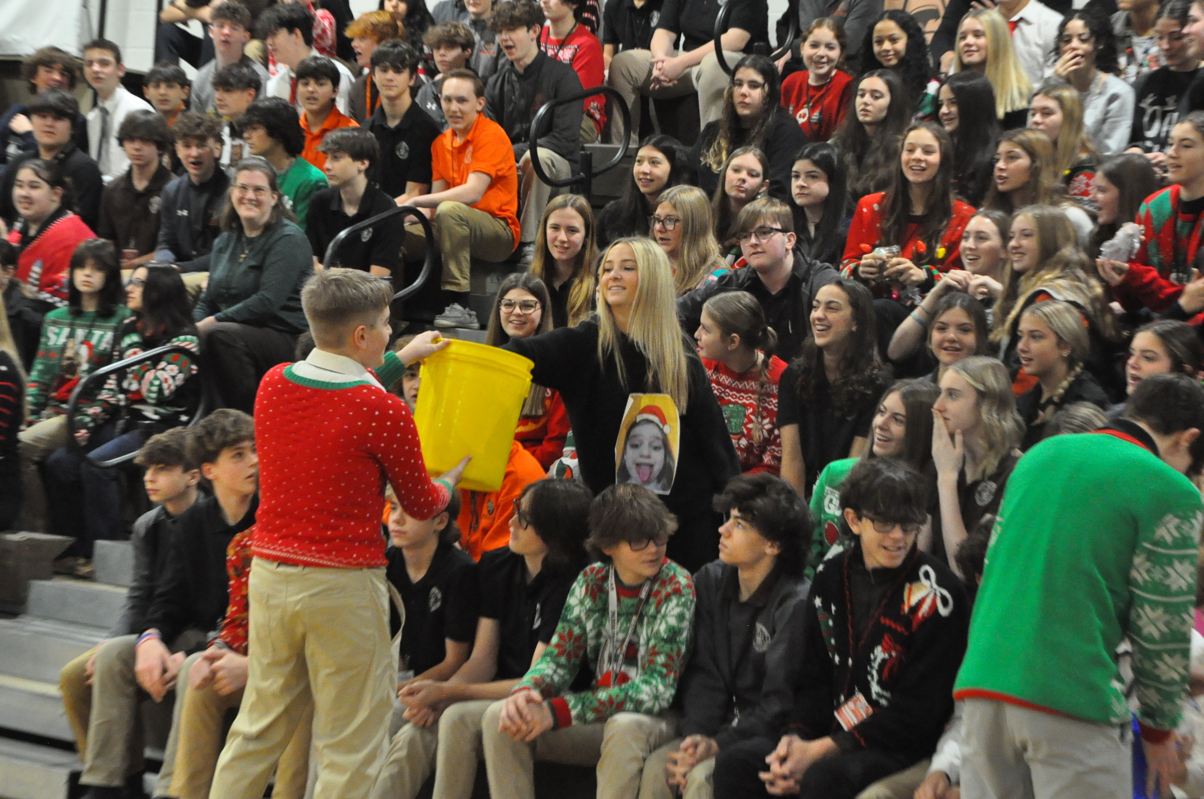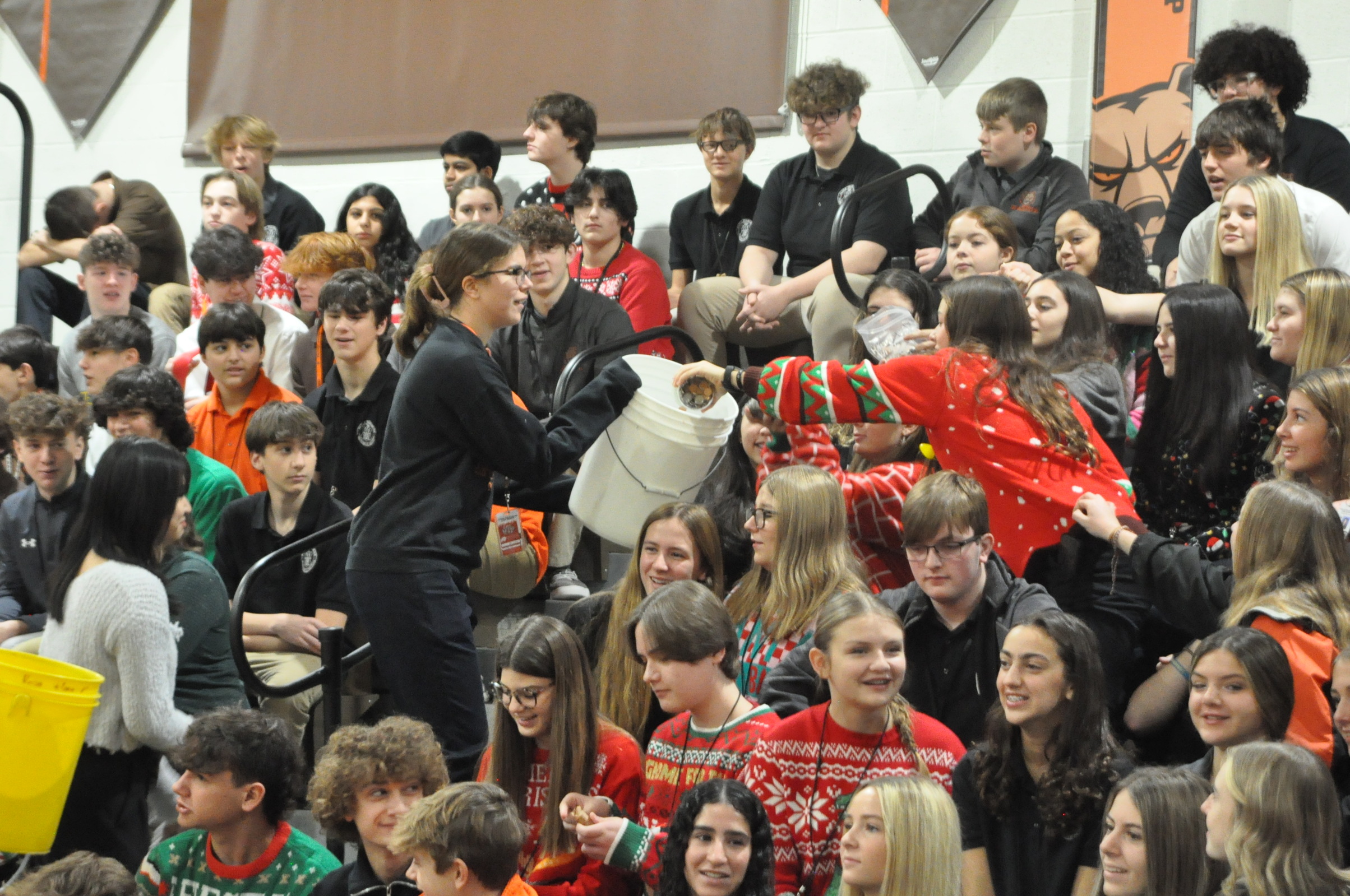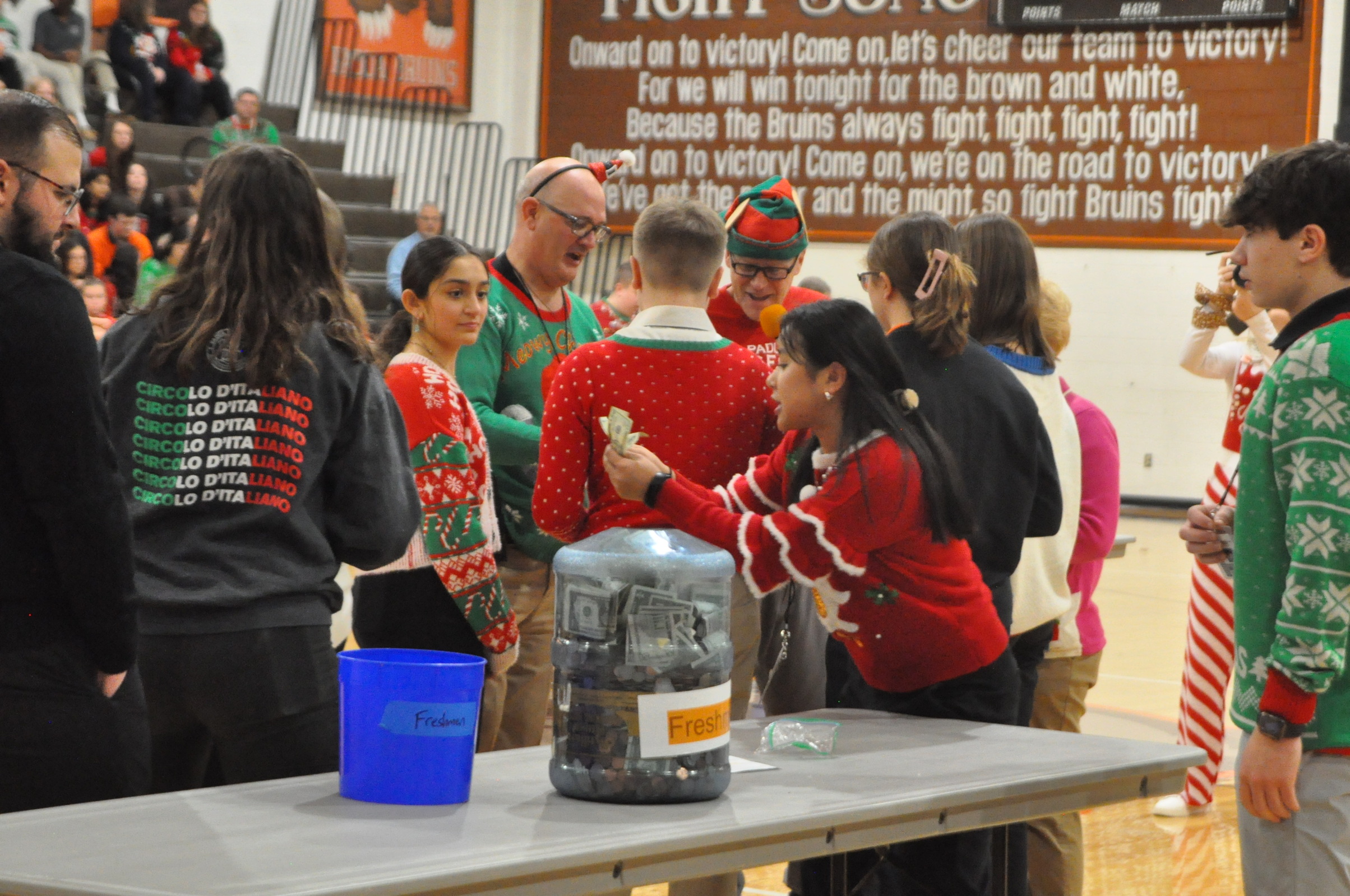 Money was raised in several ways for the drive, including the popular Coin Wars competition. During a 20-minute period, nearly $9,600 was generated for local charities and families in need. Students also collected canned goods for local food pantries. The school’s Italian Club hosted a spaghetti dinner and the Spanish Club sold nachos to aid the drive. The Art Club sold homemade jewelry. There also was a student vs. faculty volleyball game with a $1 admission fee that was donated to the cause. In addition, students organized a blood drive for faculty and students.