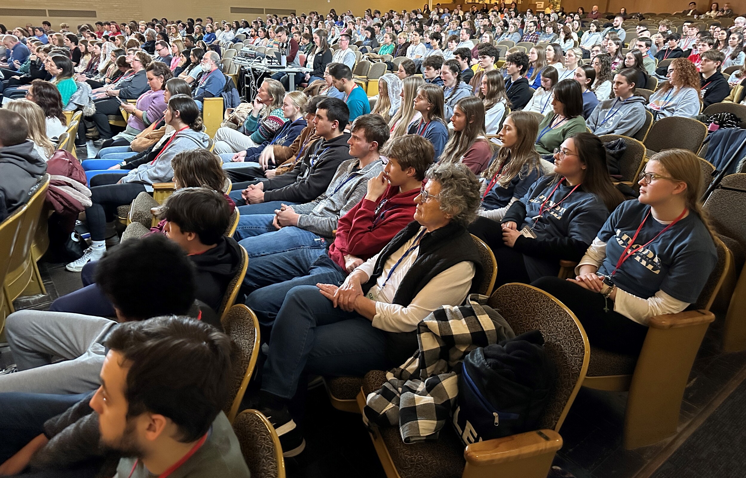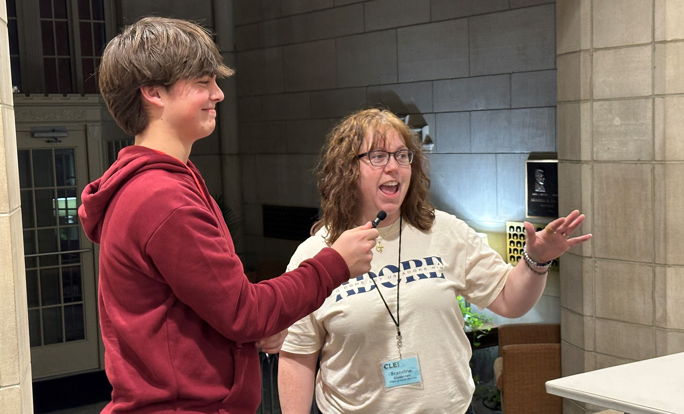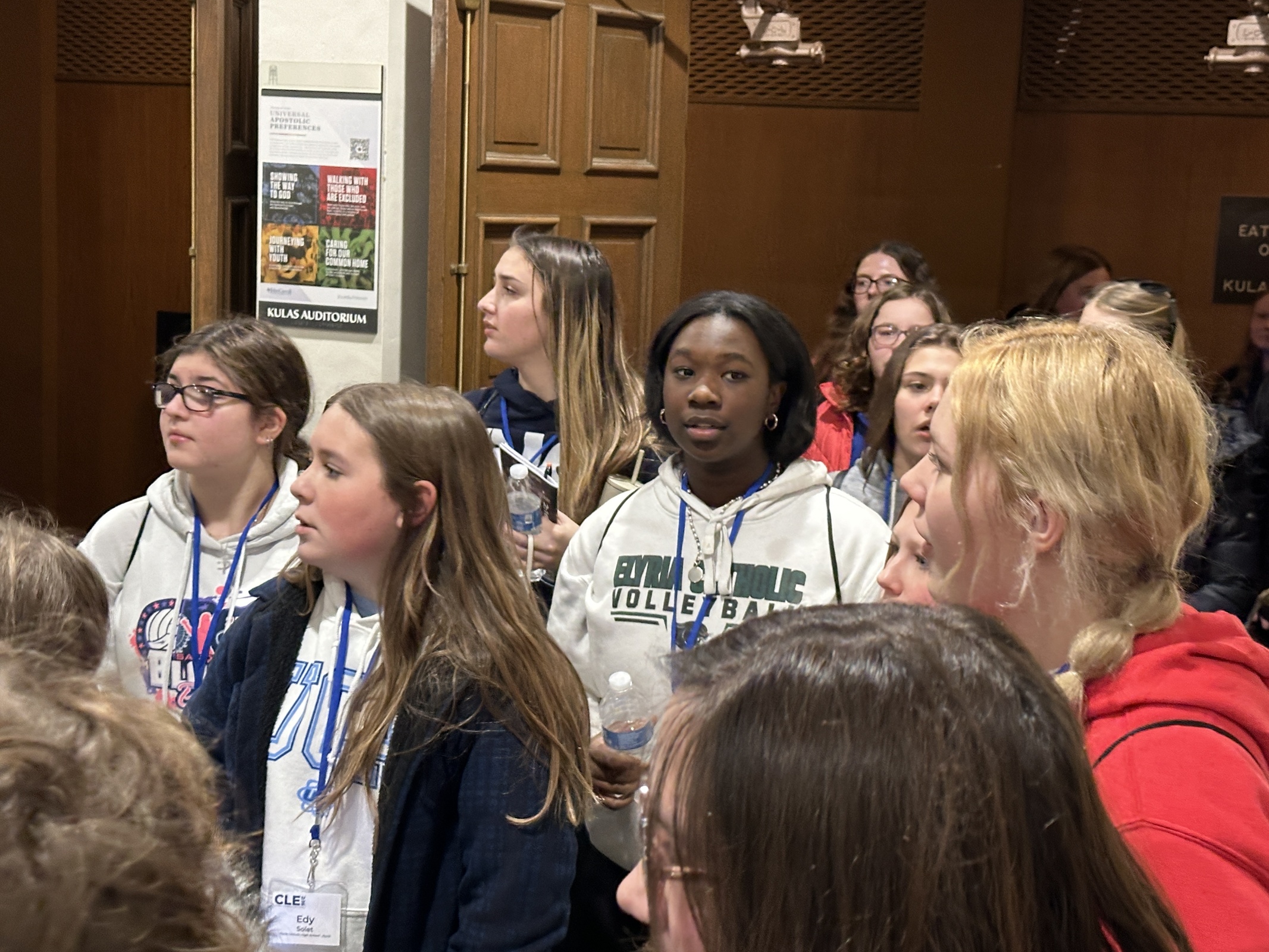 About 500 high school students from 38 parishes and high schools across the Diocese of Cleveland poured into Saint Ignatius Hall (the administration building) on the campus of John Carroll University the morning of Jan. 6 in anticipation of CLE 2:16, the annual daylong diocesan youth conference presented by the Office of Youth Ministry. A few teens from the Diocese of Youngstown also attended.