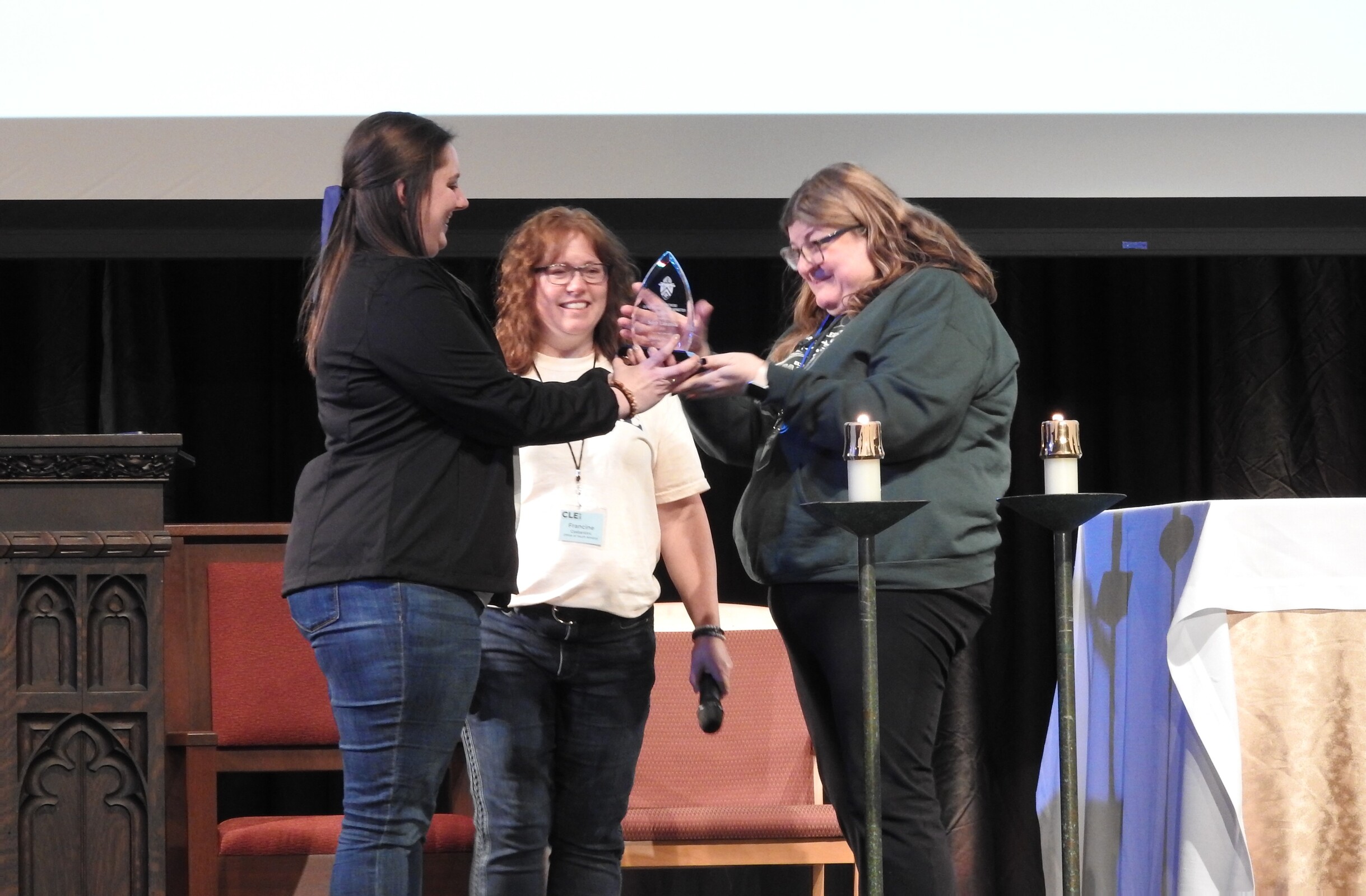 The inaugural Jan Tyranowski Outstanding Youth Minister Award was given to Sara Lanzola, director of campus ministry at Elyria Catholic High School in Elyria. More than three dozen EC students attended the conference with her.