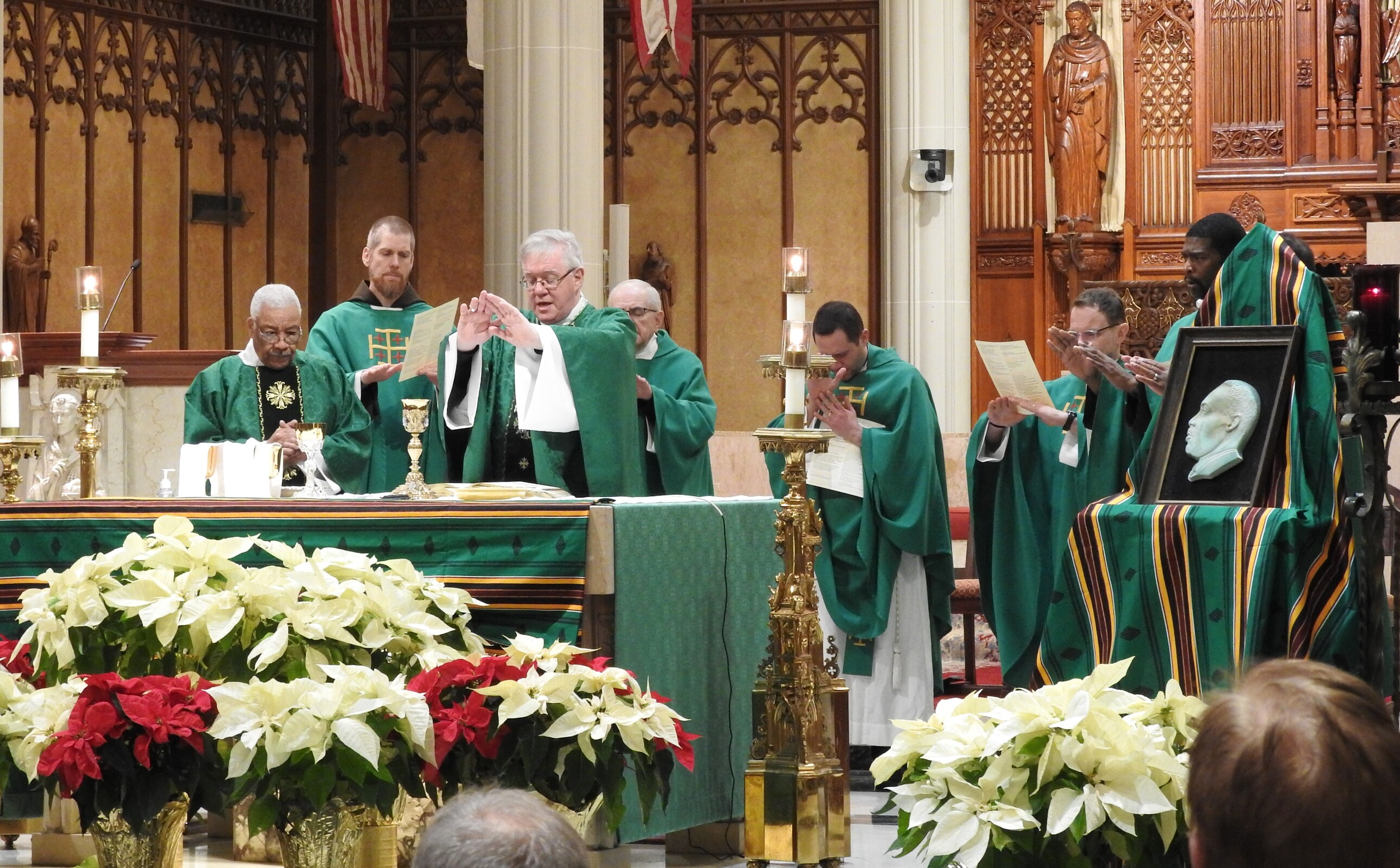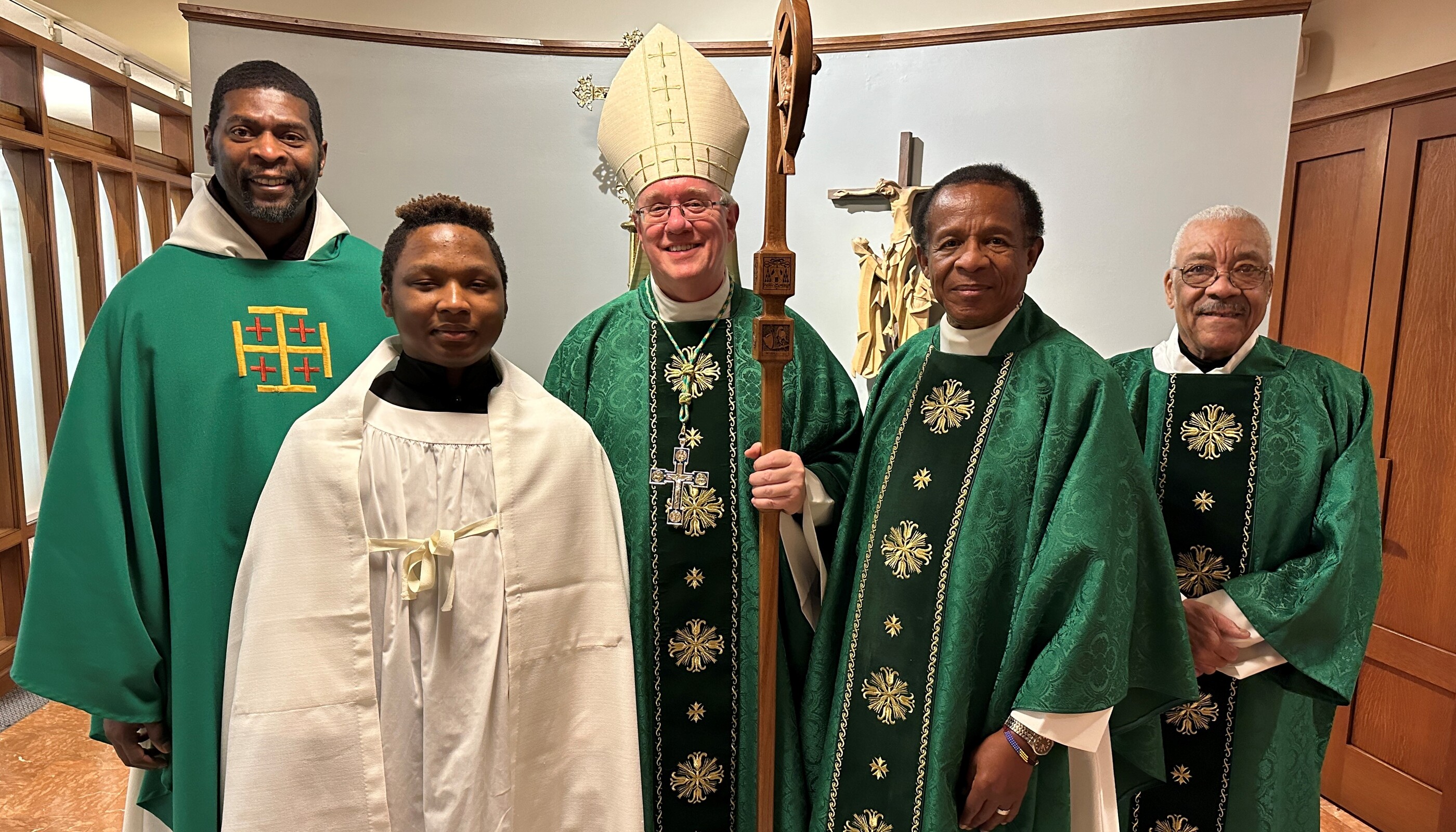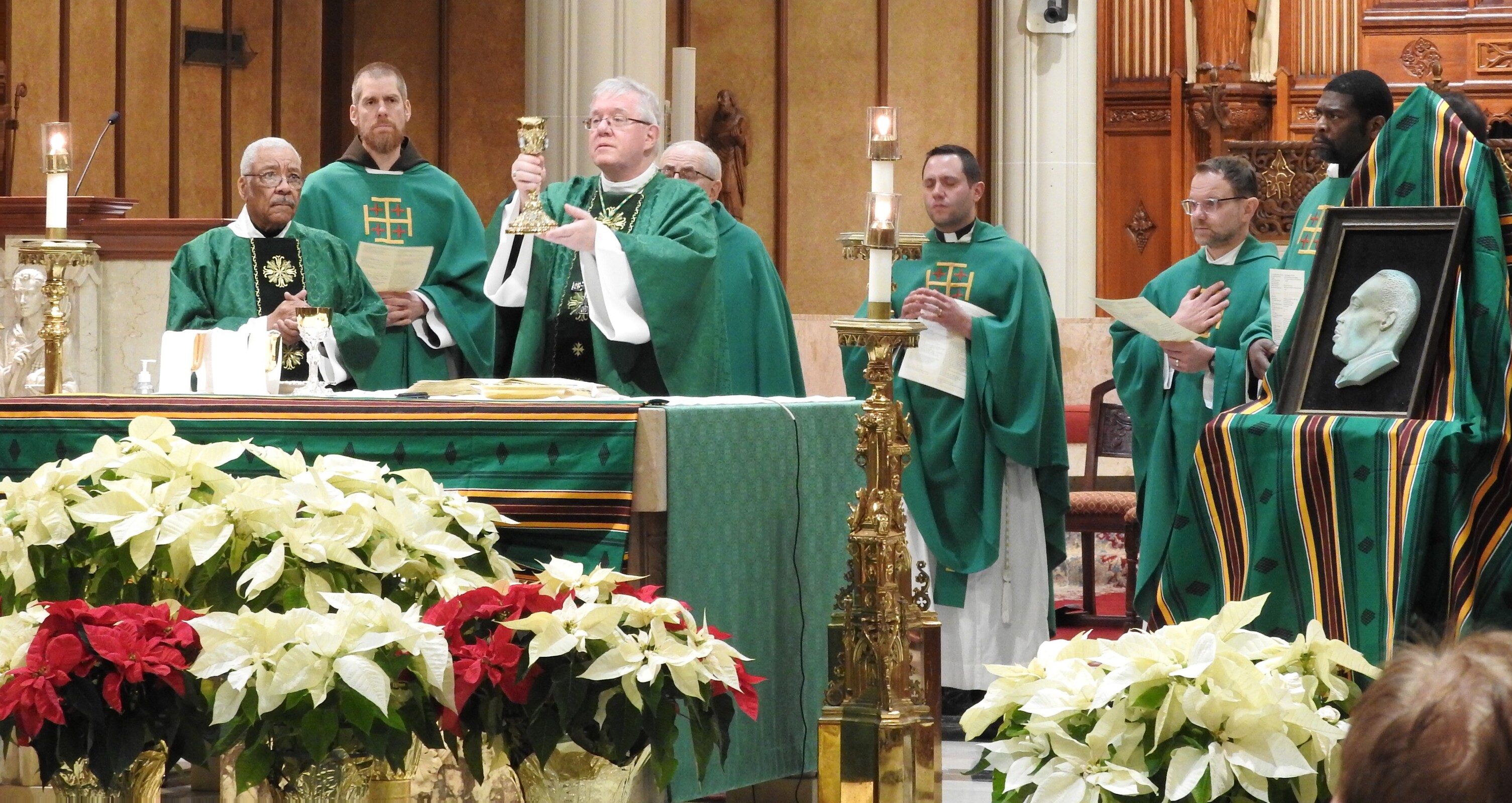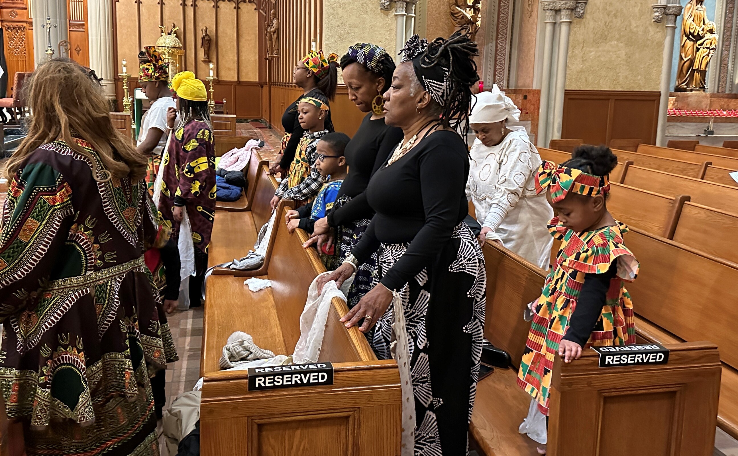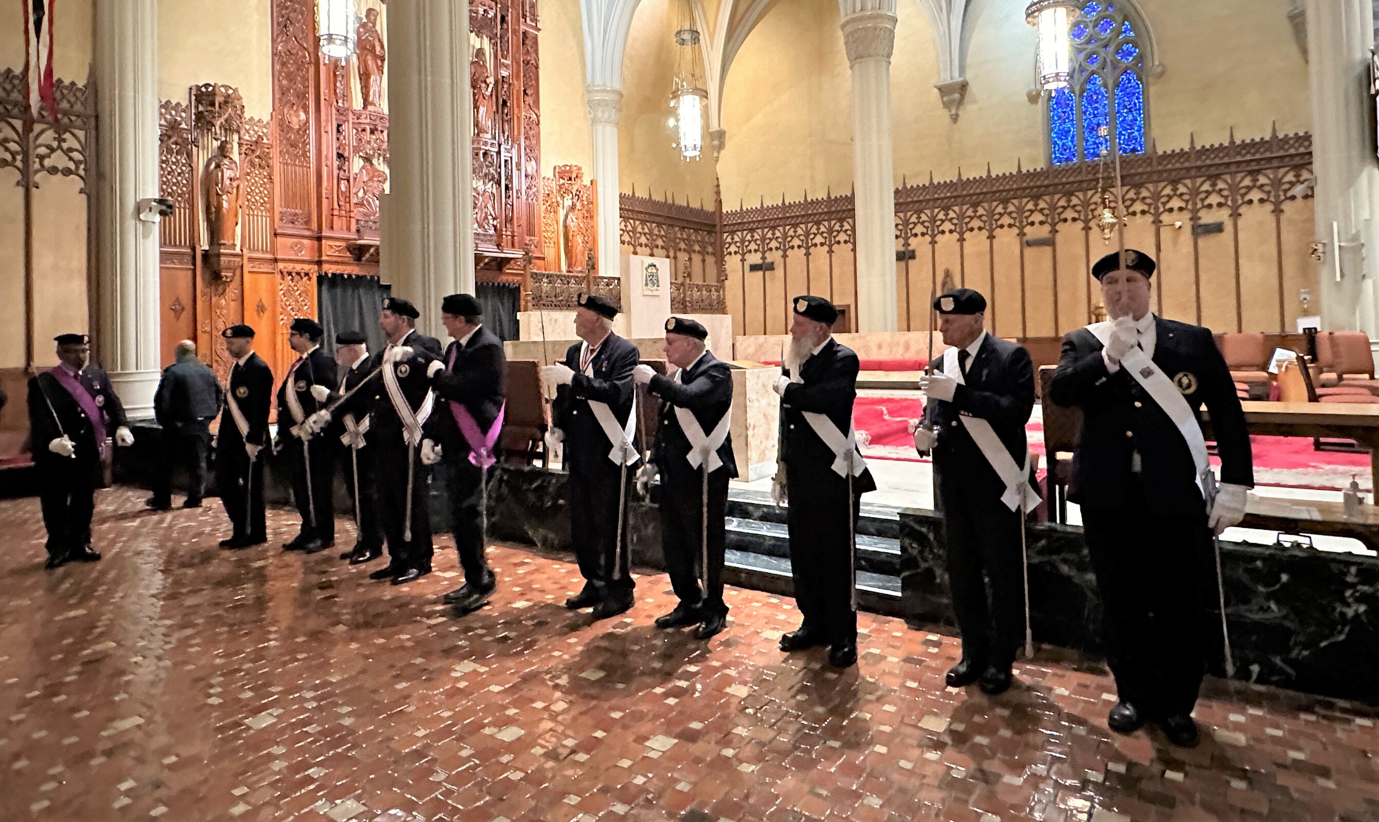 Adding to the solemnity of the liturgy were members of the Knights of Peter Claver and the Ladies Auxiliary and the Knights of Columbus. The 114-year-old Knights of Peter Claver is the nation’s only African American Catholic fraternal organization and the world’s largest historically Black Catholic lay organization. They were in formal dress including white shirts, ties, capes and hats while the women wore white dresses or suits and a sash. The Knights of Columbus wore their traditional blazers, white shirts, ties, sashes and berets.