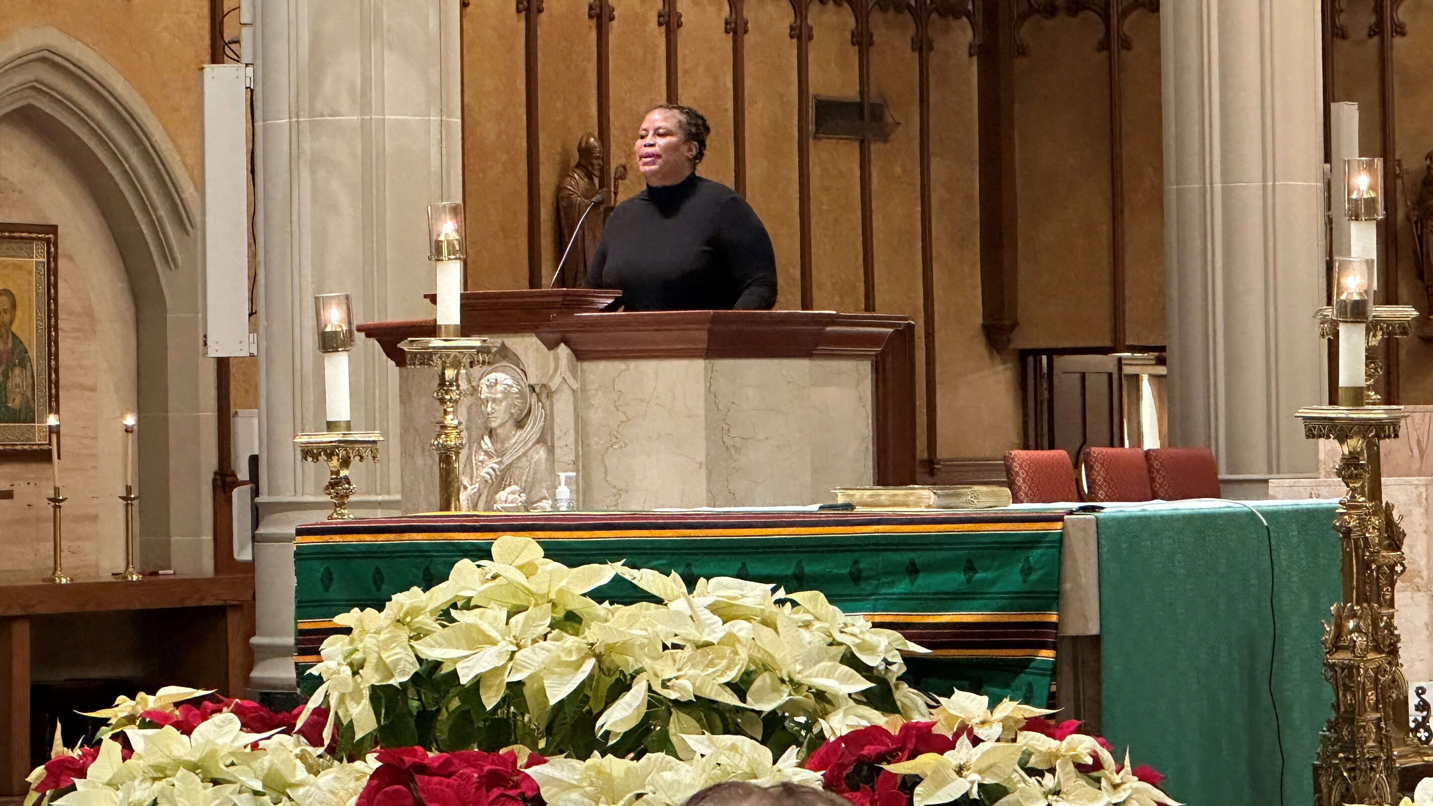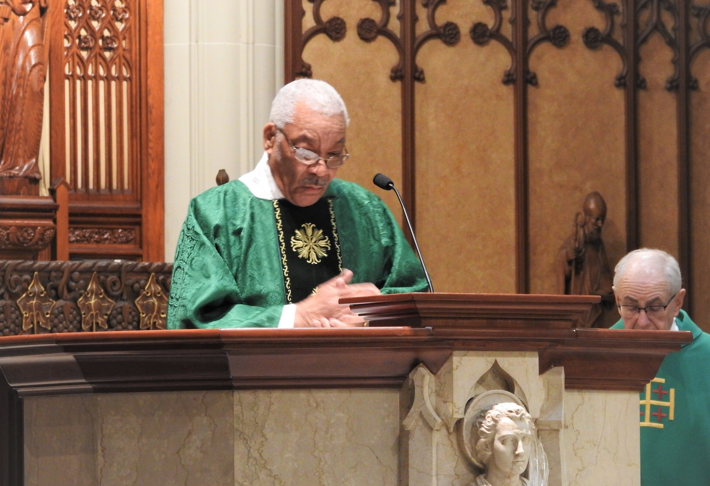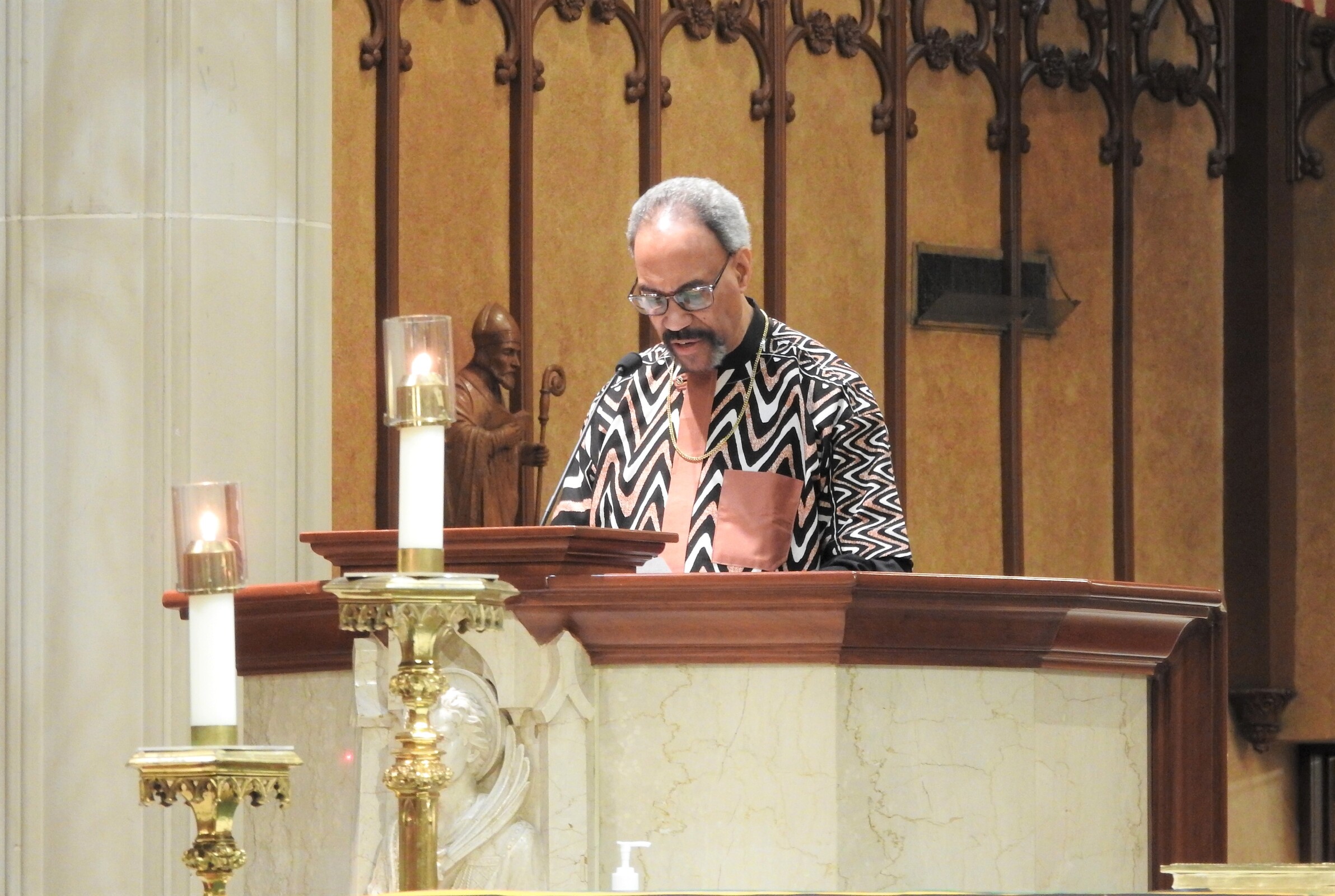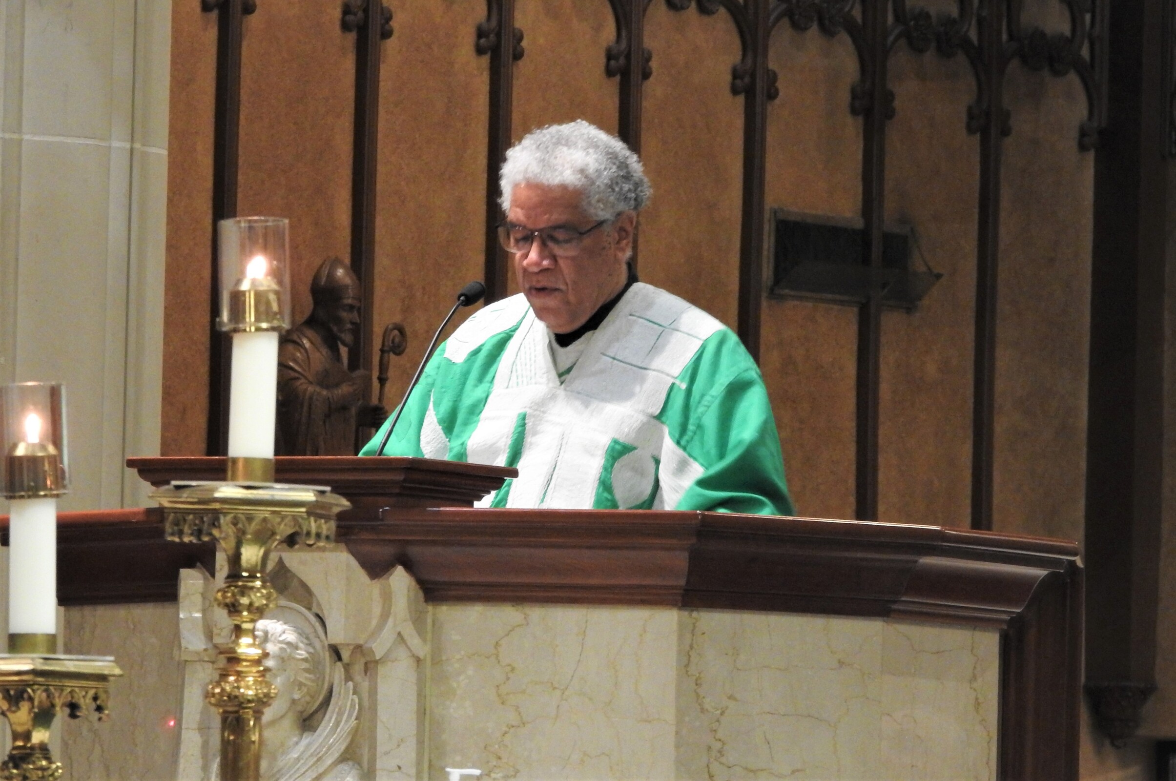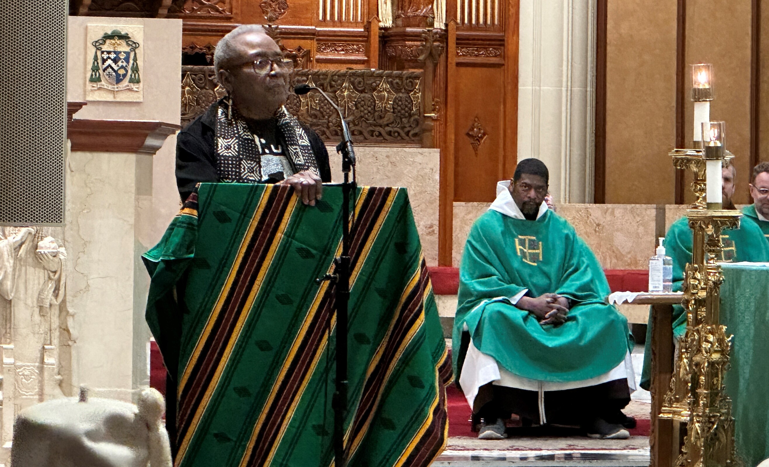 “What a mighty God we serve,” Father Judie said as he began his homily, leading the congregation – led by the Gospel Choir – in the hymn of the same name. They responded with applause and affirmation.