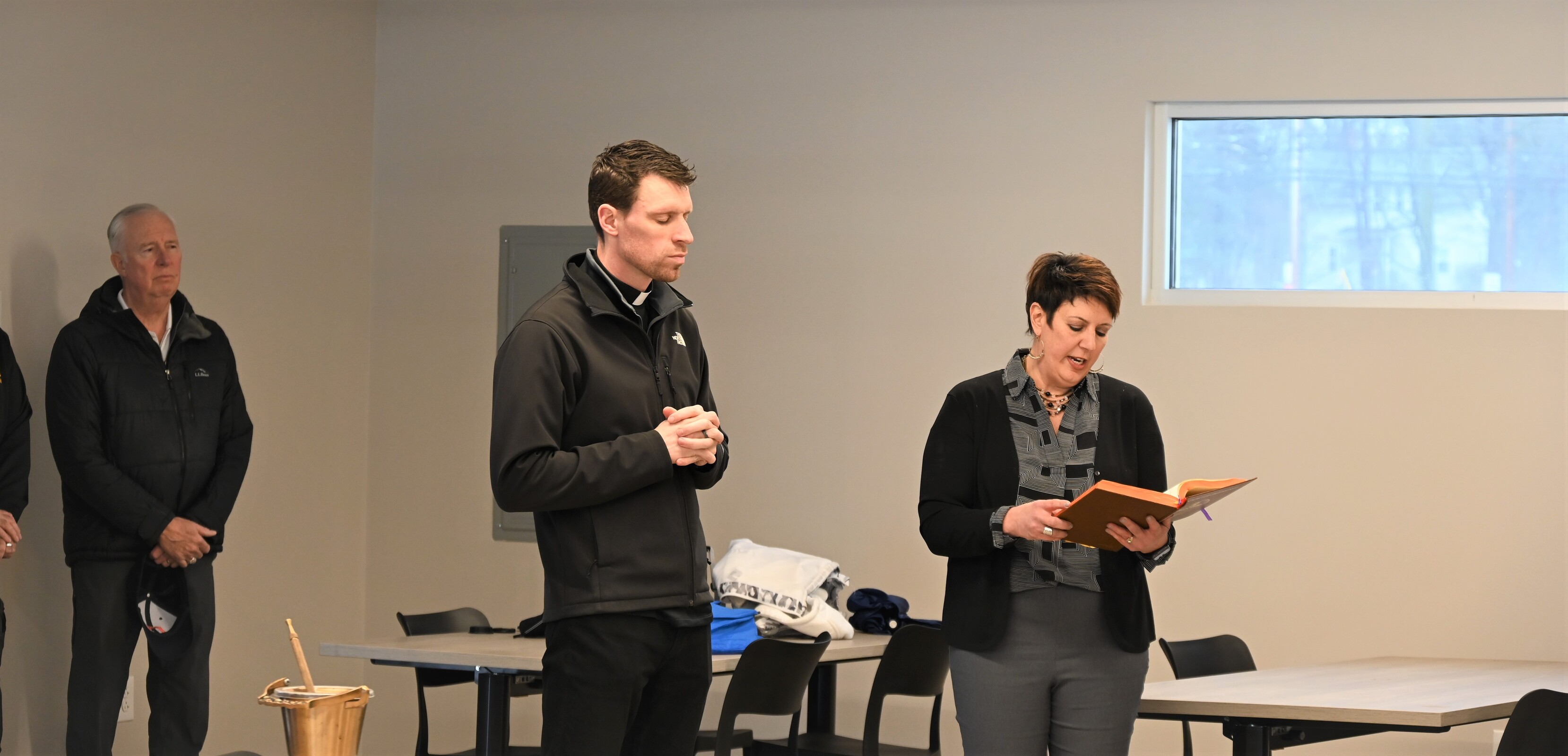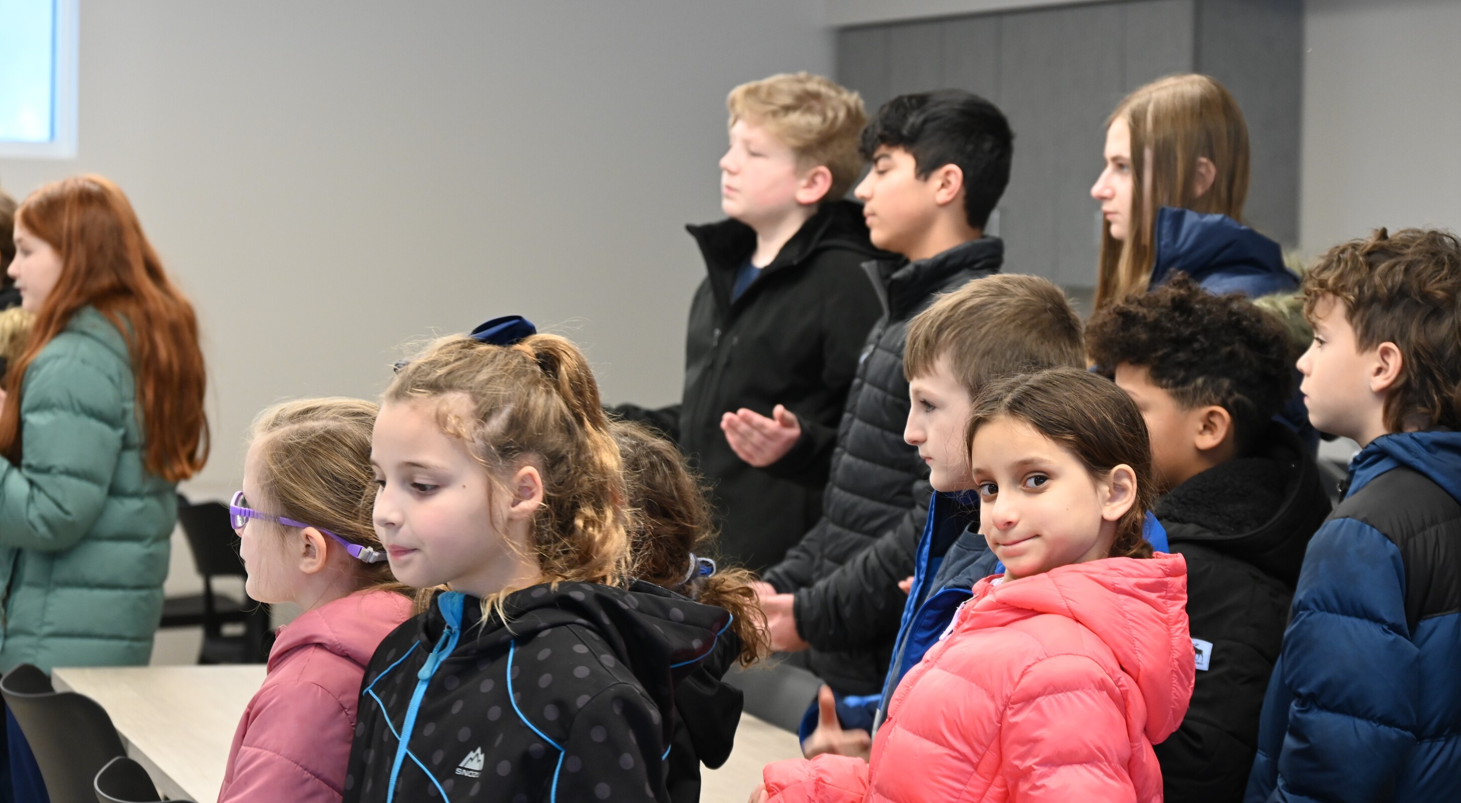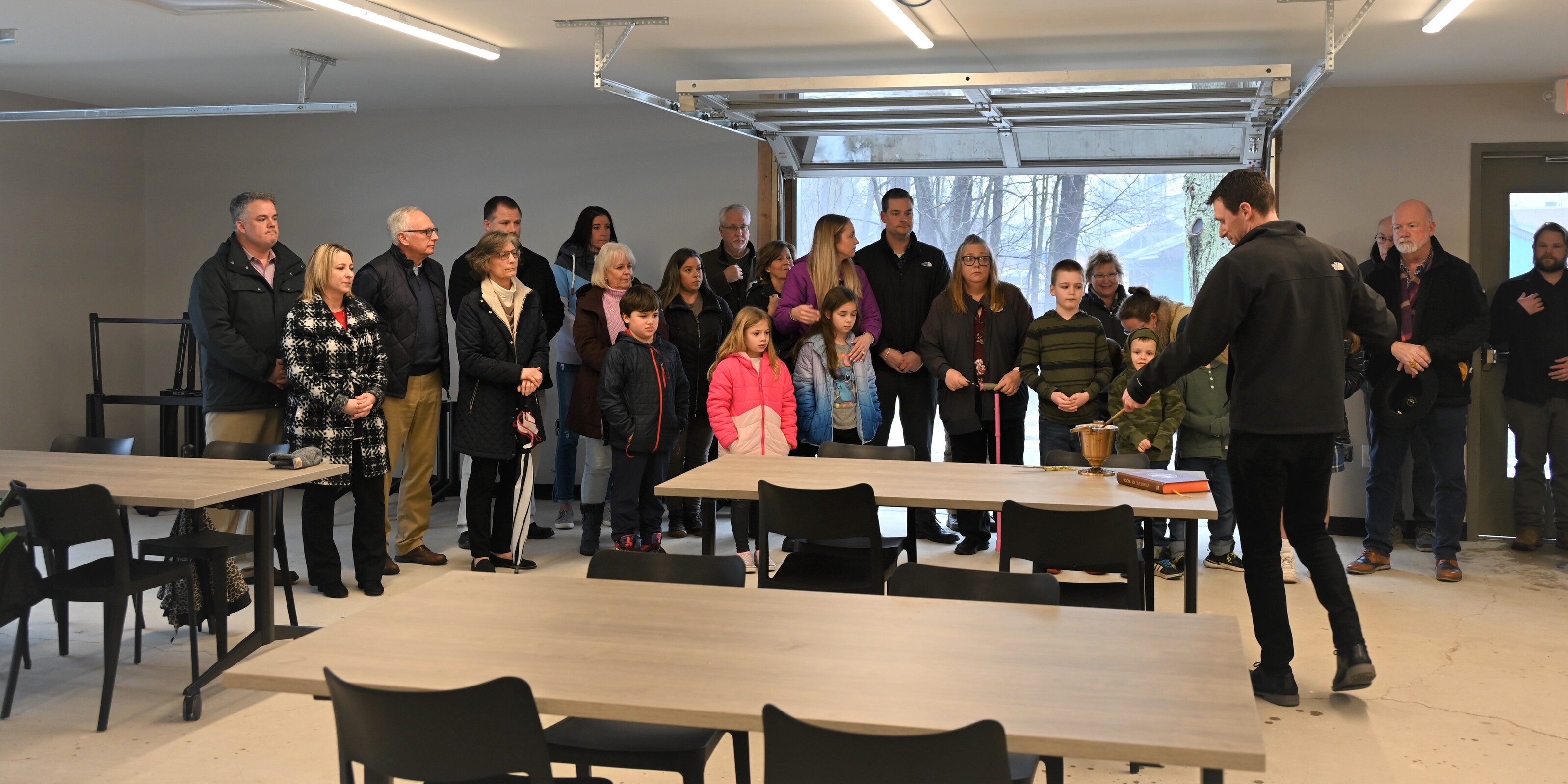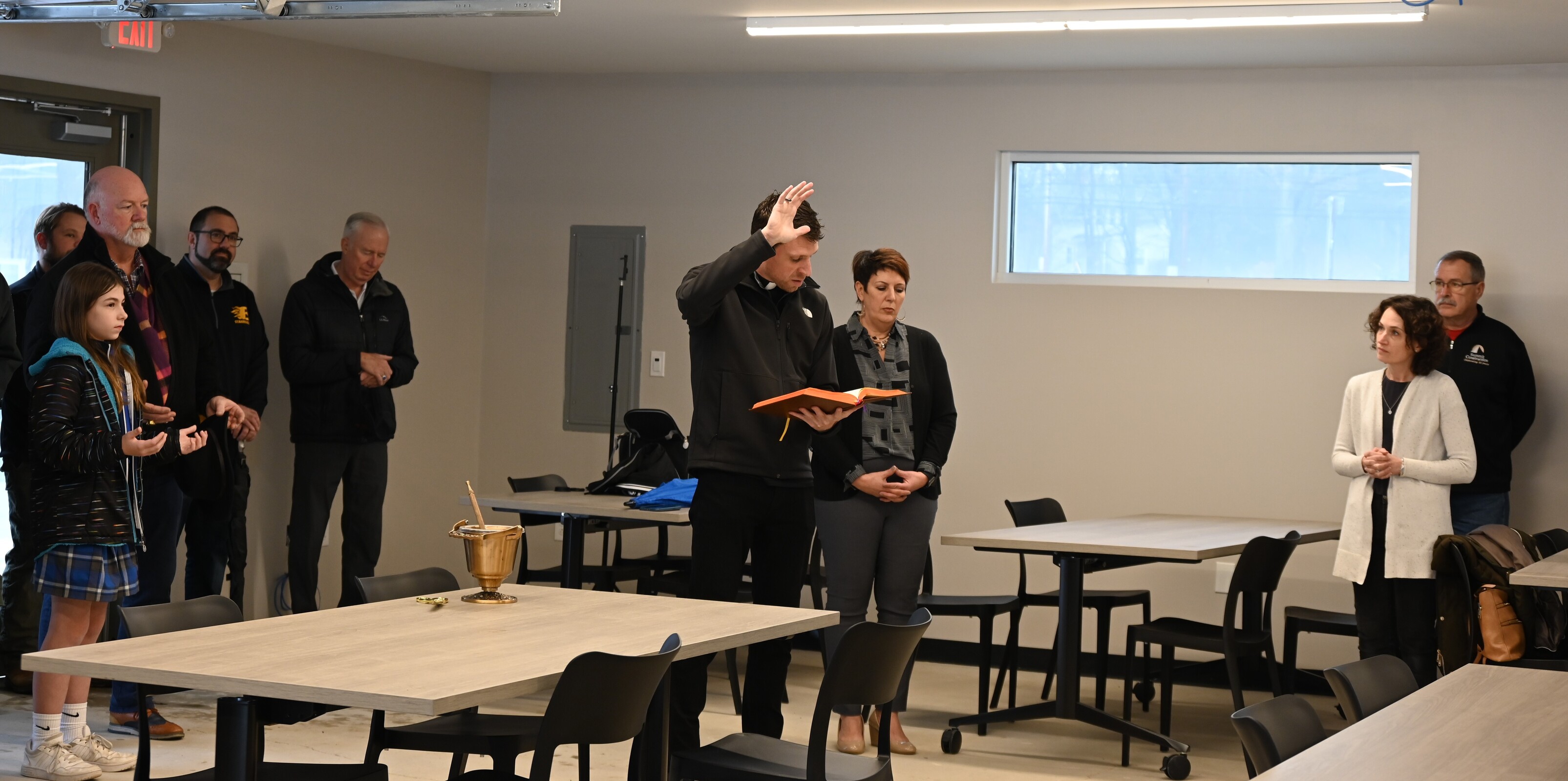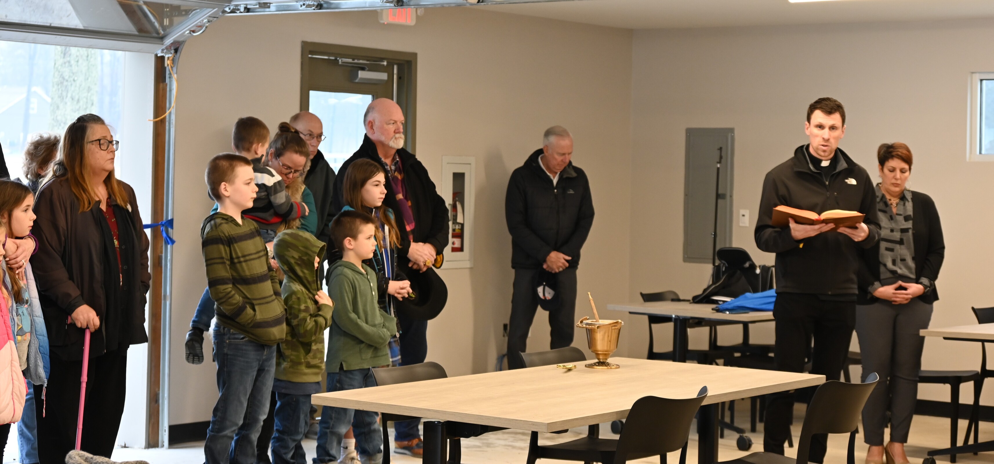 Members of the St. Barnabas Parish and School community in Northfield gathered Jan. 24 for the building dedication, blessing and ribbon cutting of the newest facility, the Learning Lodge.