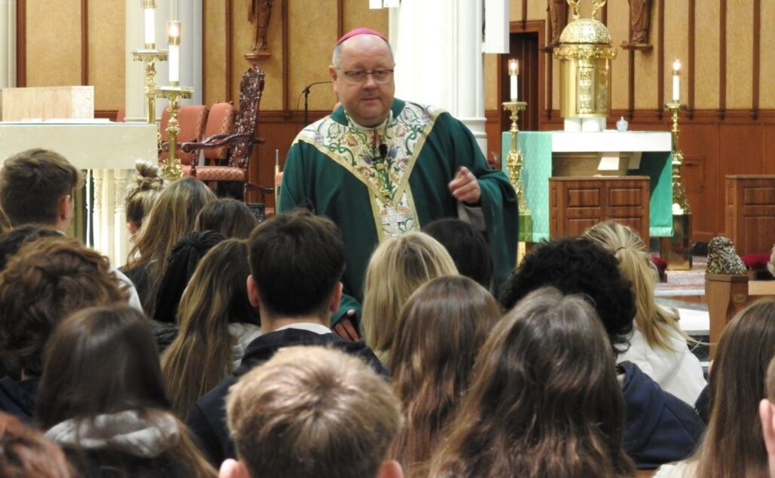 “So have faith, young Church. You are in the presence of the God who made you, loves you, forgives you and saves you … each of you is God’s beloved child and God delights in you. And that makes you each special to me, to your parents, to your teachers and to all who make up the family that you call your Catholic school,” the bishop said.