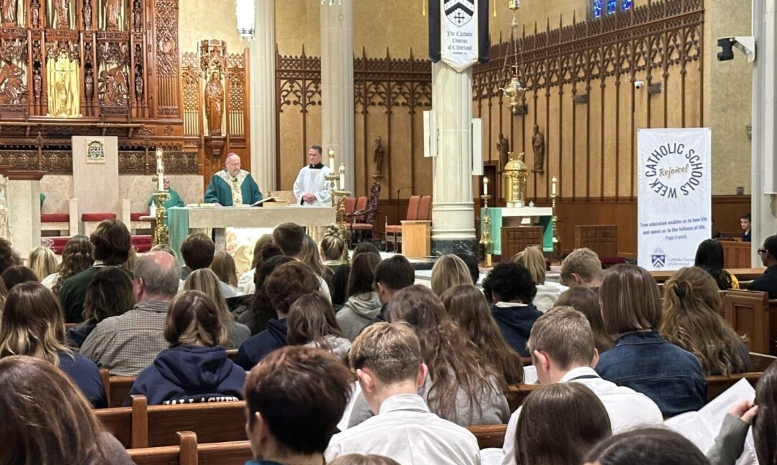Hundreds of elementary and high school students from across the eight-county Diocese of Cleveland traveled to the Cathedral of St. John the Evangelist on Jan. 30 for the annual Catholic Schools Week Mass.