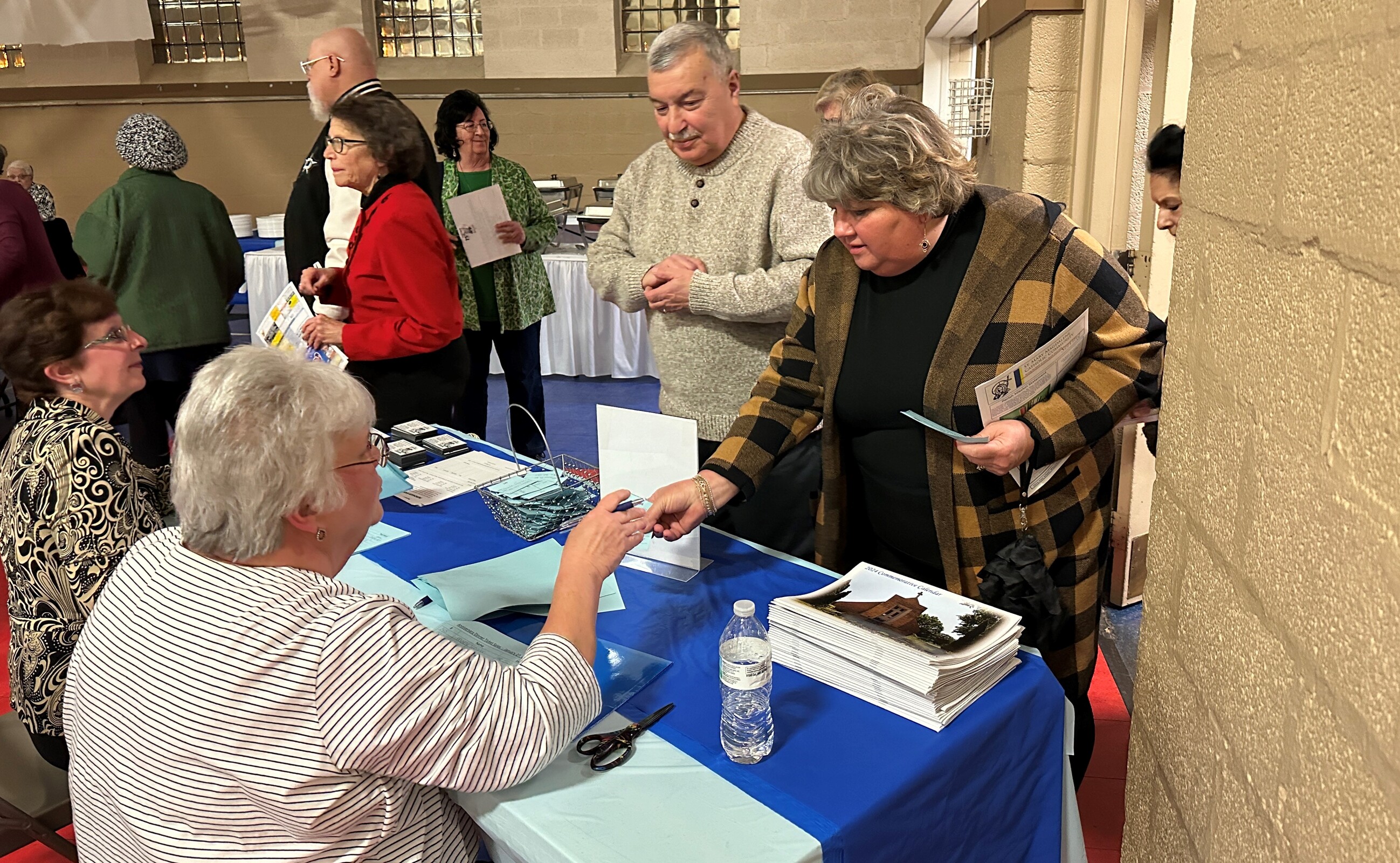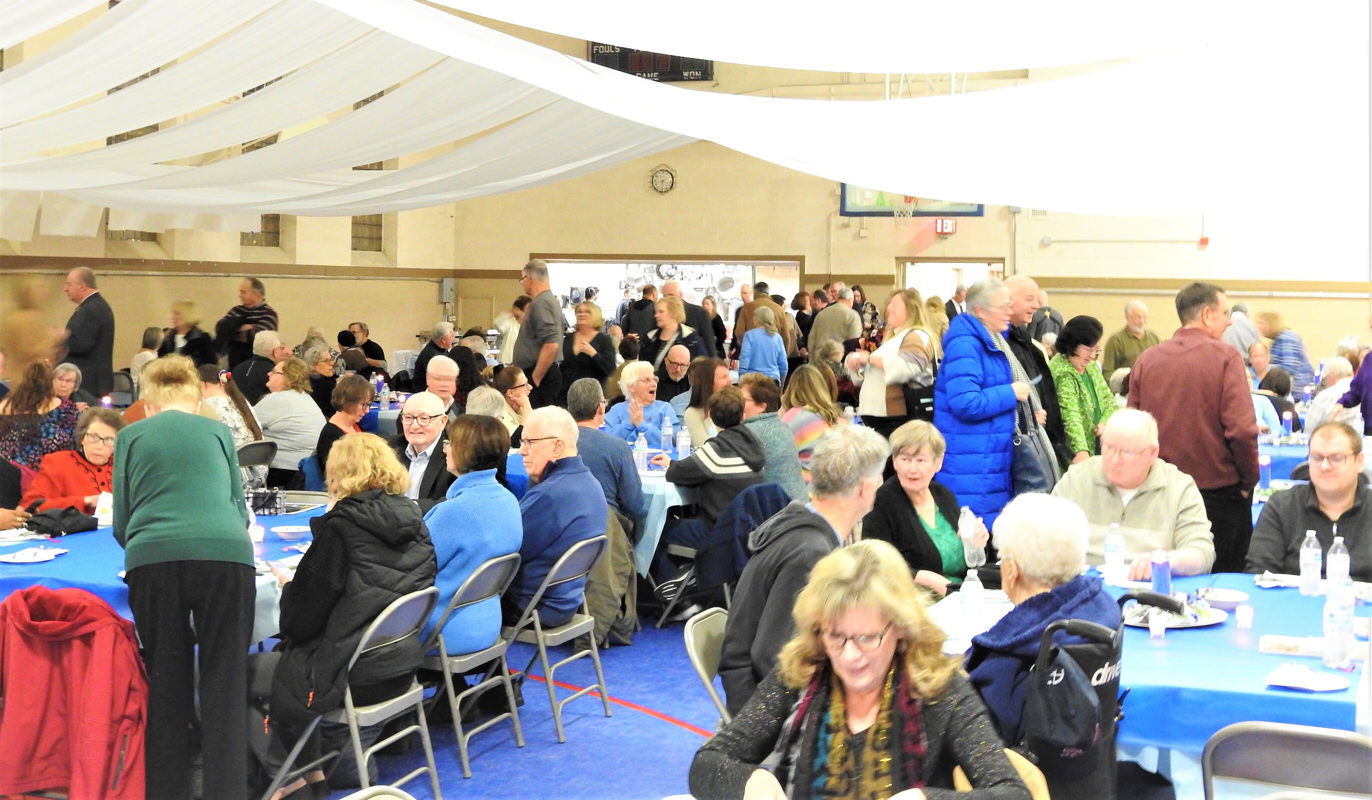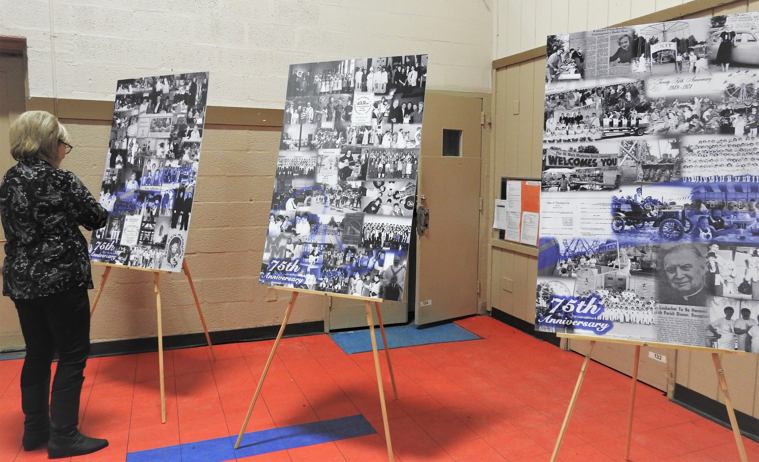 After Mass, the bishop and Father Breck joined parishioners and other guests for a sold-out dinner celebration in the school gym. Guests enjoyed looking at old photos from the parish’s first 75 years, playing games and reminiscing.