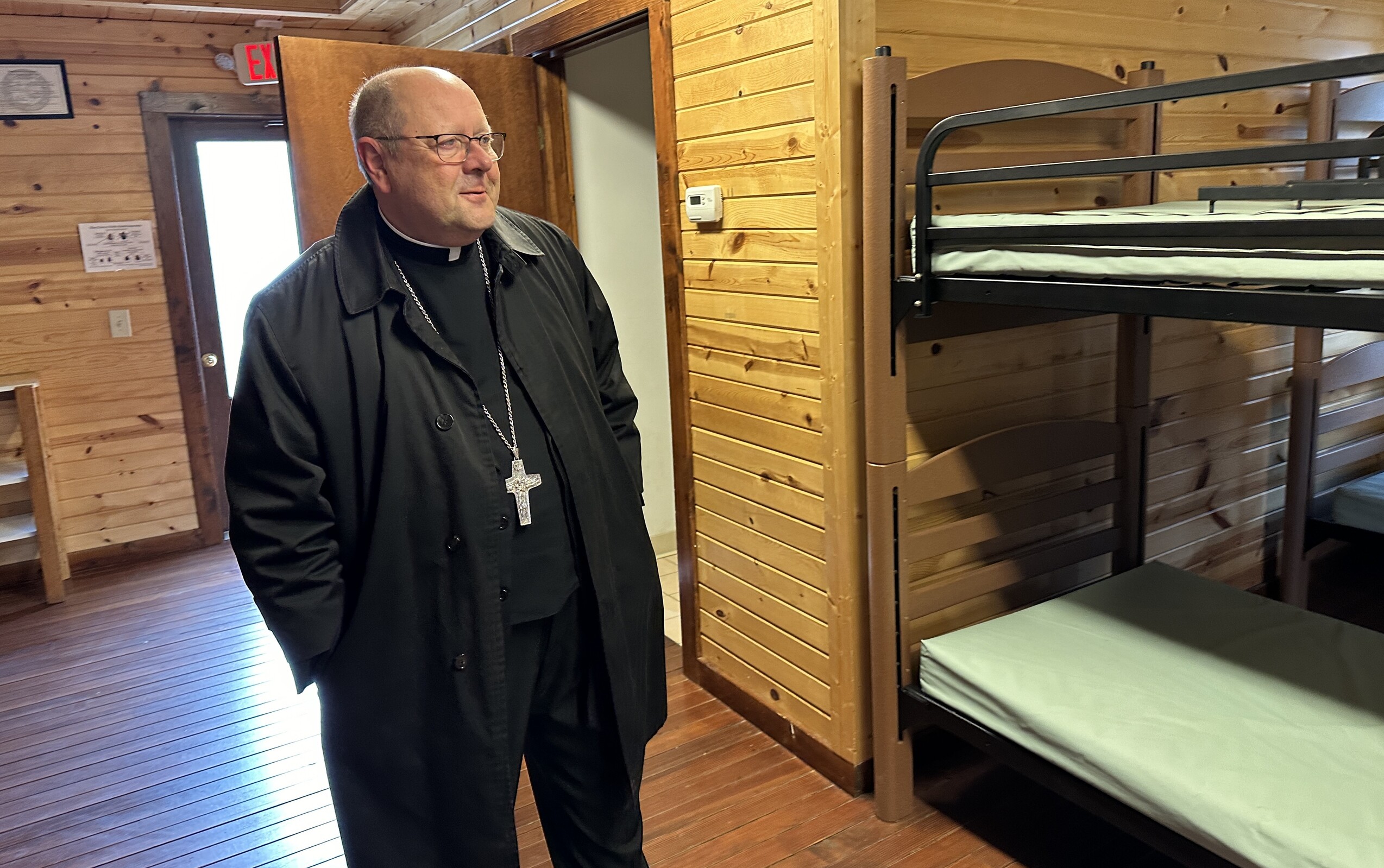 During a quick walk-about, the bishop saw construction/renovations at the dining hall and he stopped inside one of the newer cabins that often houses campers with developmental disabilities.