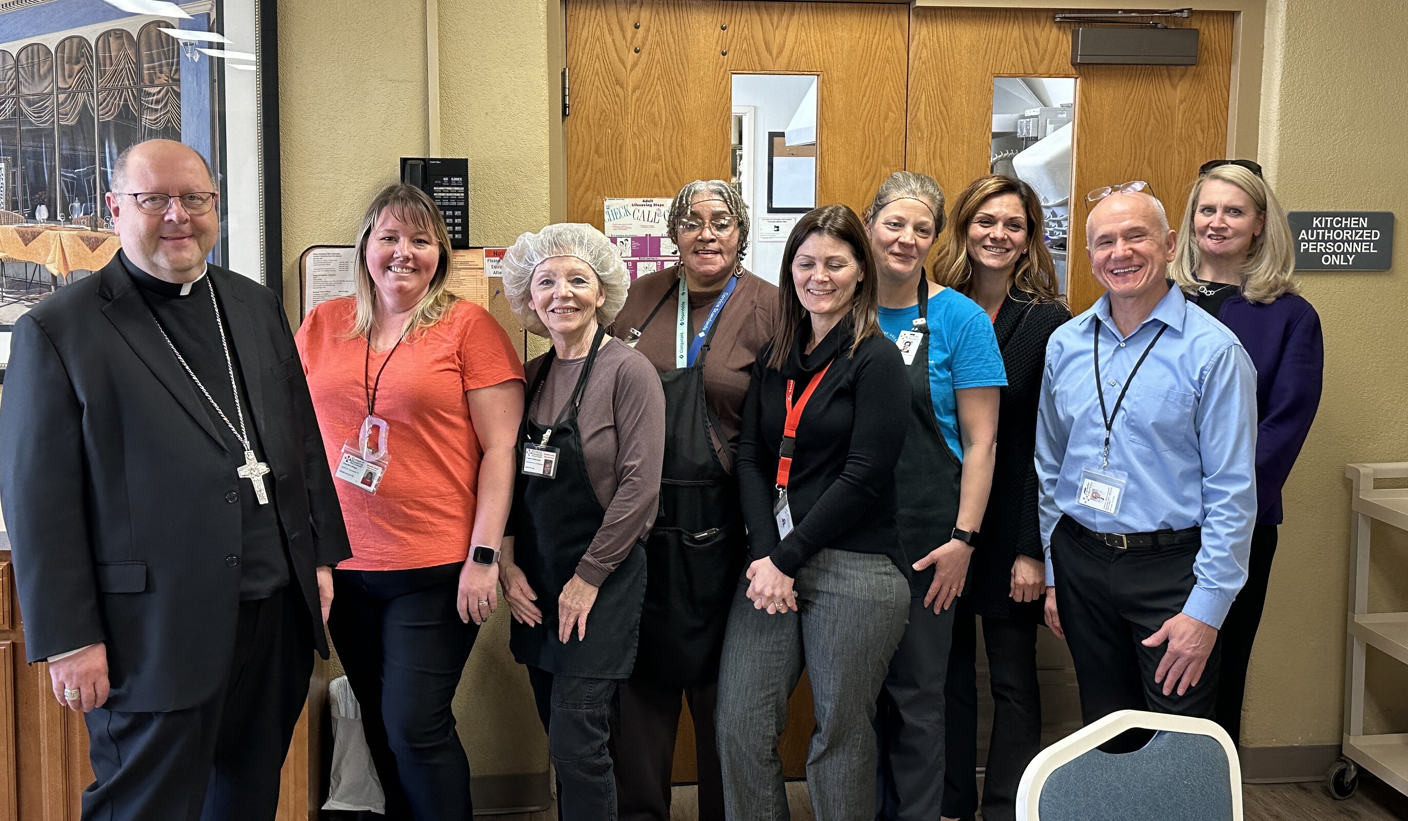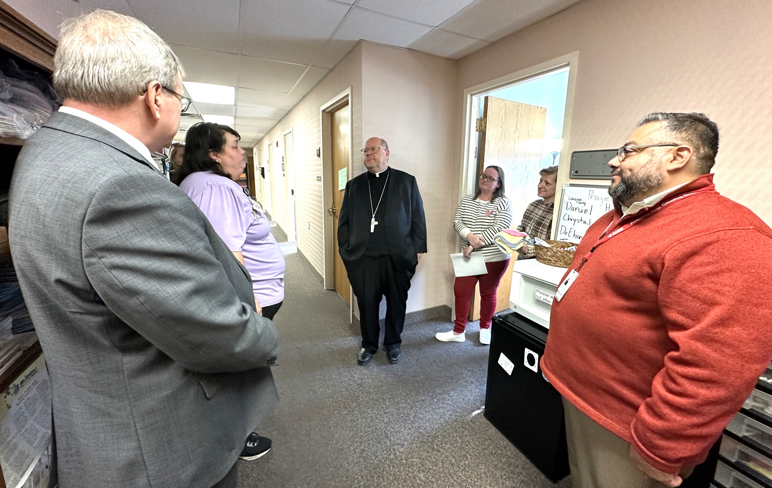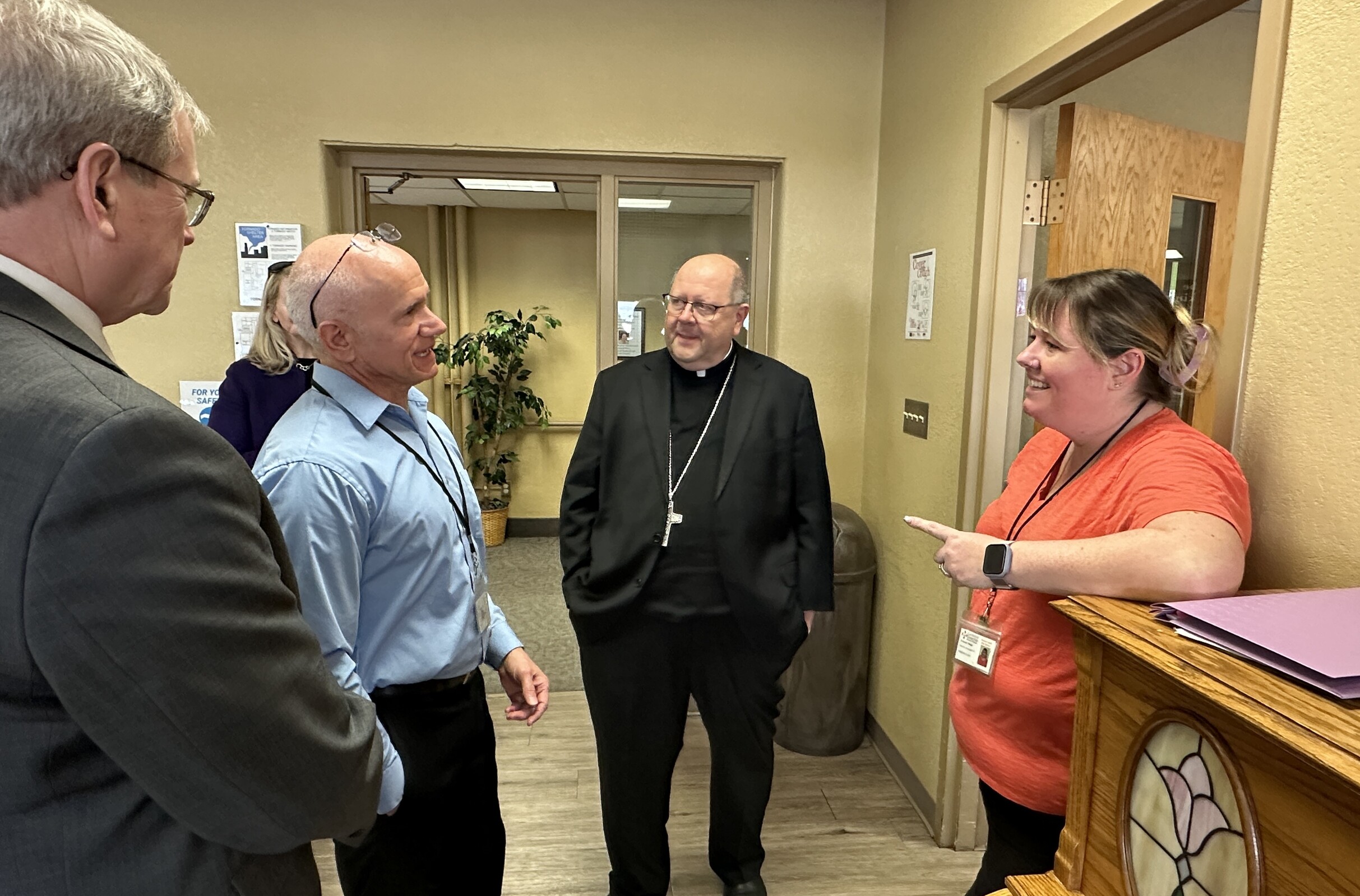 The bishop also stopped upstairs on the second floor to greet Catholic Charities’ staff members, including Camp Christopher operations personnel and Help Me Grow staff members.