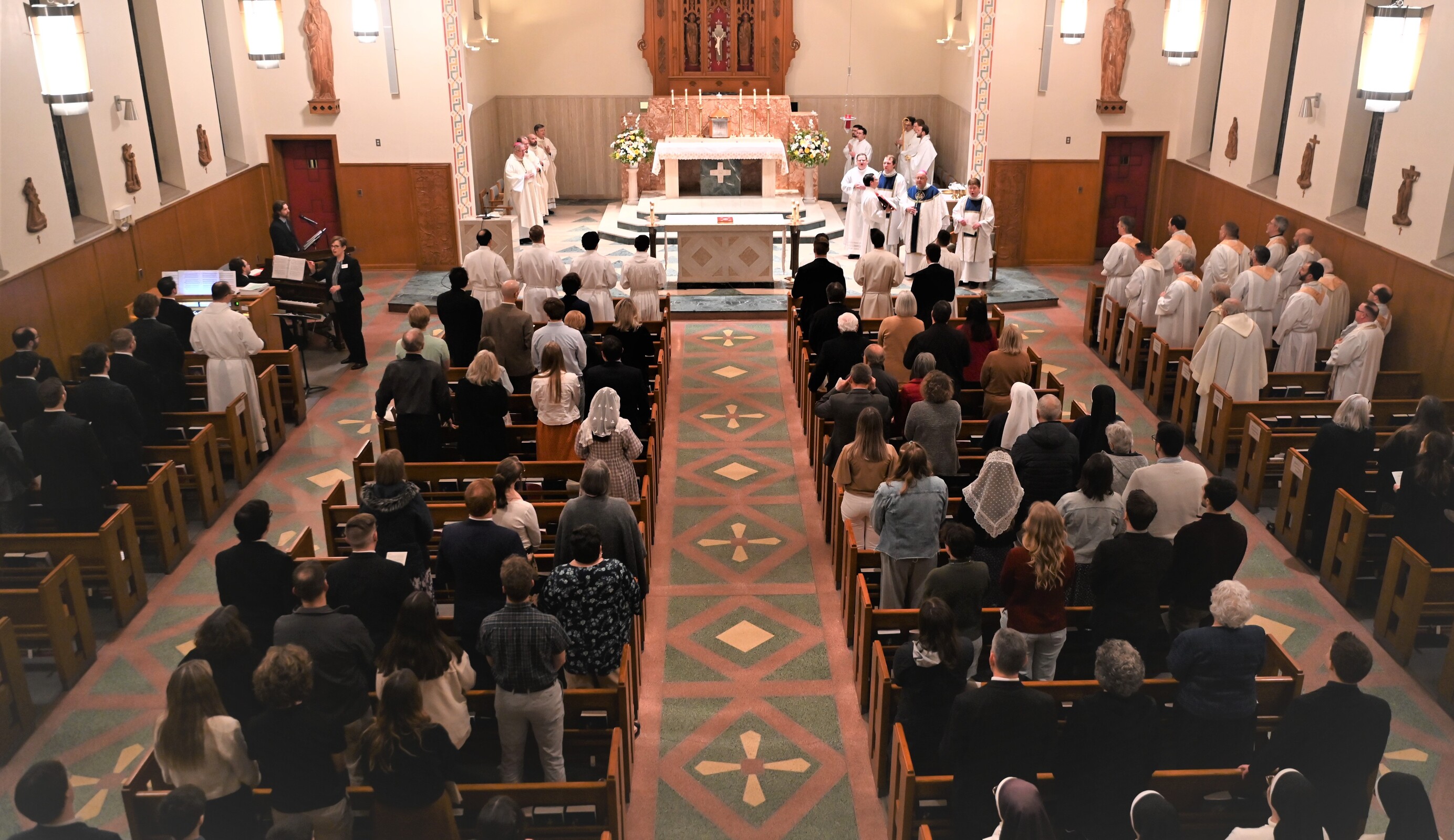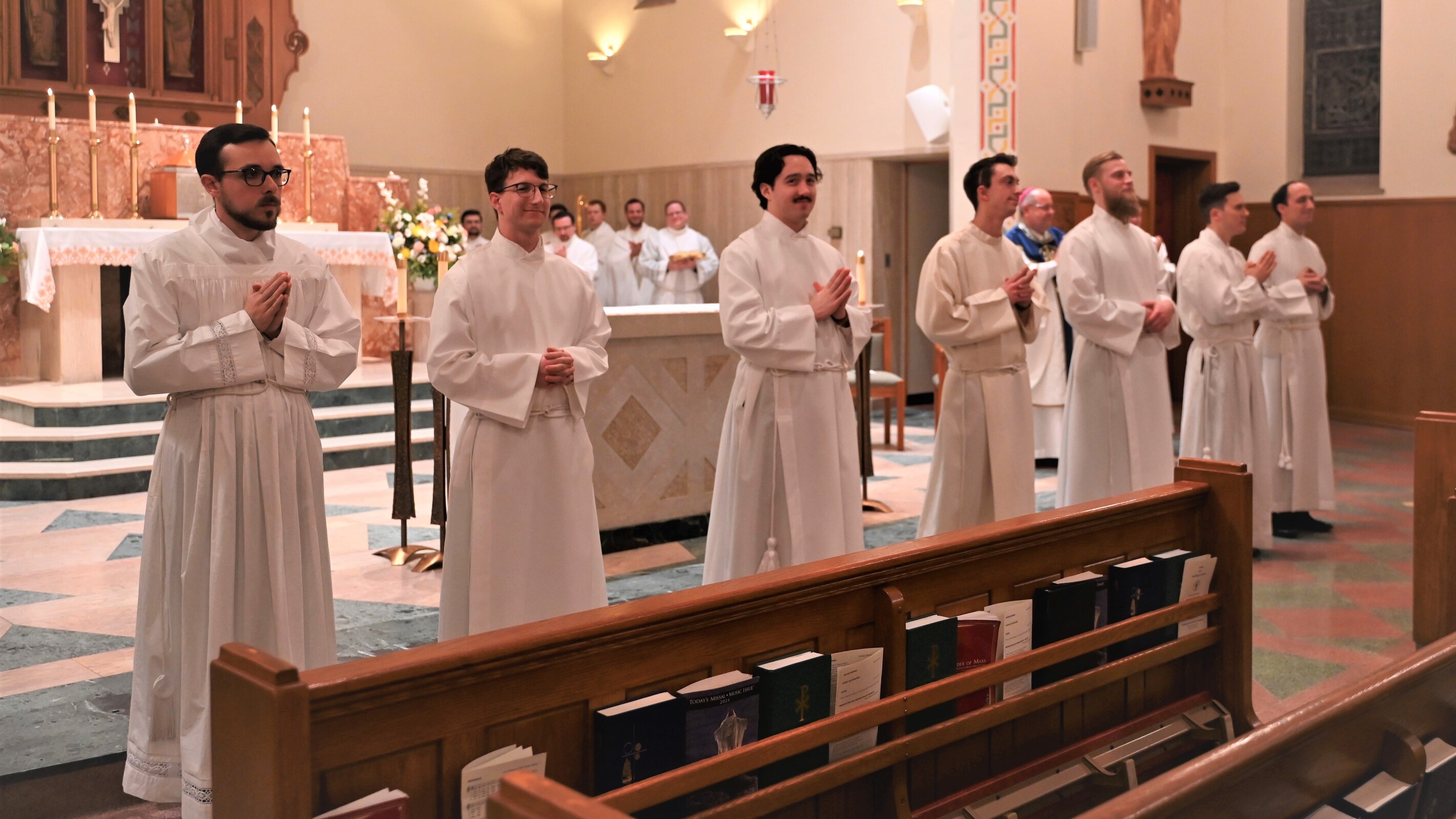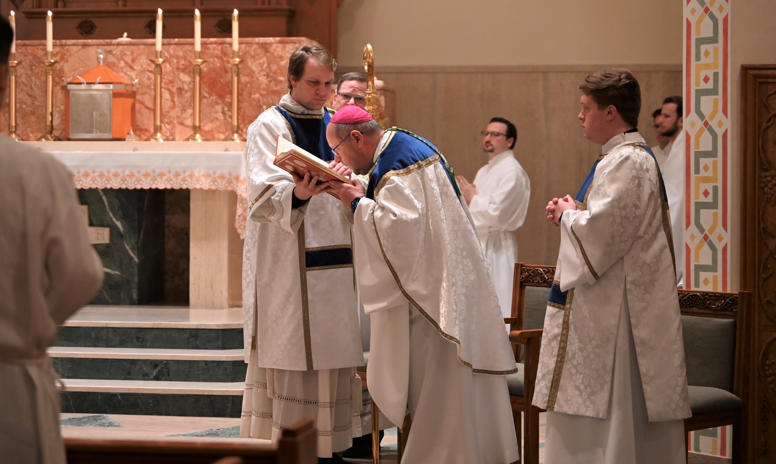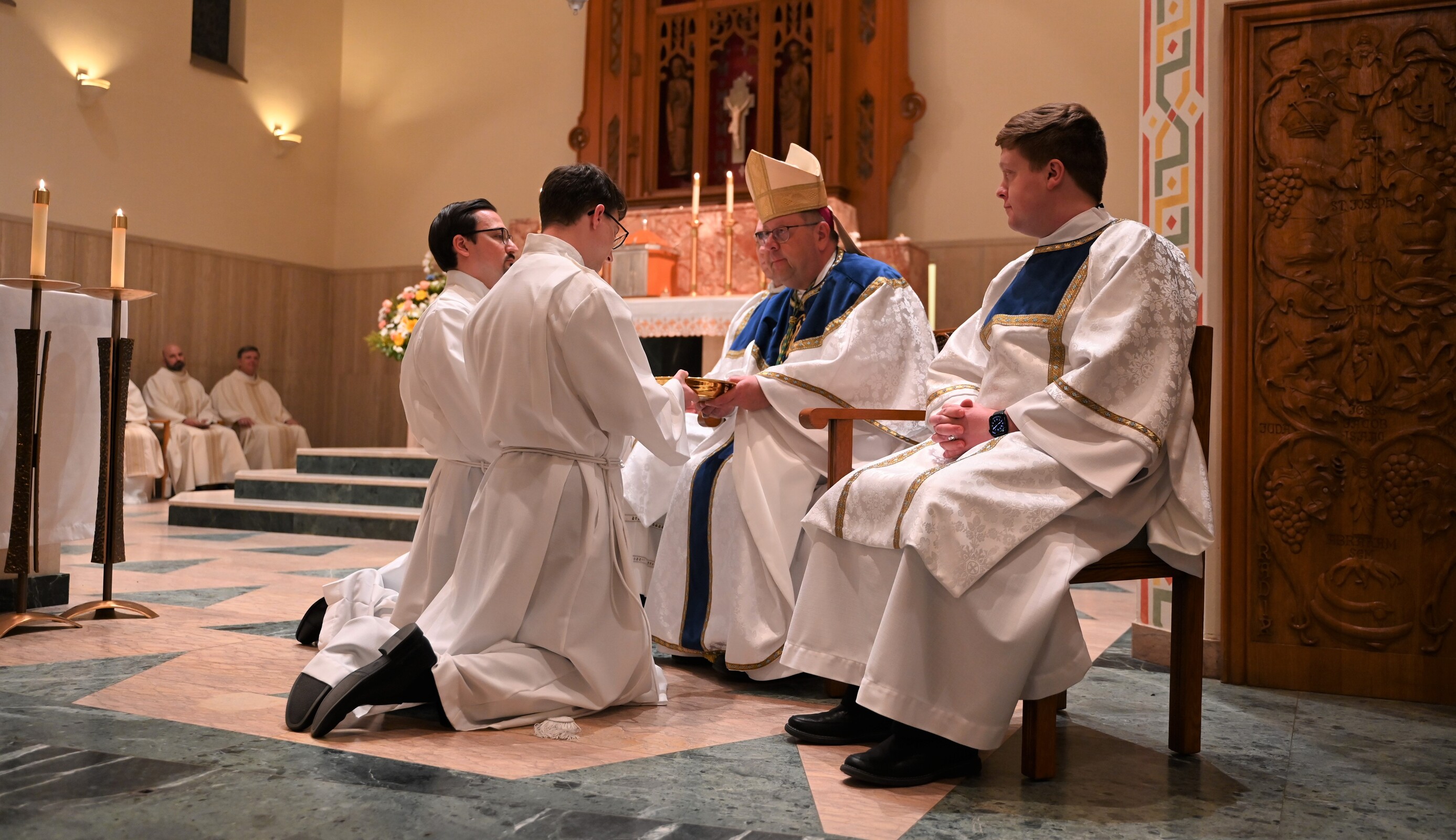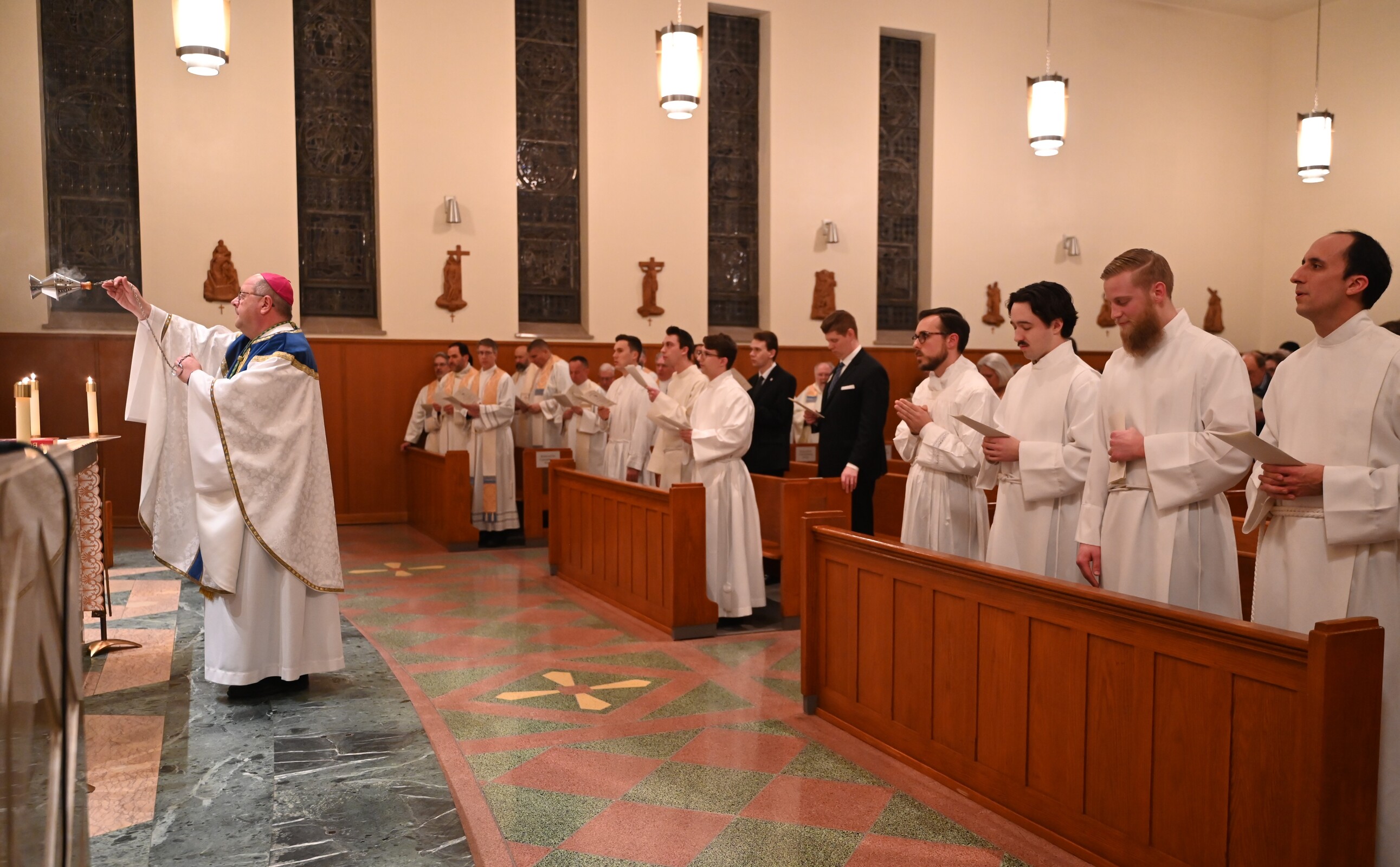 During a liturgy on Feb. 9 in Sacred Heart Chapel at the Center for Pastoral Leadership, seven Saint Mary seminarians took another step in their formation for the priesthood when Bishop Edward Malesic instituted them in the ministry of acolyte.