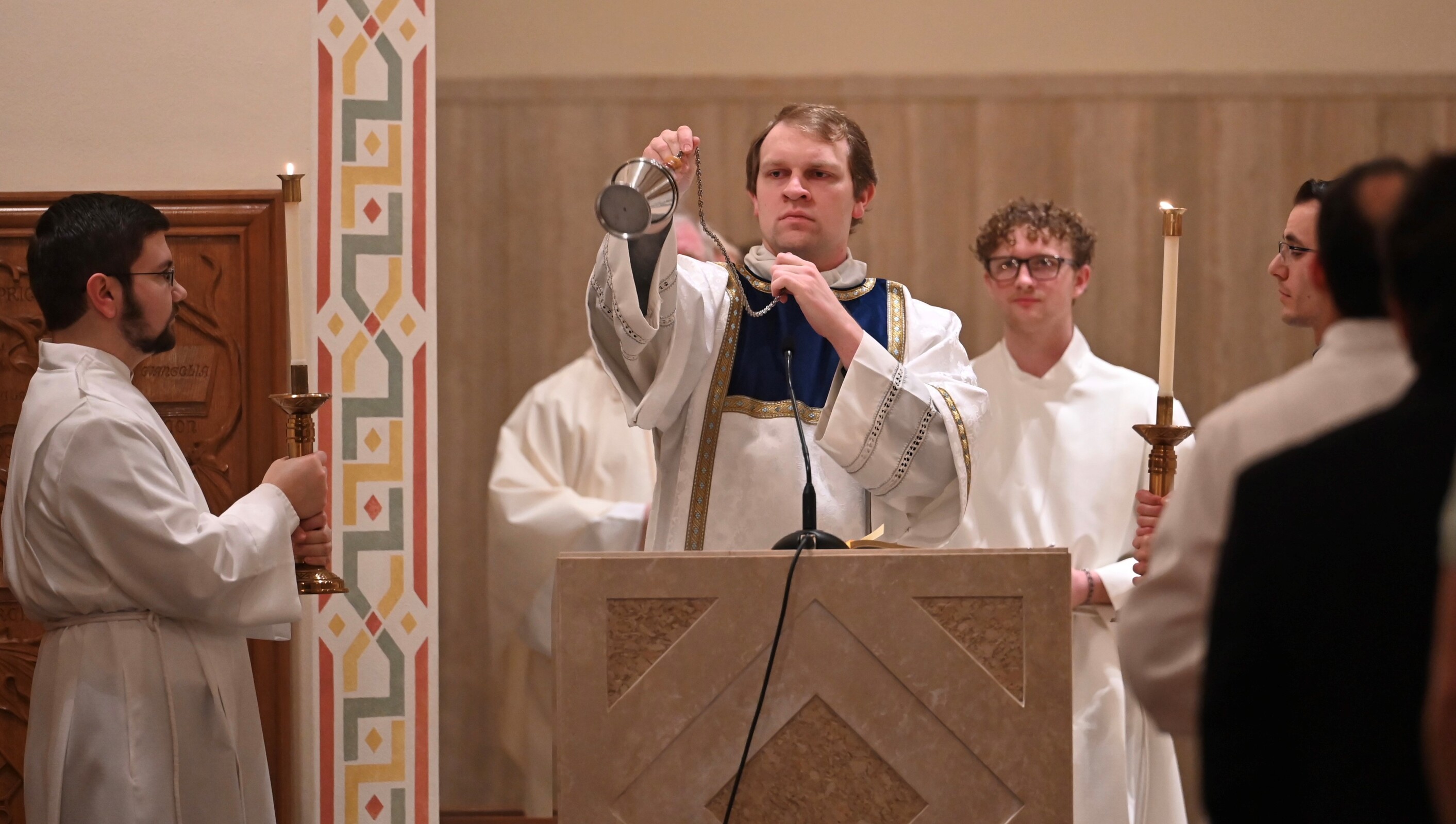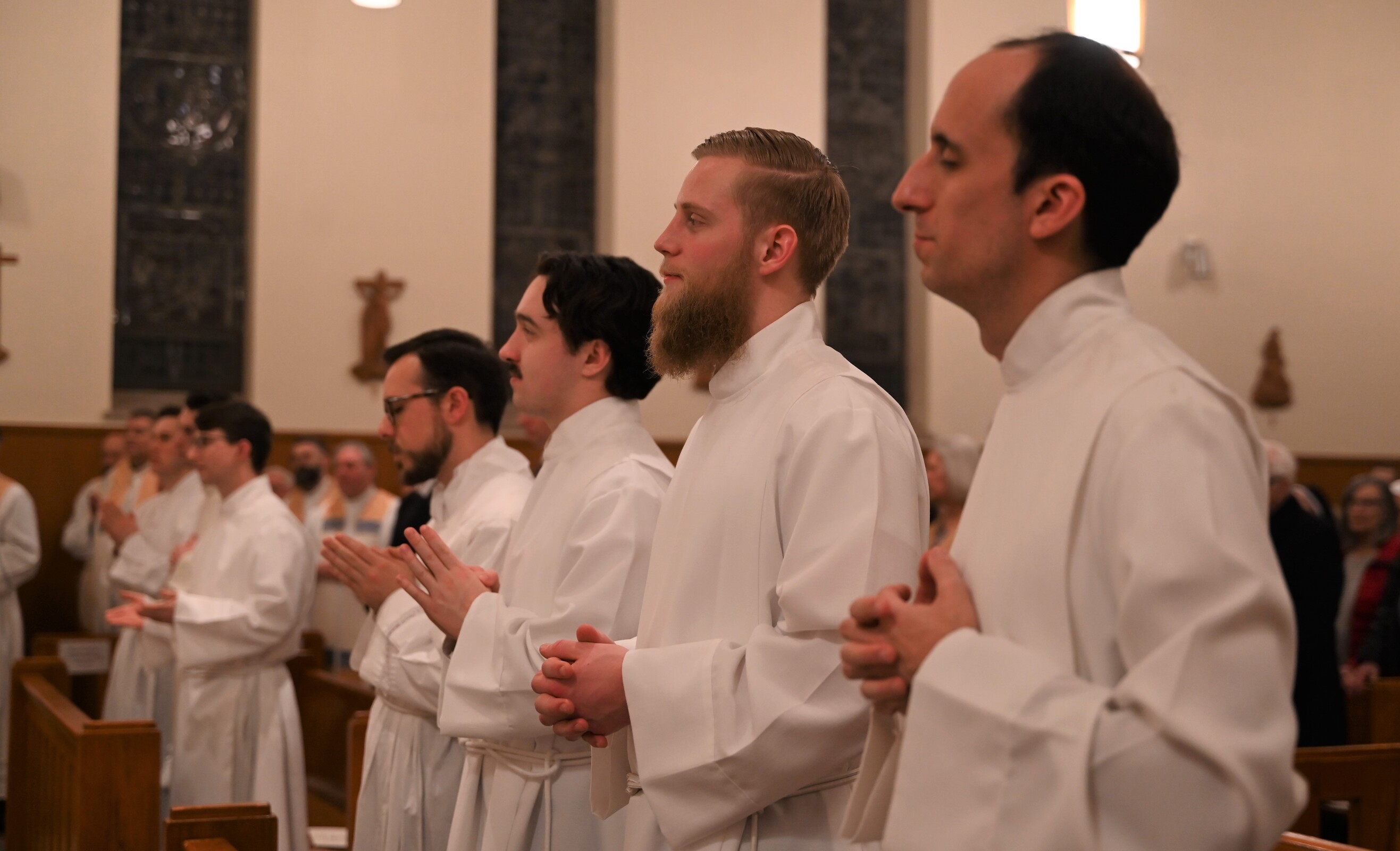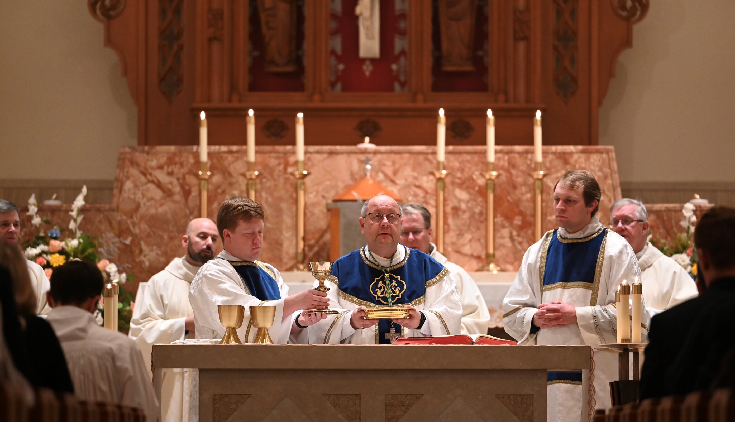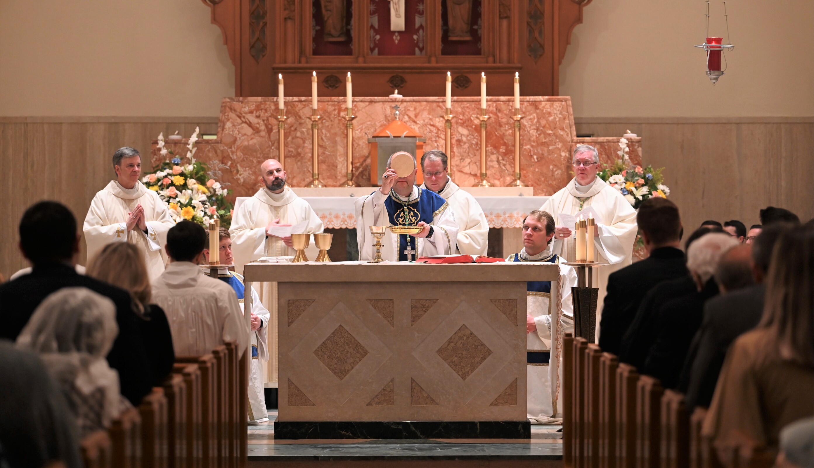 During a liturgy on Feb. 9 in Sacred Heart Chapel at the Center for Pastoral Leadership, seven Saint Mary seminarians took another step in their formation for the priesthood when Bishop Edward Malesic instituted them in the ministry of acolyte.
