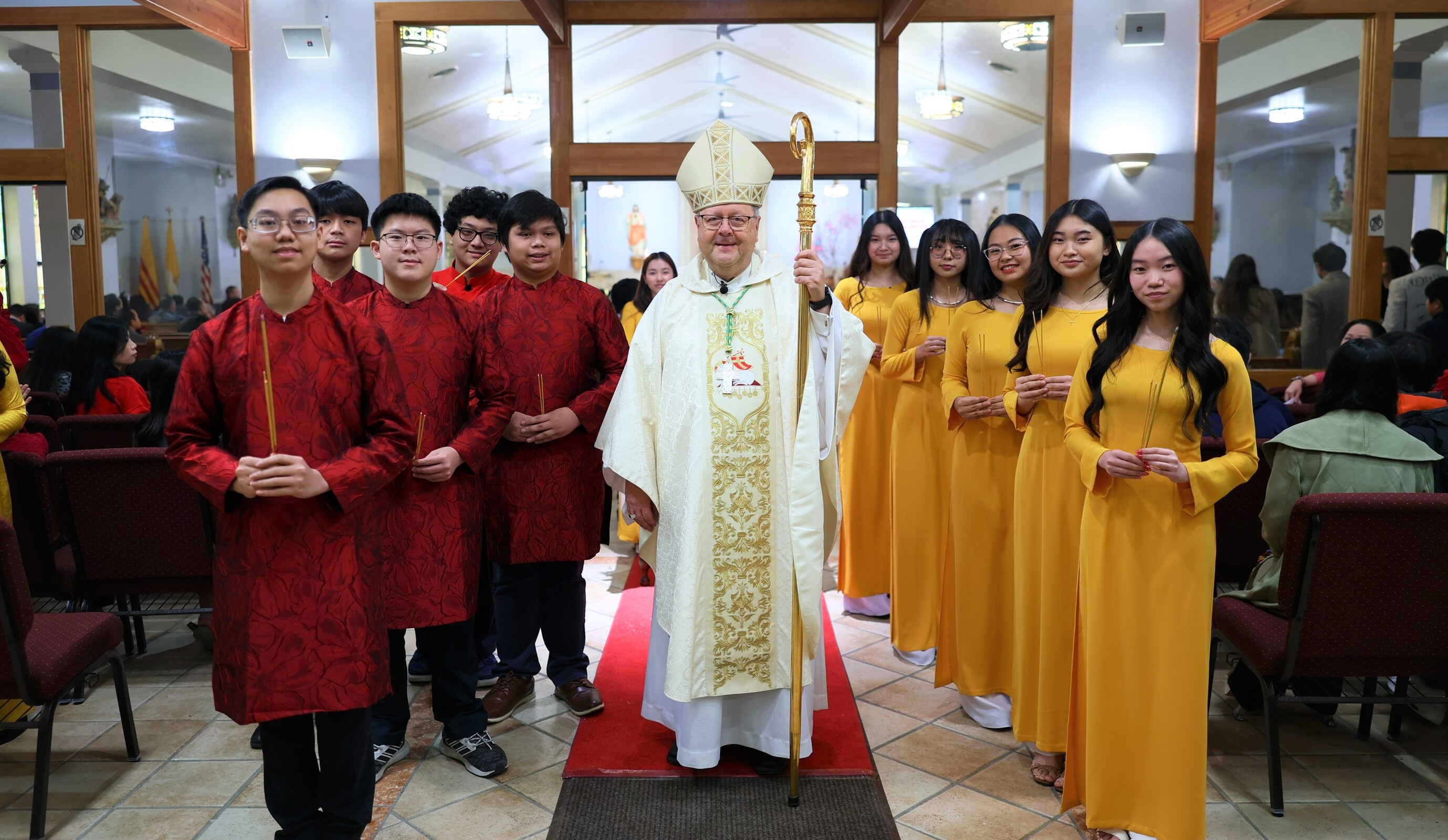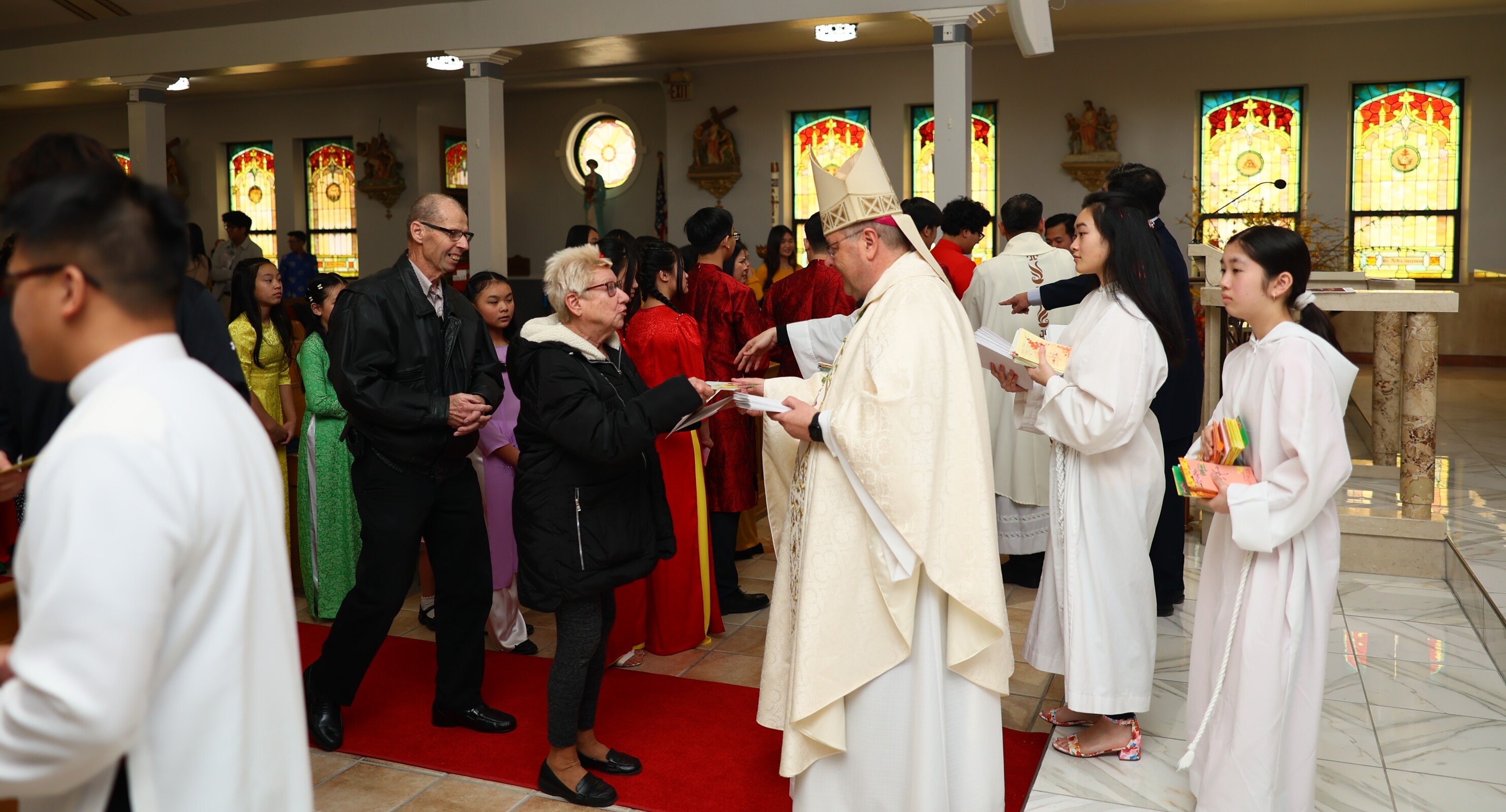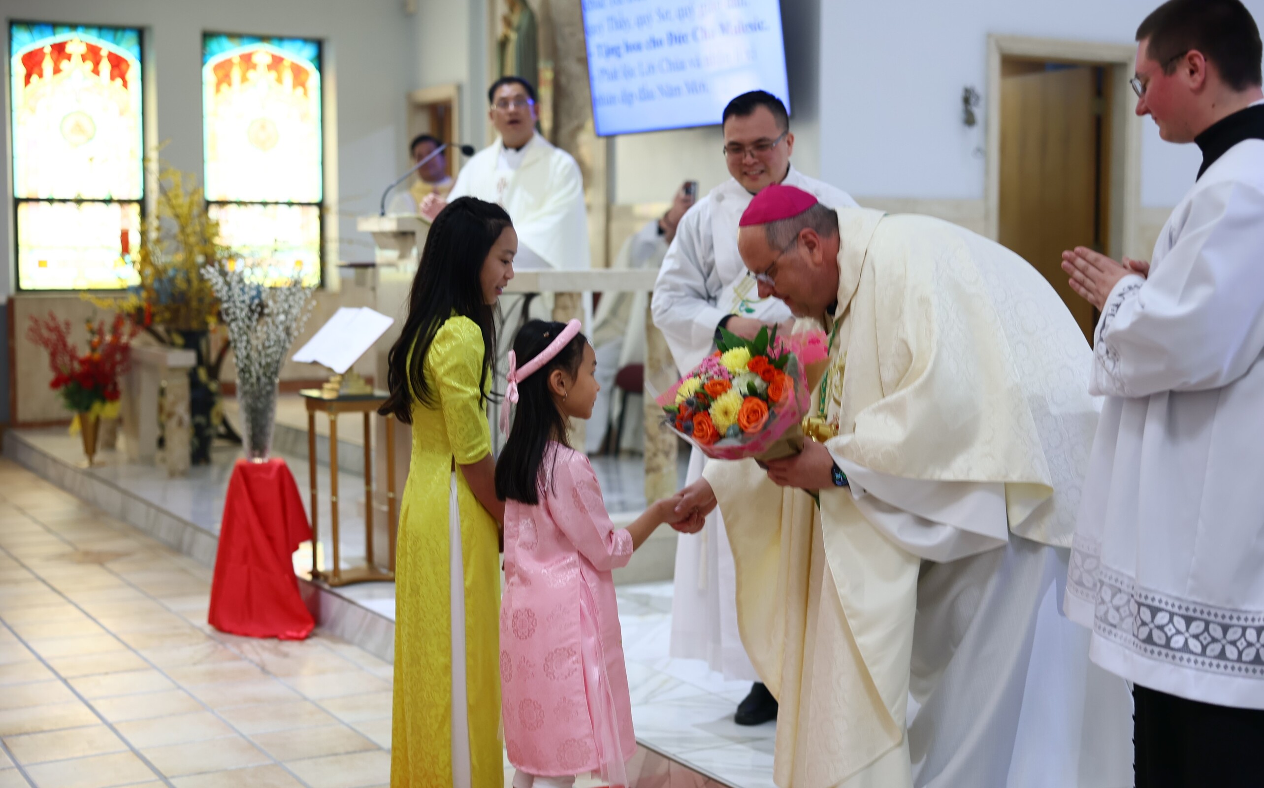 Bishop Edward Malesic joined the pastor, Father Mark Dao Quoc Minh, for the liturgy. Father Damian Ference, vicar for evangelization, also attended the celebration.