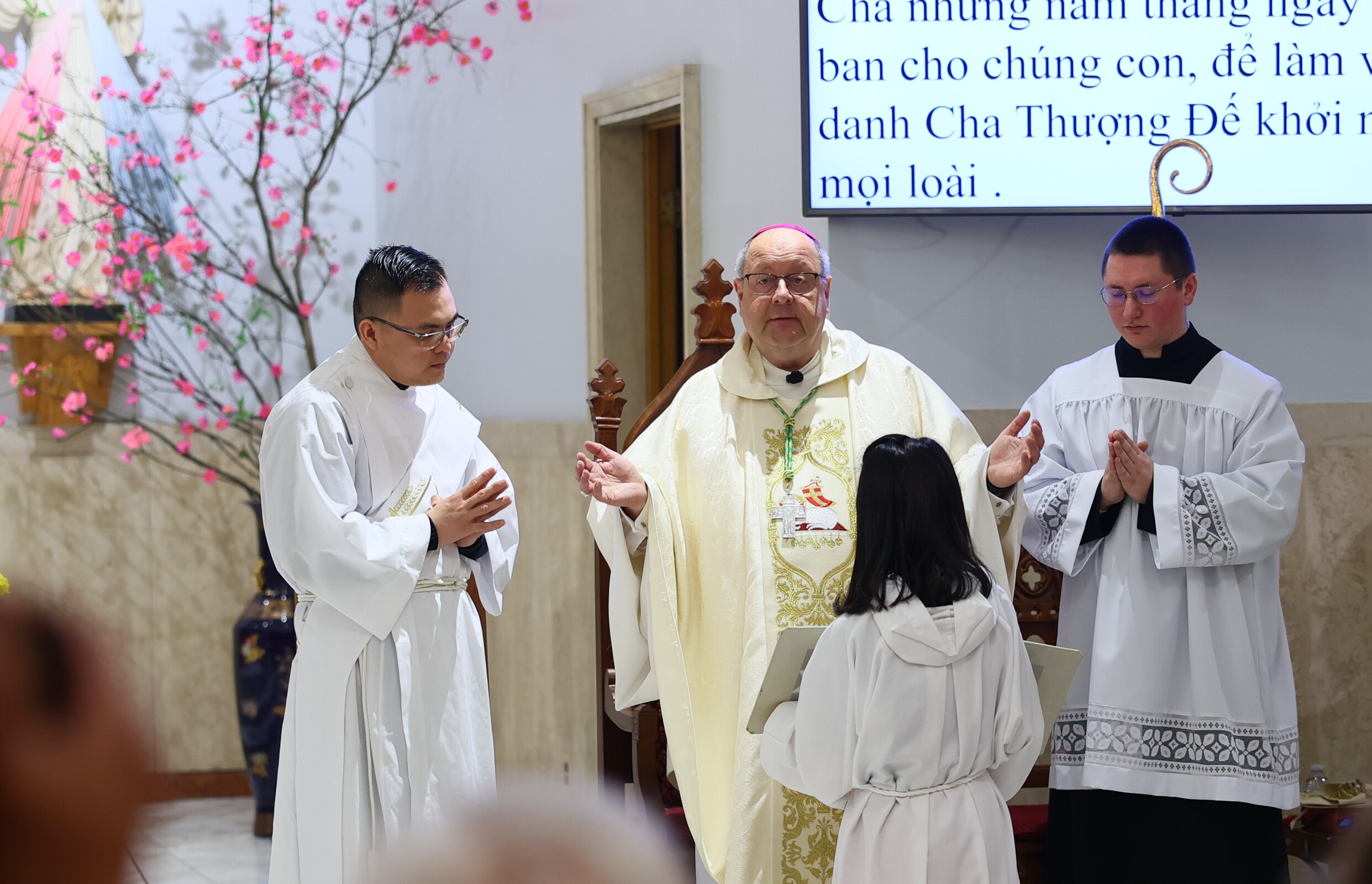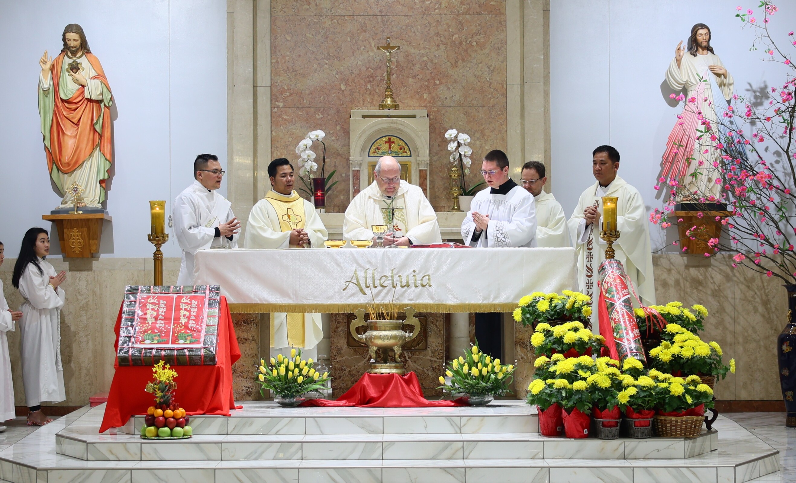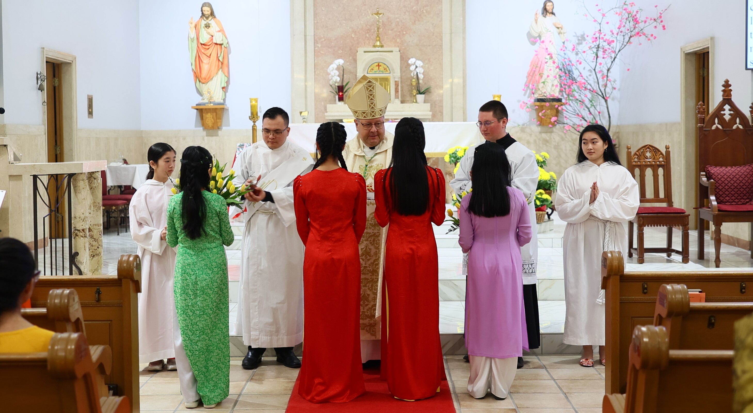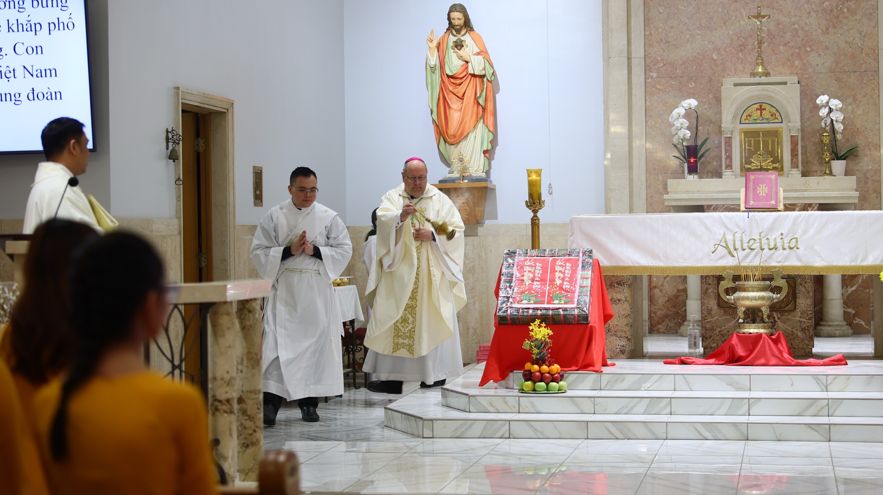Bishop Edward Malesic joined the pastor, Father Mark Dao Quoc Minh, for the liturgy. Father Damian Ference, vicar for evangelization, also attended the celebration.