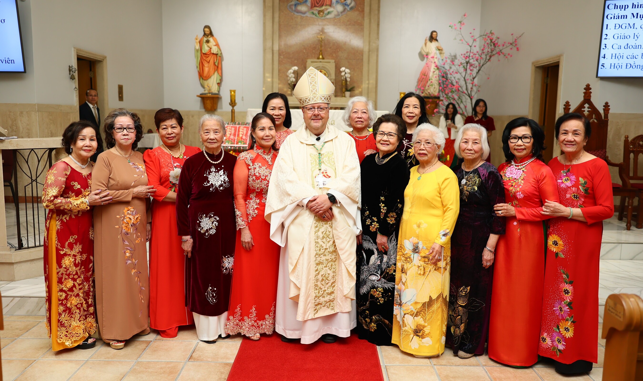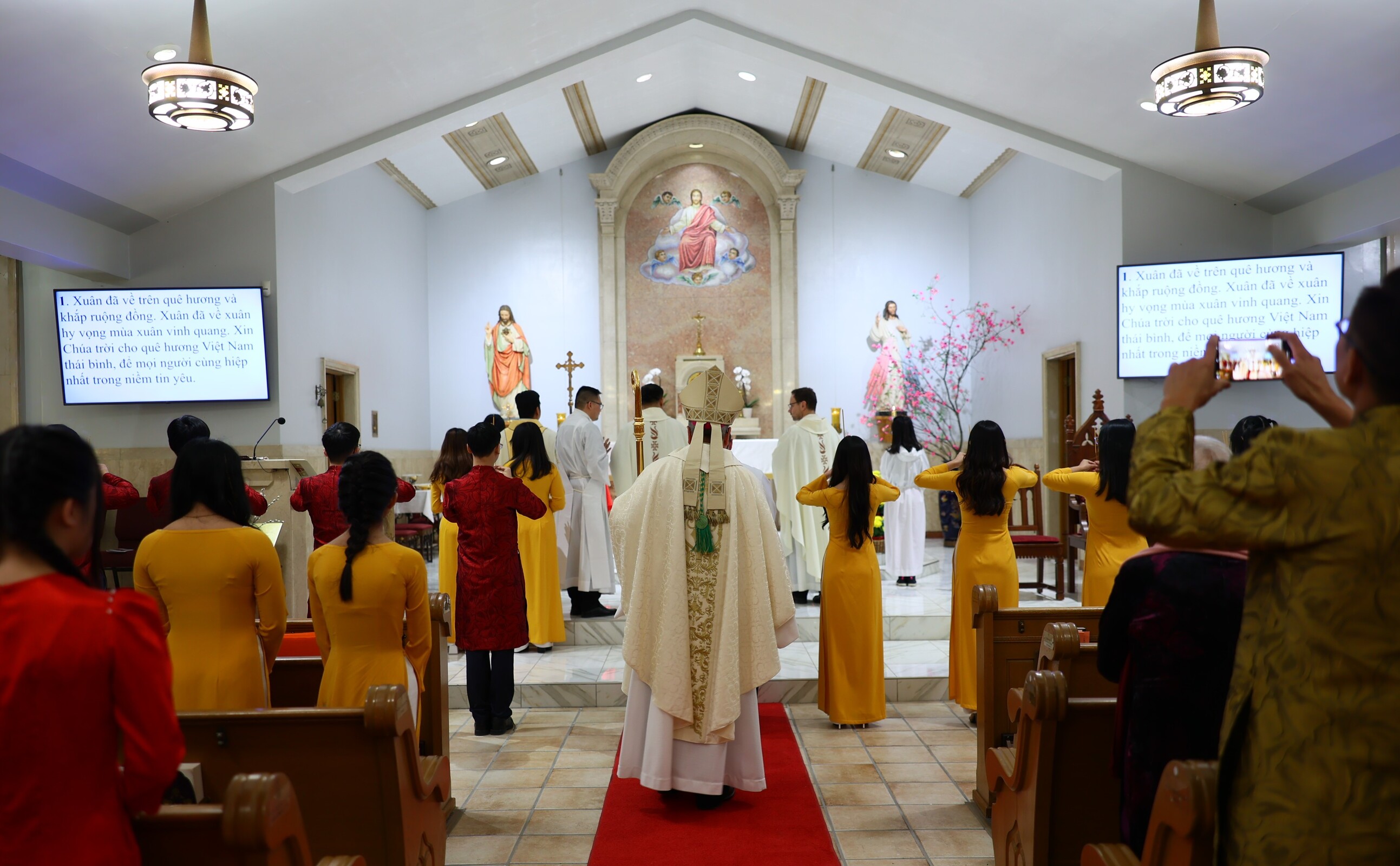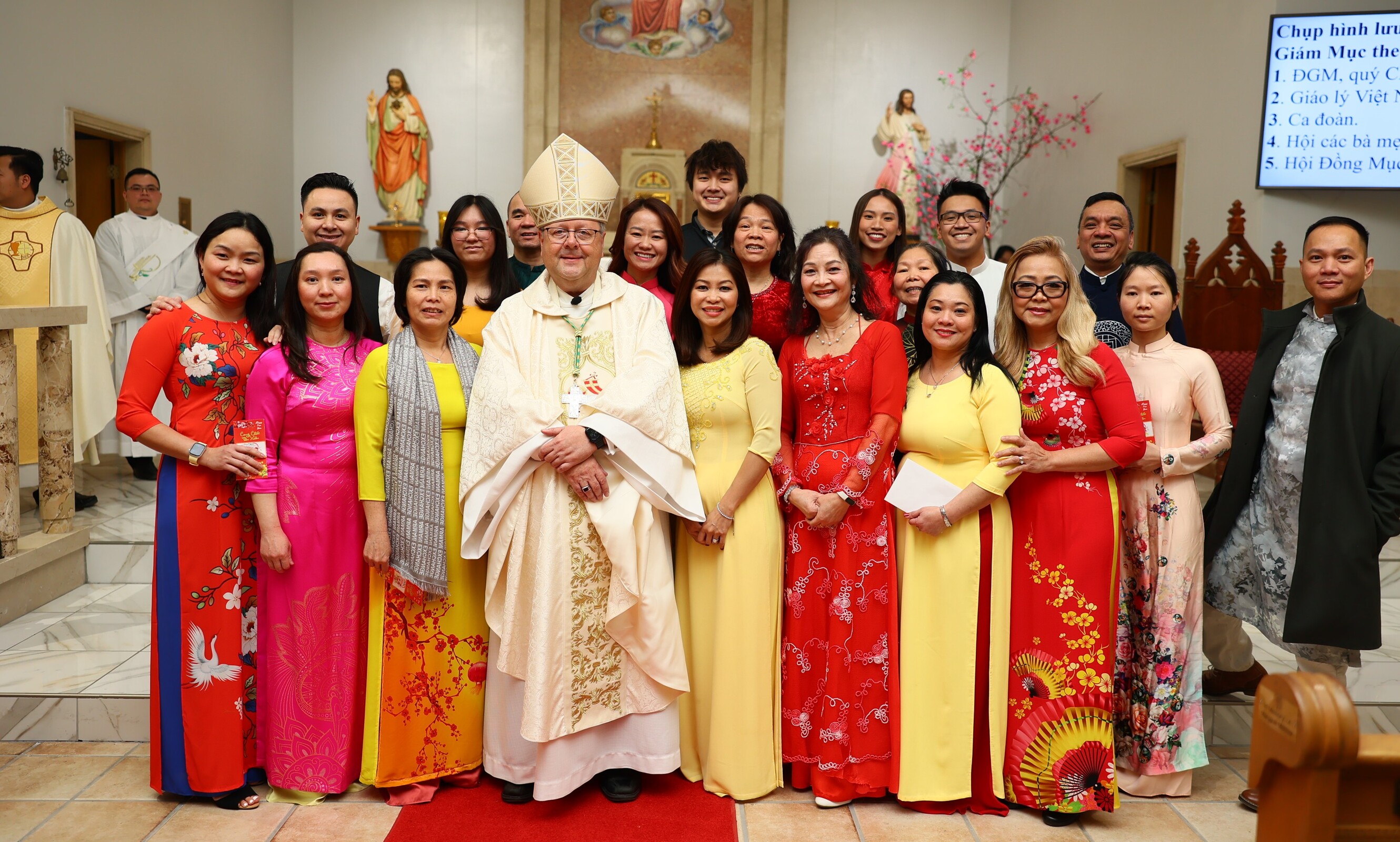 “I am delighted to be able to be here with you at St. Boniface Parish to celebrate the holy sacrifice of the Mass and the start of the annual Tet new year,” the bishop told the congregation. He said he was honored to be able to meet members of the Vietnamese Apostolate, which was established in 1992.