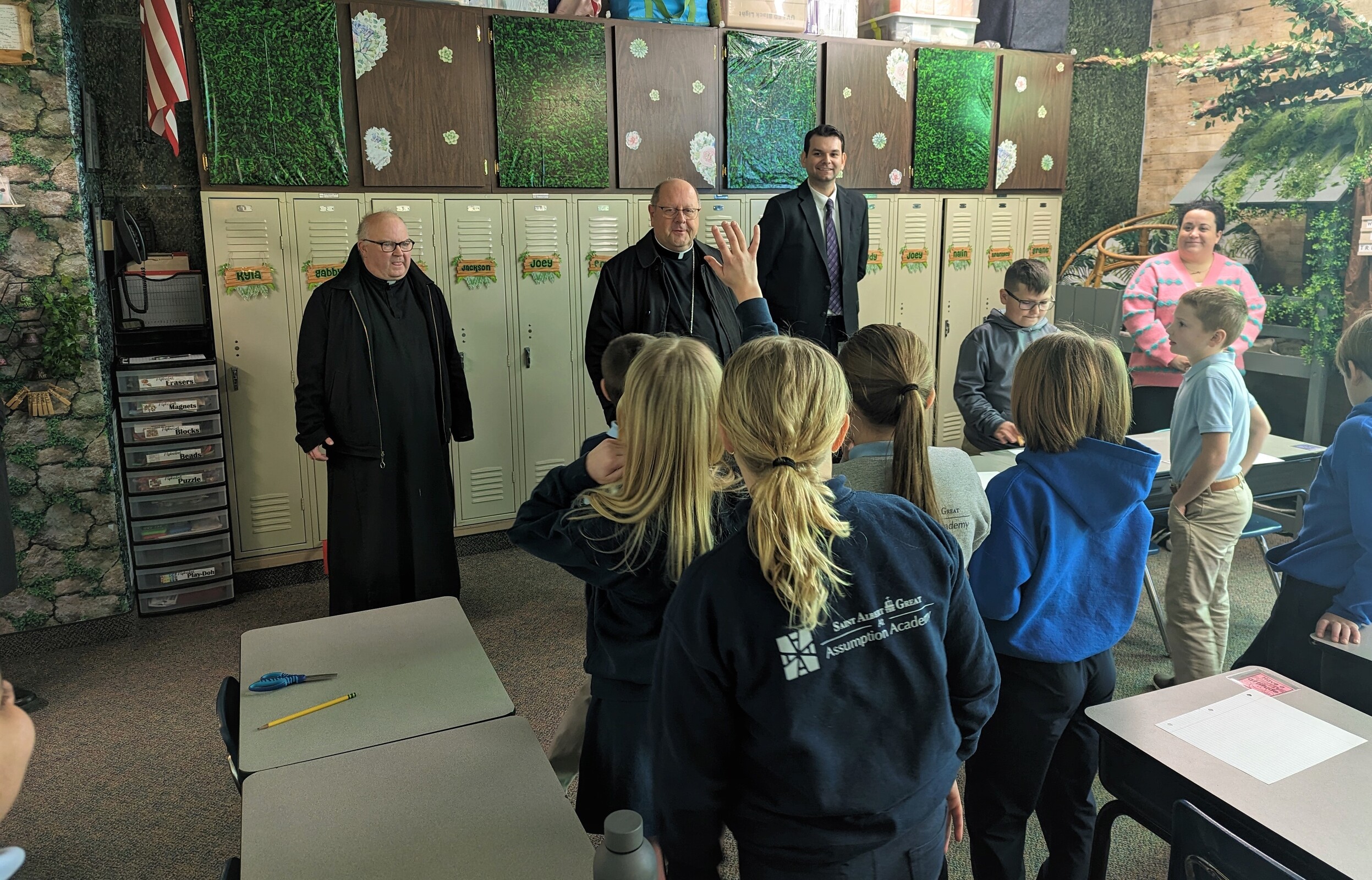 Bishop Edward Malesic originally was scheduled to visit St. Albert the Great at Assumption Academy in Broadview Heights last November, but a snowstorm forced its postponement.