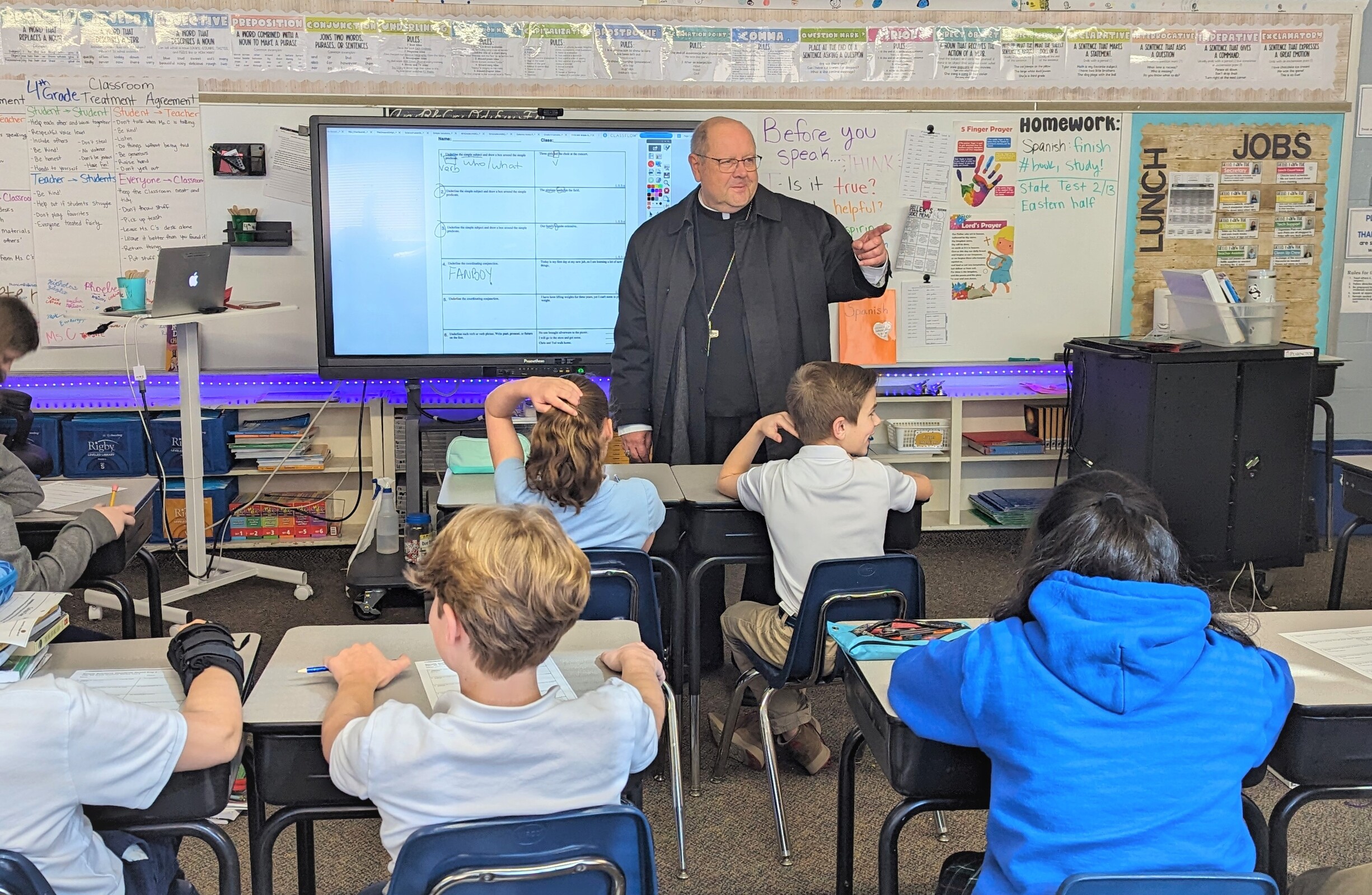 The bishop related this to the students having a difficult day – perhaps a tough math test, having their feelings hurt or something going wrong at home and being punished. “James said we should see these things as a test of our faith,” he said. In fact, he said we should consider it all a joy when encountering various trials because the testing of faith produces perseverance.