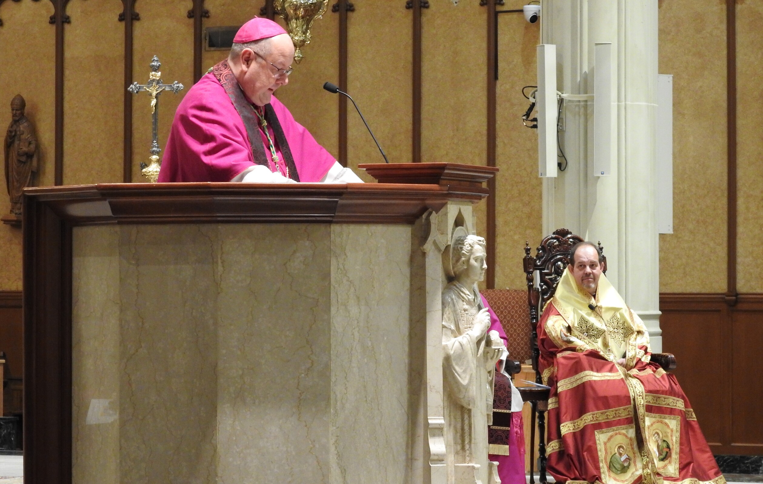 Cleveland Bishop Edward Malesic and Bishop Bohdan Danylo, leader of the Ukrainian Catholic Eparchy of St. Josaphat in Parma, partnered for the event. Each bishop also spoke from the pulpit. Cleveland Auxiliary Bishop Michael Woost also participated in the prayer vigil.