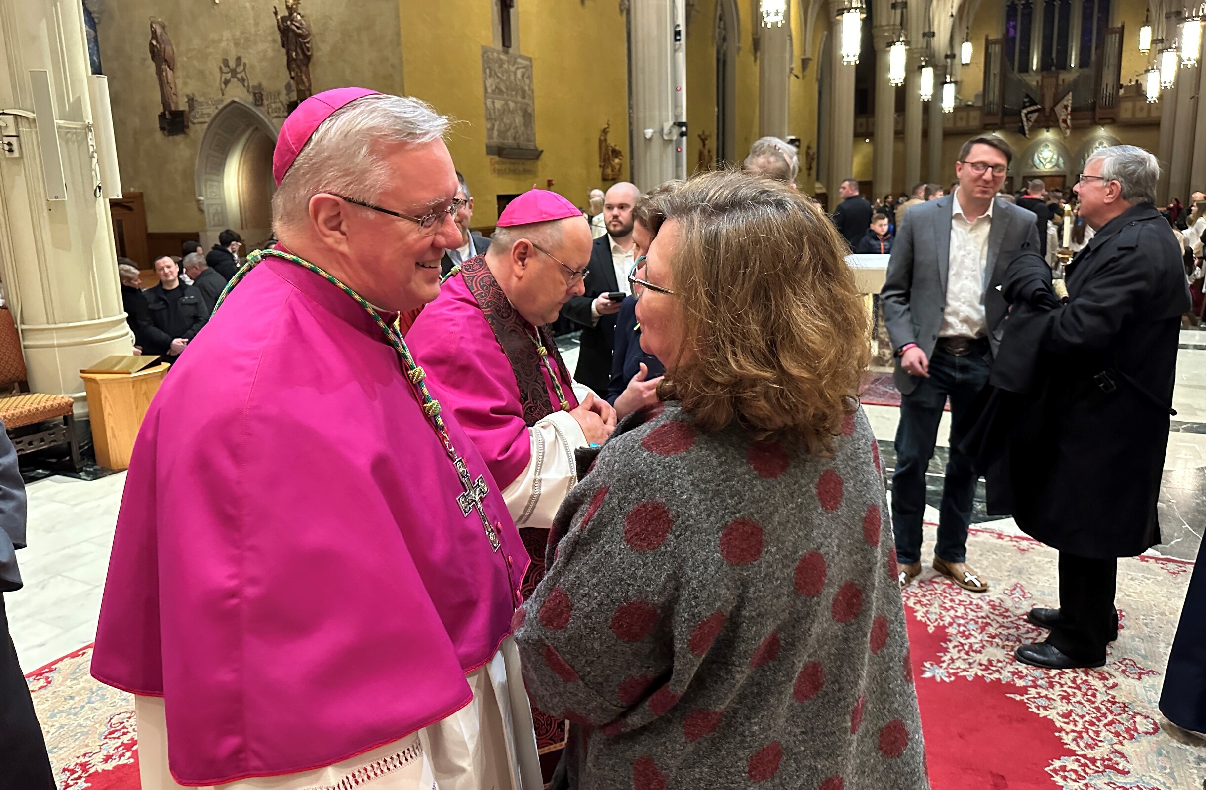 “Two years ago, we came together here to pray for an end to the hostilities and to express solidarity with the people of Ukraine. We prayed for an end to all war. Even the heaviest mountain can be moved with prayer. Tonight, we offer prayers to heaven and ask God to look kindly on those who are suffering. We have faith in him. We know that God hears us. Let us pray for a lasting peace in Ukraine, Israel, Palestine Myanmar, Congo, Sudan, Somalia and wherever there is fighting,” the bishop said. “Let us also pray for pace in our own cities and homes and for a conversion of hearts as well as for the refugees among us, so that strangers become friends.”