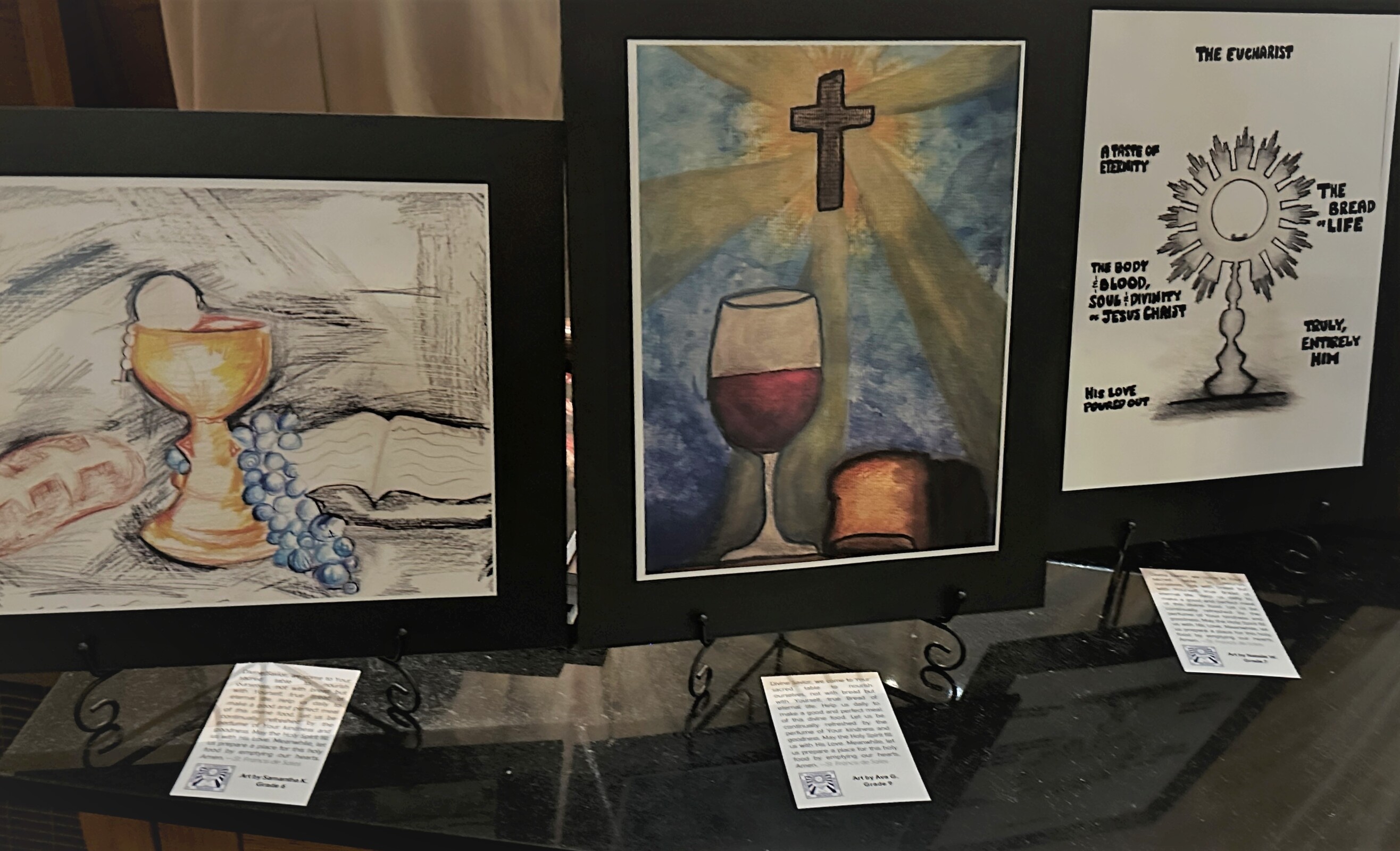 Four honorable mentions and one winner in each grade level were selected. Each winner received a holy card with the Eucharistic Revival prayer. Their art was printed and displayed in the cathedral on March 6.