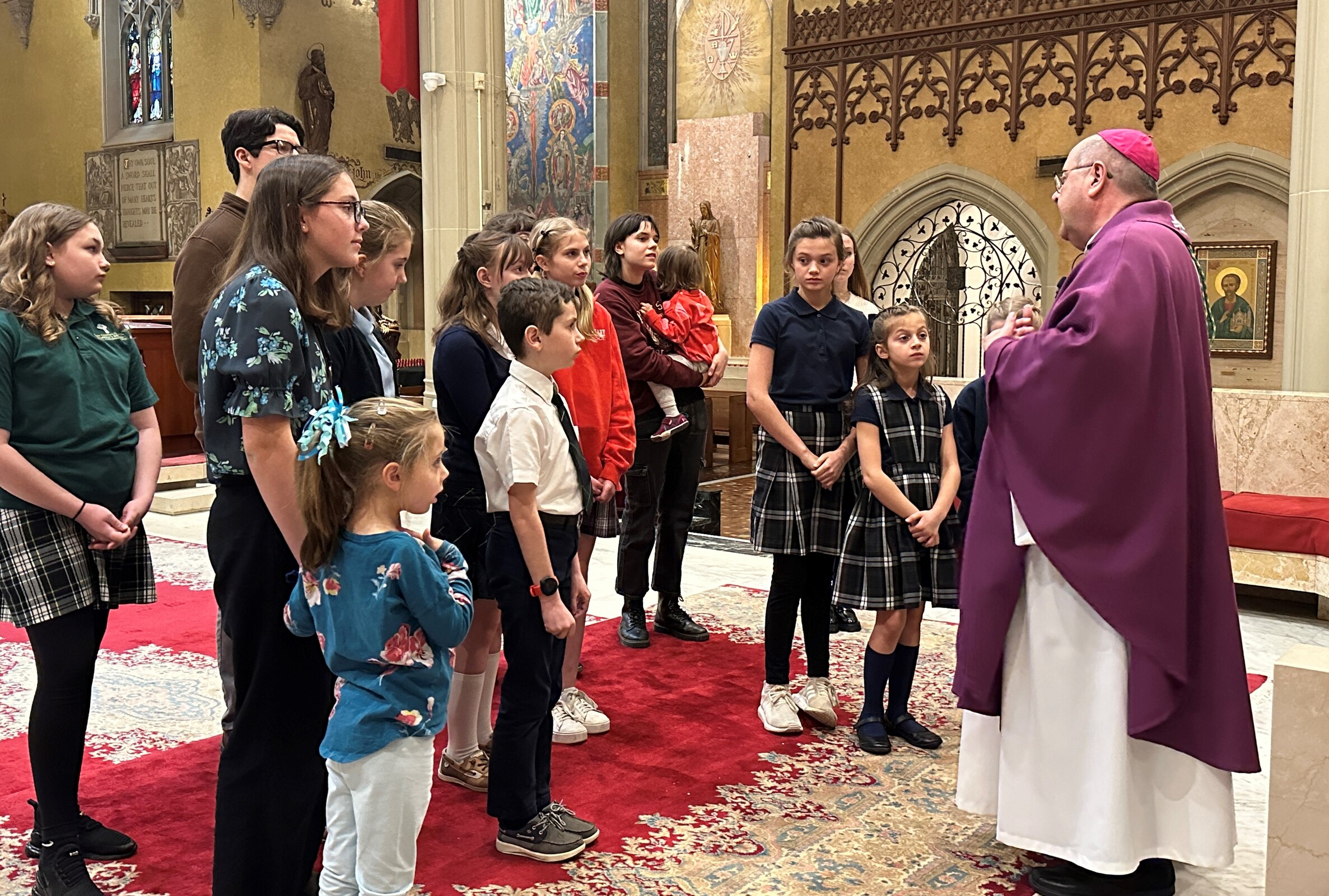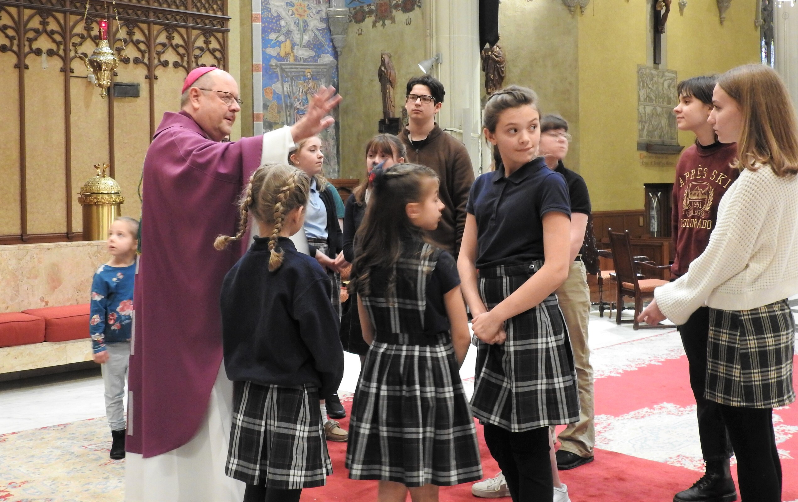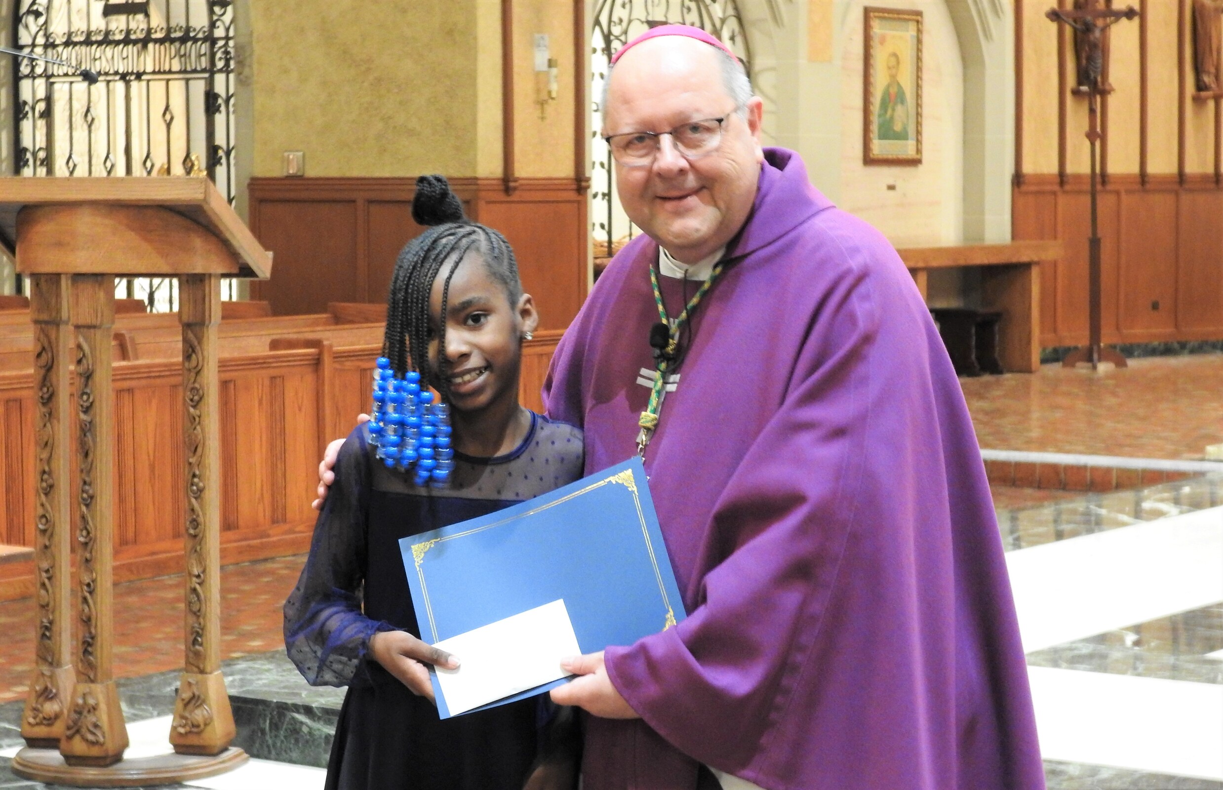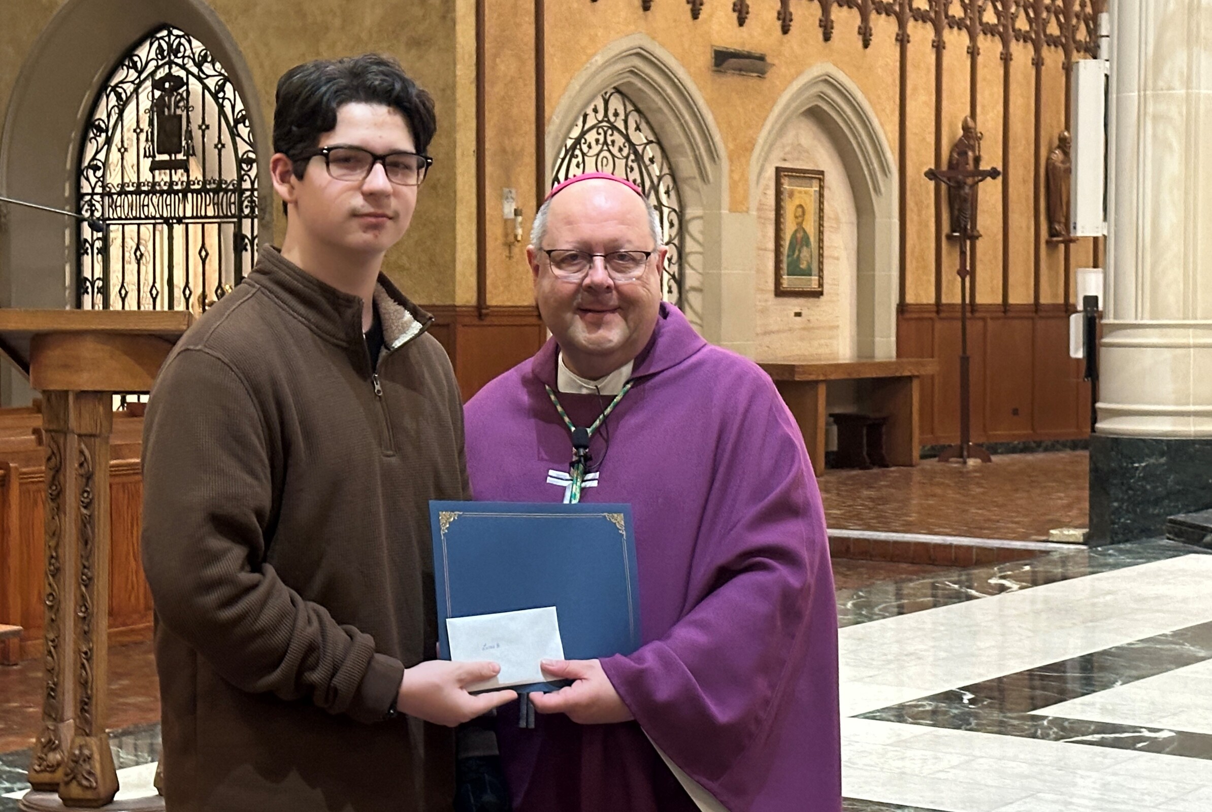 Bishop Edward Malesic congratulated each student and posed for a photo with the individual winners. He also spent some time talking about the cathedral with the students since it was the first time most of them were visiting the mother church of the diocese.