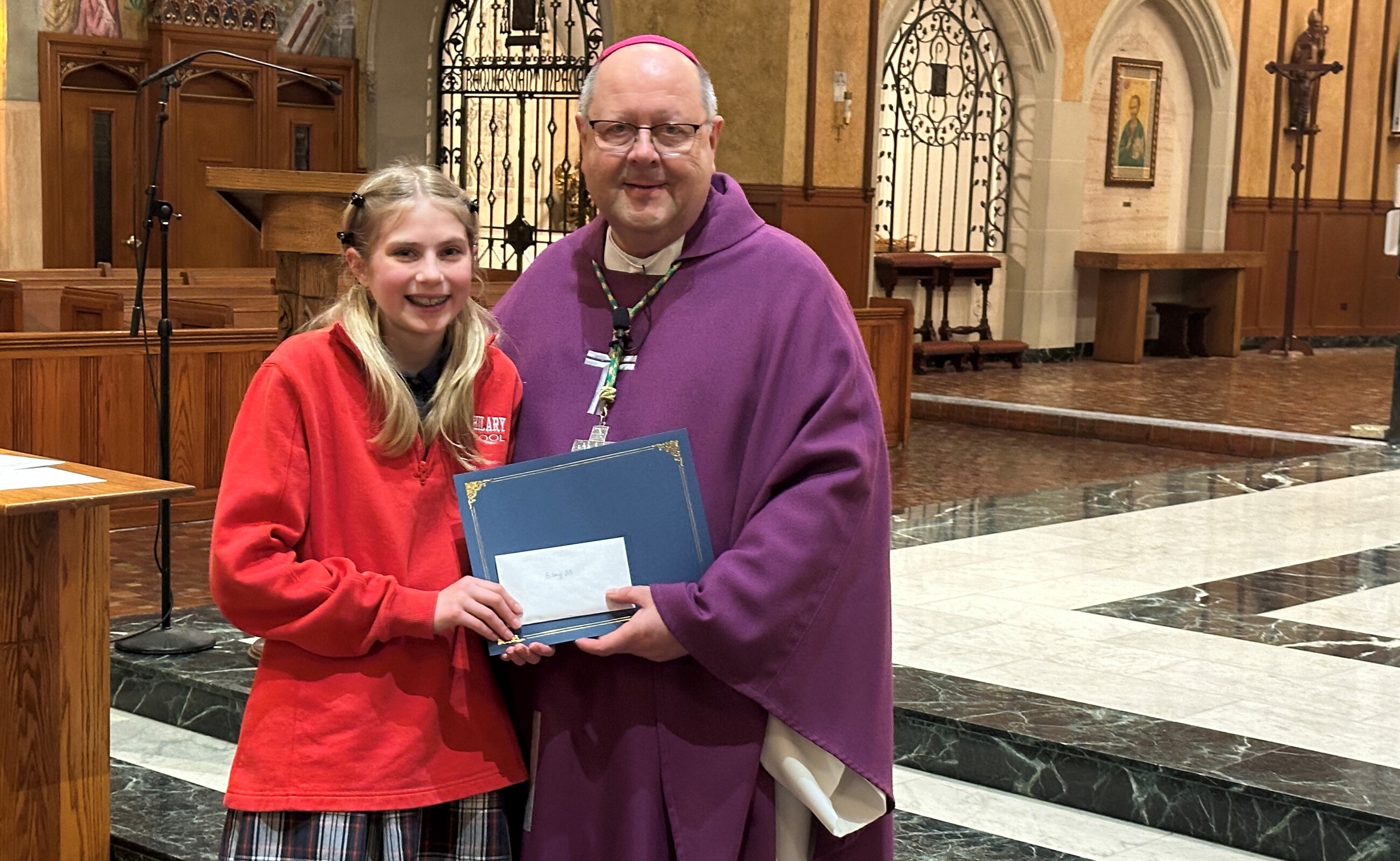 Those selected for honorable mention were Emma Smee, grade 4, St. Sebastian School, Akron; Gray Davis, grade 7, St. Hilary School, Fairlawn and Ellena Juric, All Saints School of St. John Vianney, Wickliffe; and Lucas Blau-Fuldauer, grade 8, St. Benedict School, Garfield Heights.