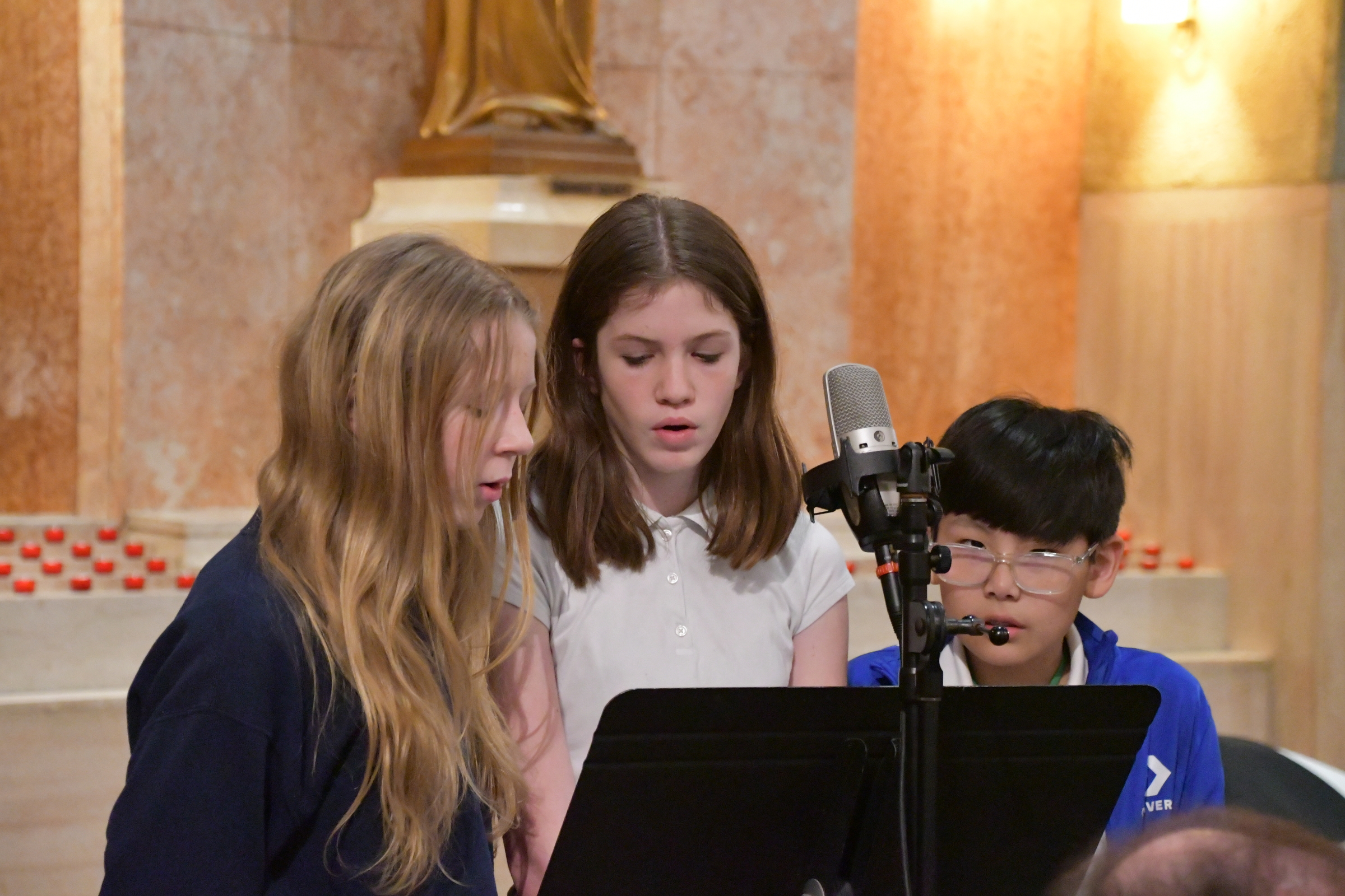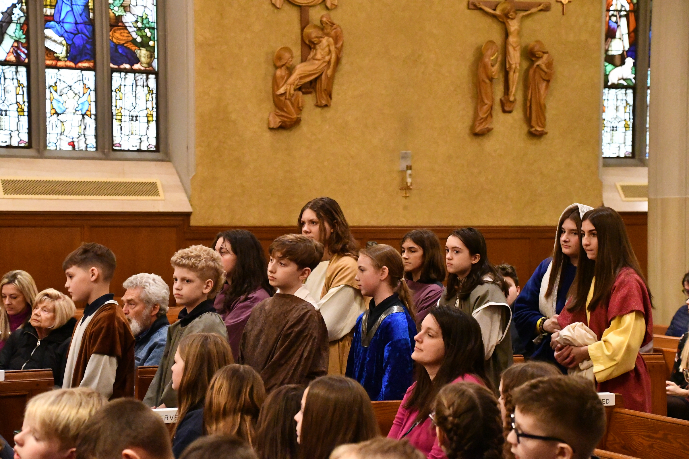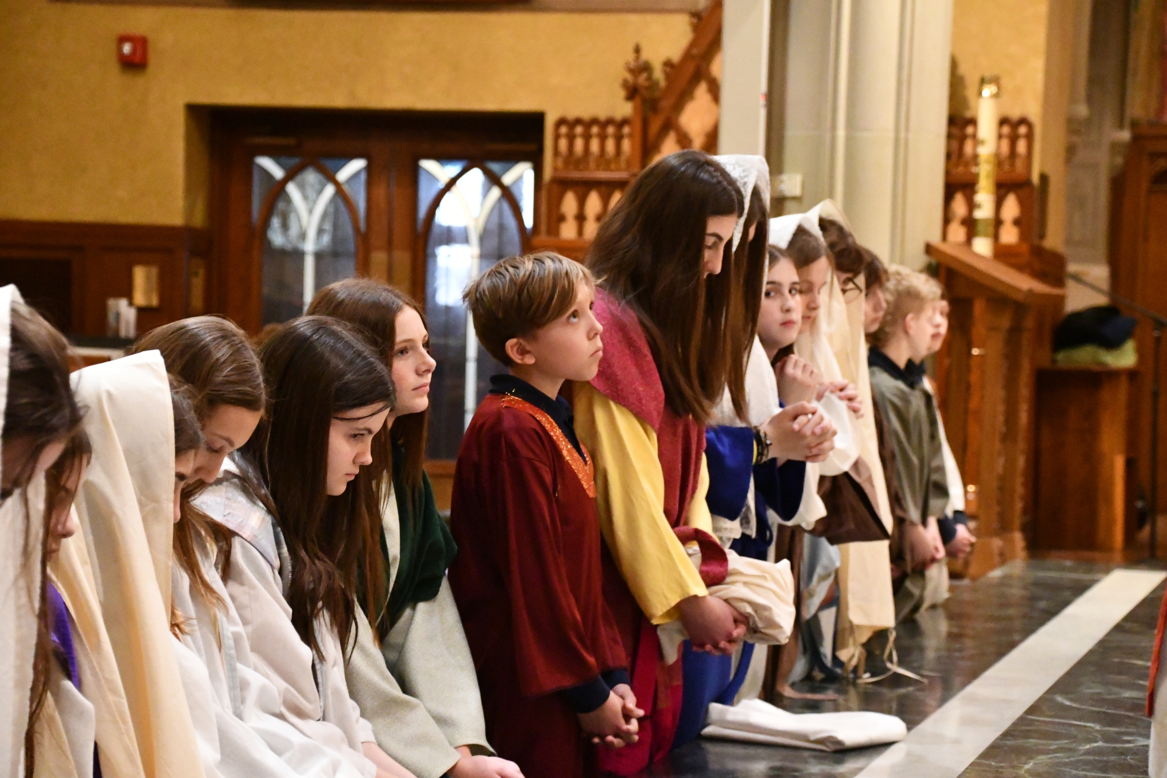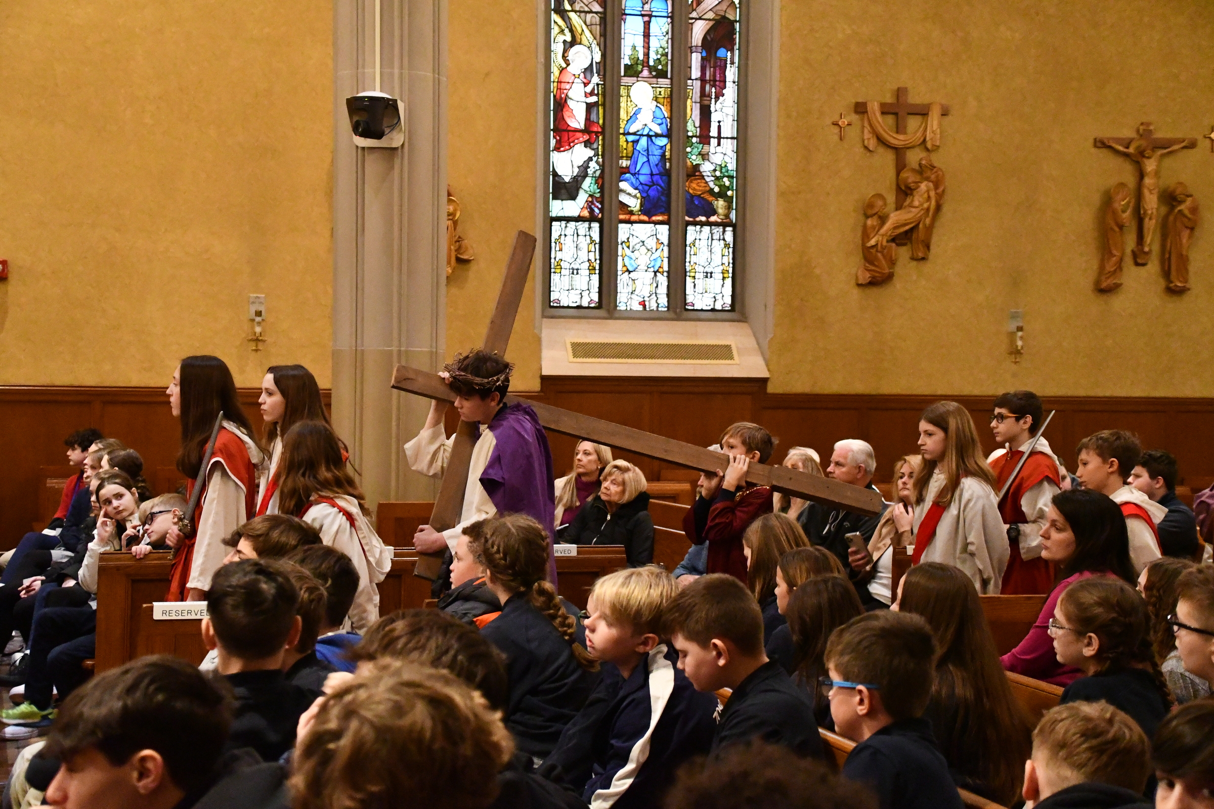 Students in grades 5-8 who are members of the FaithBuilders Leadership Club presented living Stations of the Cross in the cathedral. The living stations presentation is a tradition at the parish that they shared with a wider group at the cathedral this year.