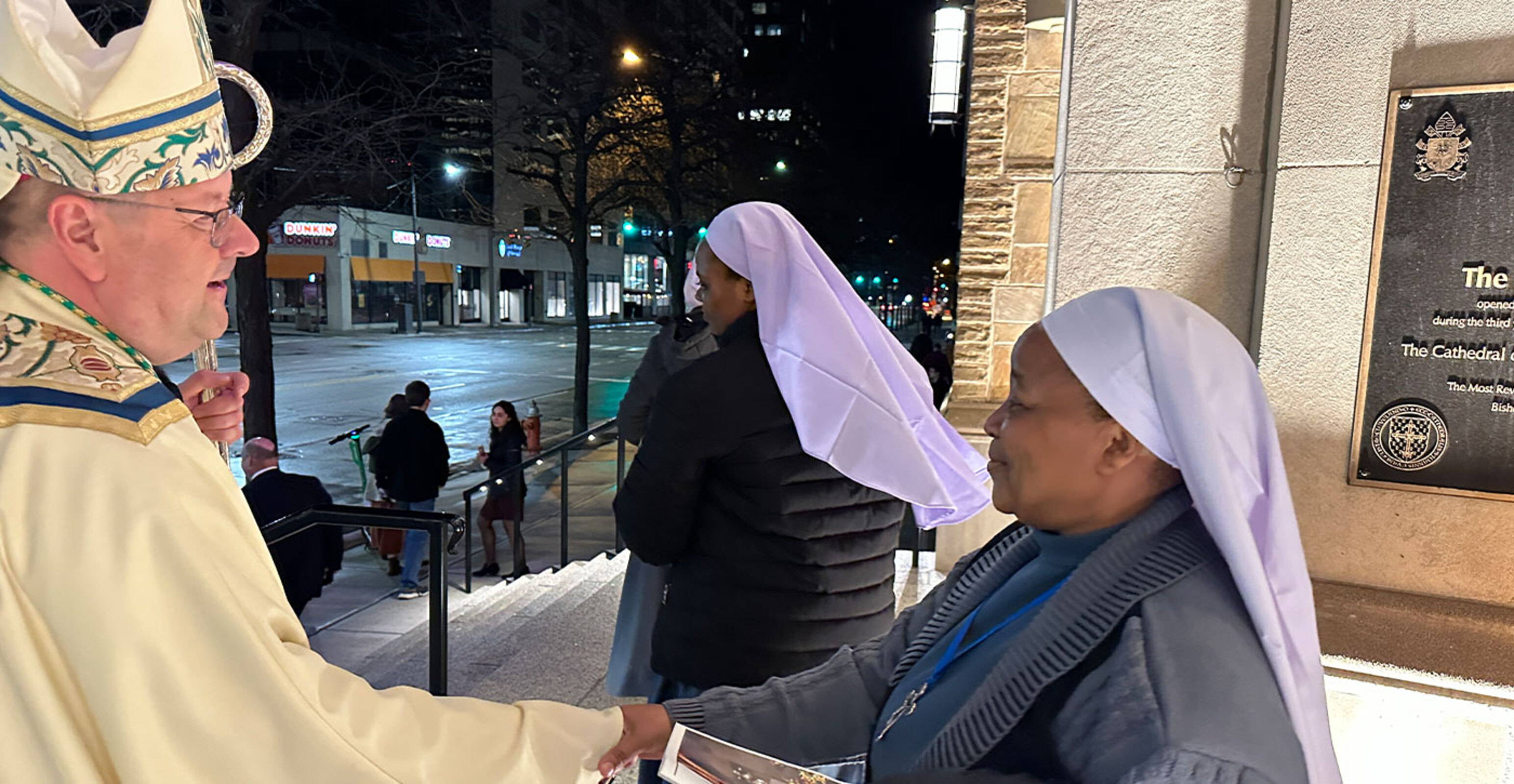 When Jesus came, he took on our humanity so that we could share his divinity, the bishop explained. He mentioned a story by Leo Tolstoy about a harsh king who wanted to see God. It took a poor shepherd to show him what God does. The shepherd told the king they needed to exchange clothes.