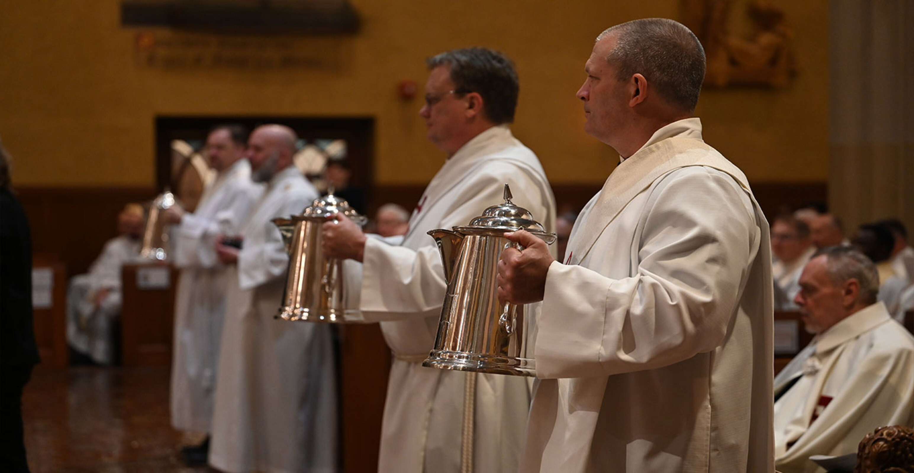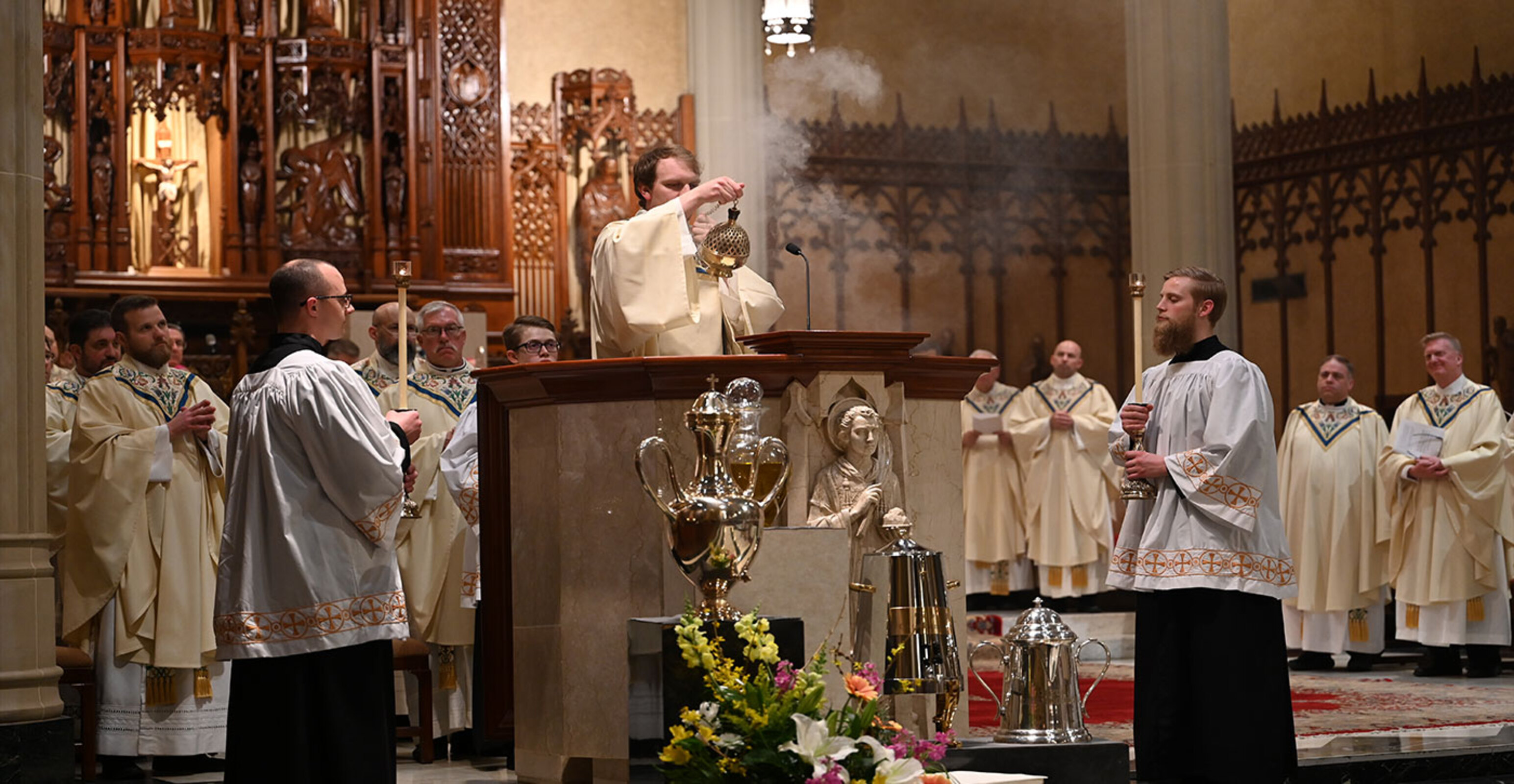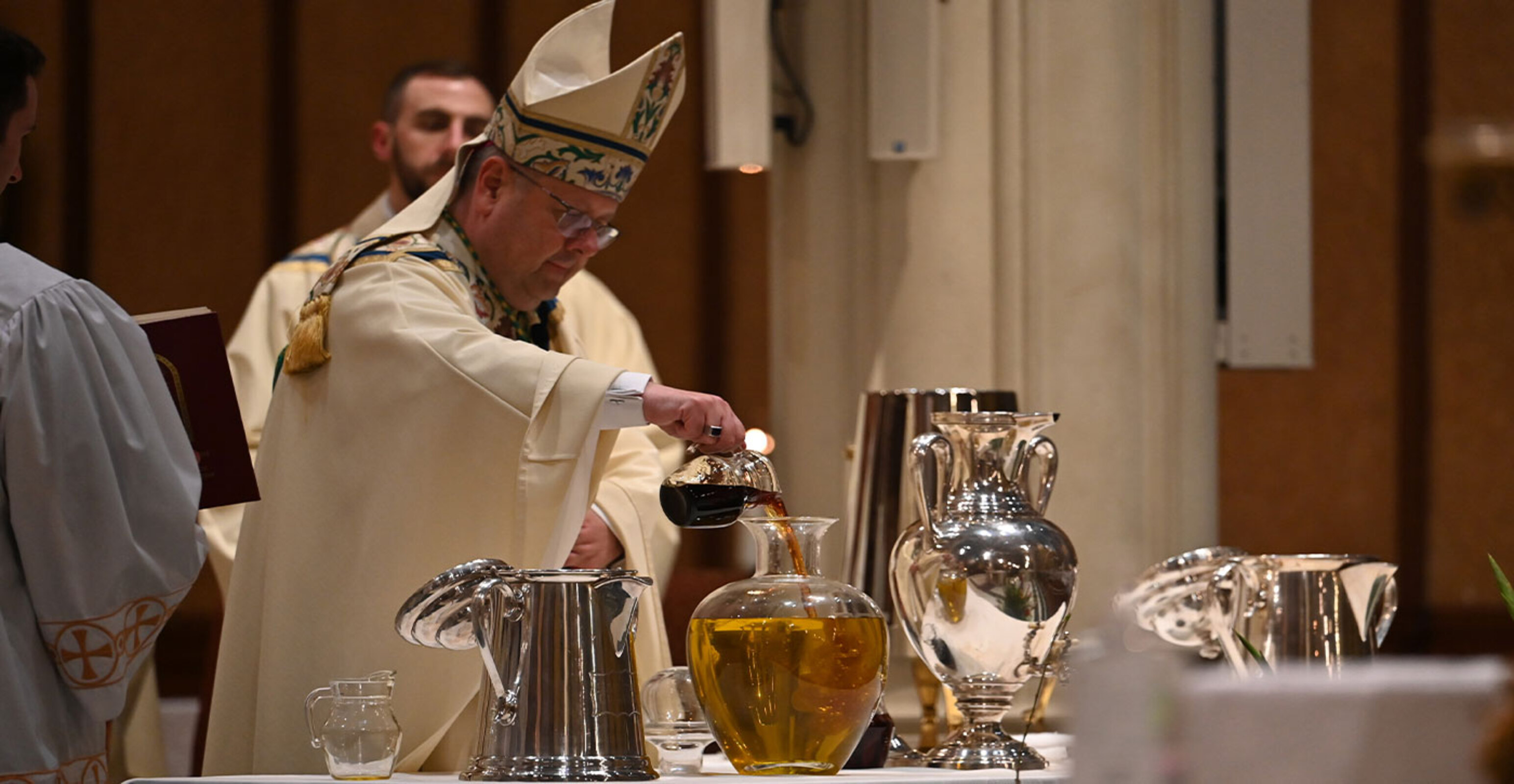 The liturgy, one of the most beautiful in the Church, celebrates the institution of the priesthood and the renewal of priestly promises. In addition, the sacred oils used for sacramental purposes throughout the diocese are blessed during the Mass.
