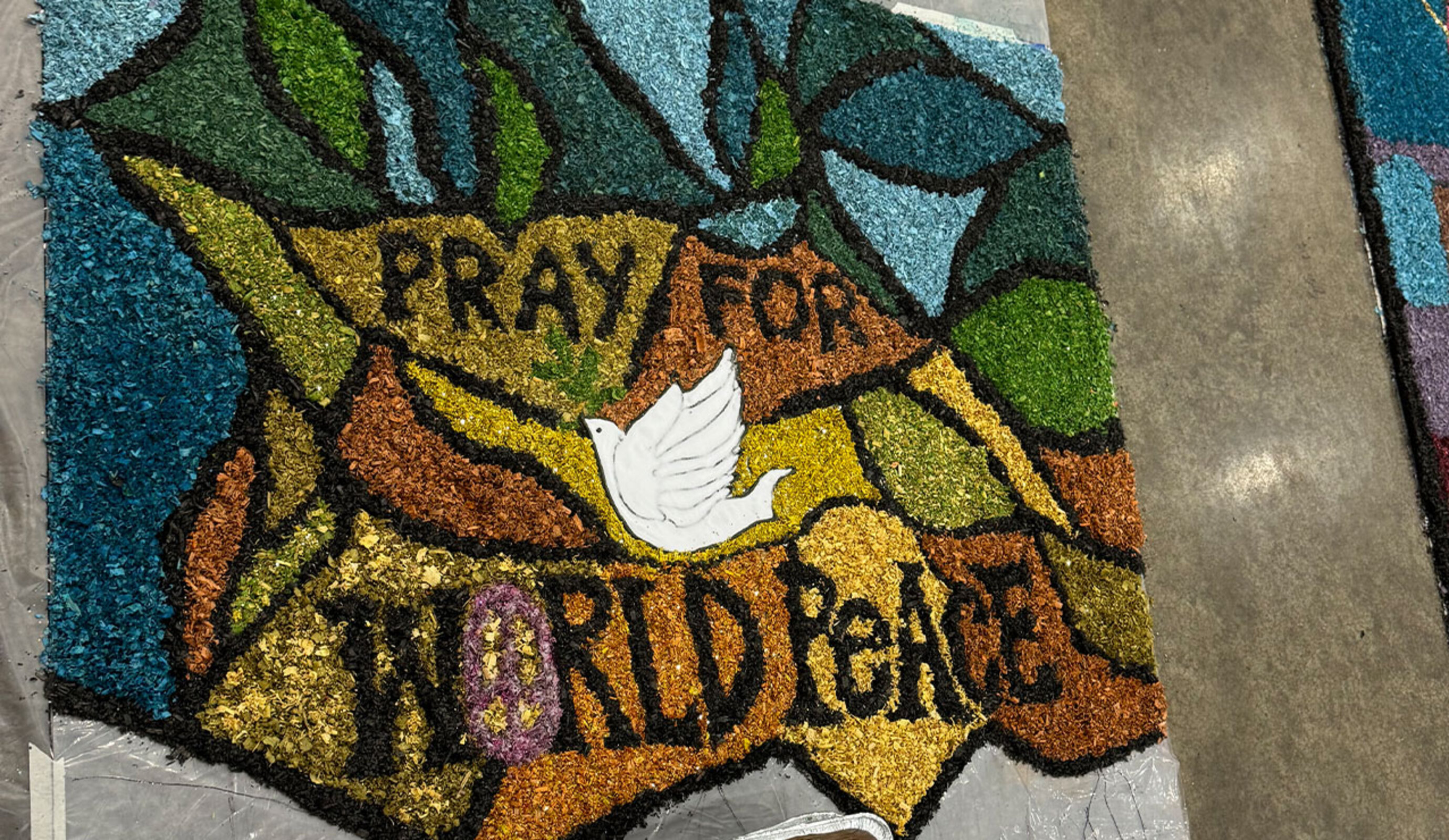 This is the 11th year Sagrada Familia has done the carpets, which began as a Boy Scout project for a parishioner. Volunteers from Sacred Heart Chapel in Lorain, another Hispanic parish, helped launch the Sagrada project. Sacred Heart Chapel has been producing sawdust carpets for about three decades. Click here to learn more about their carpets.