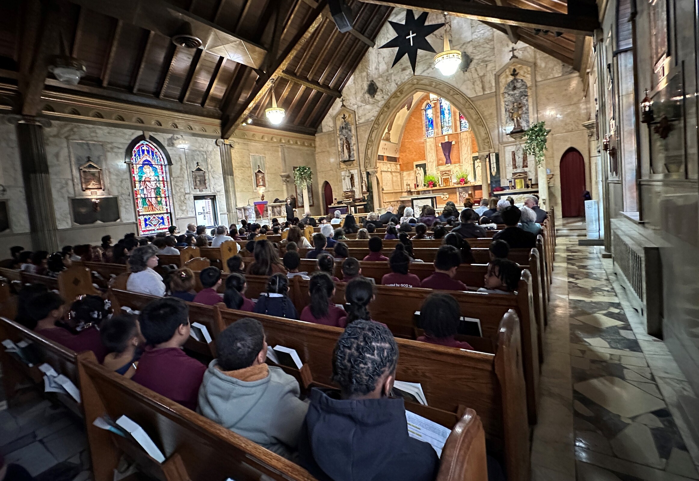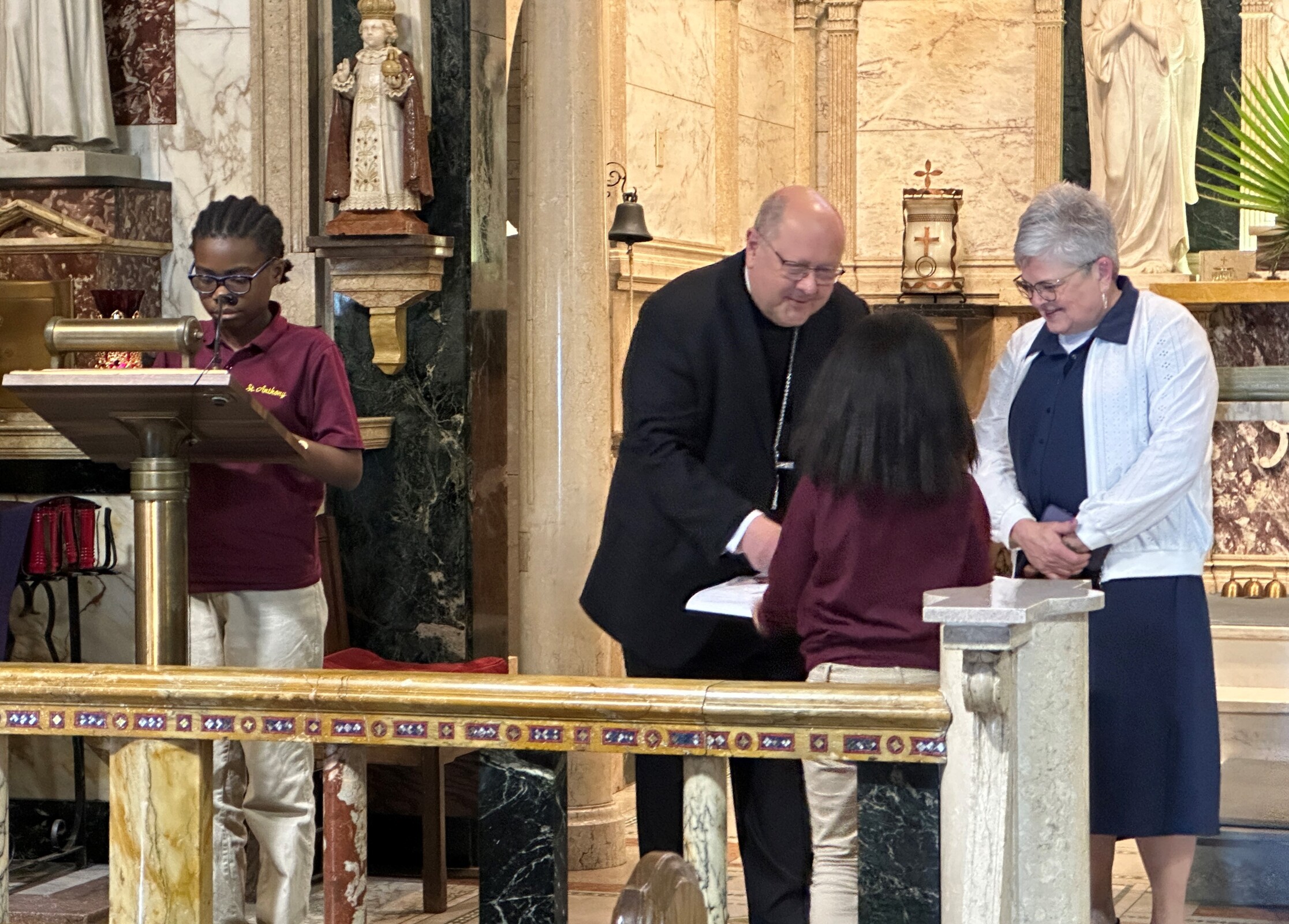 School officials said the program, performed by about 50 seventh and eighth graders, has been offered every other years in recent times. This year, they invited Bishop Edward Malesic and Tracey Arnone, associate superintendent of Catholic schools for the diocese, to attend the afternoon program on March 27. A second performance was offered that night.