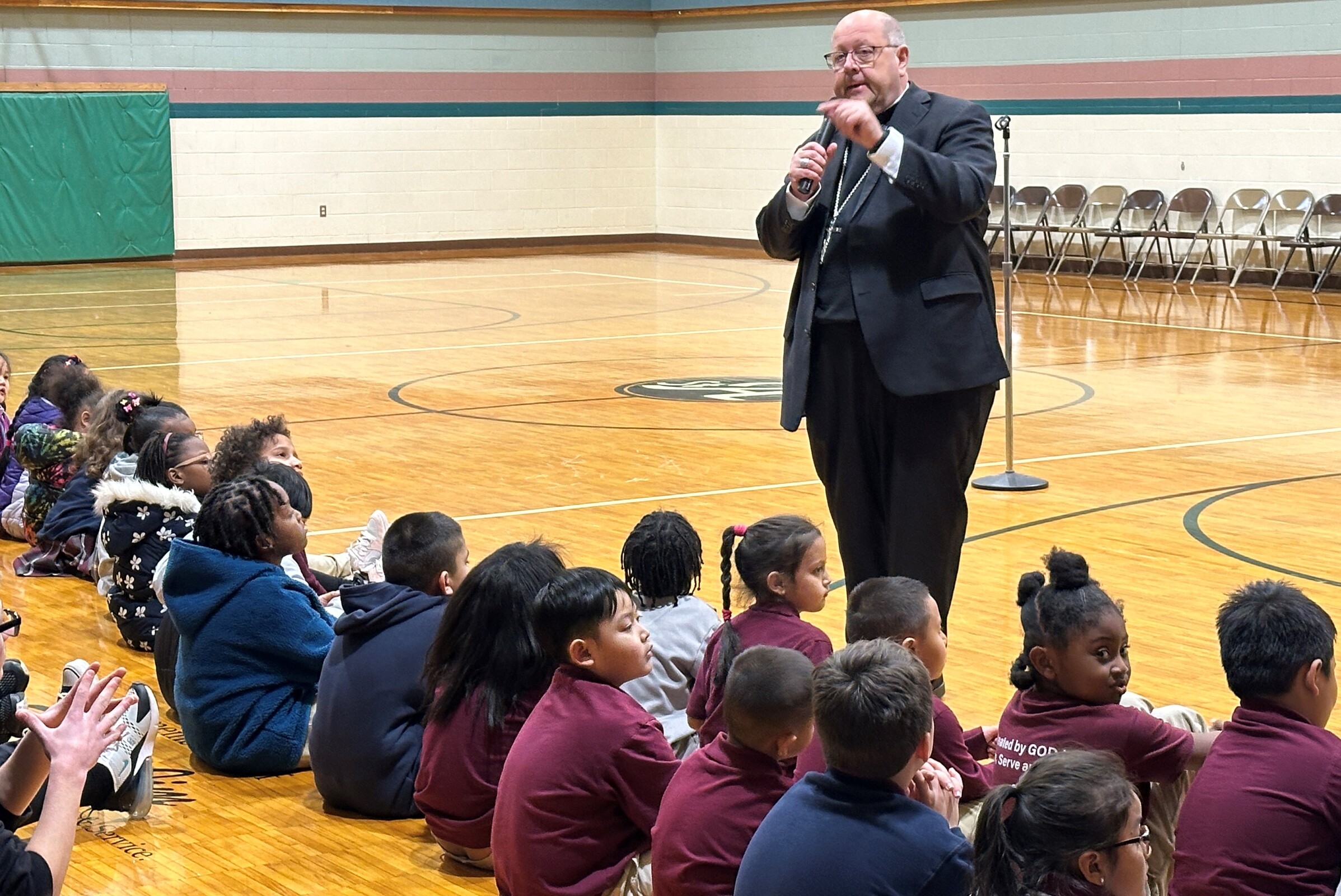 Students moved into the gym, where Bishop Malesic spoke to them briefly.
