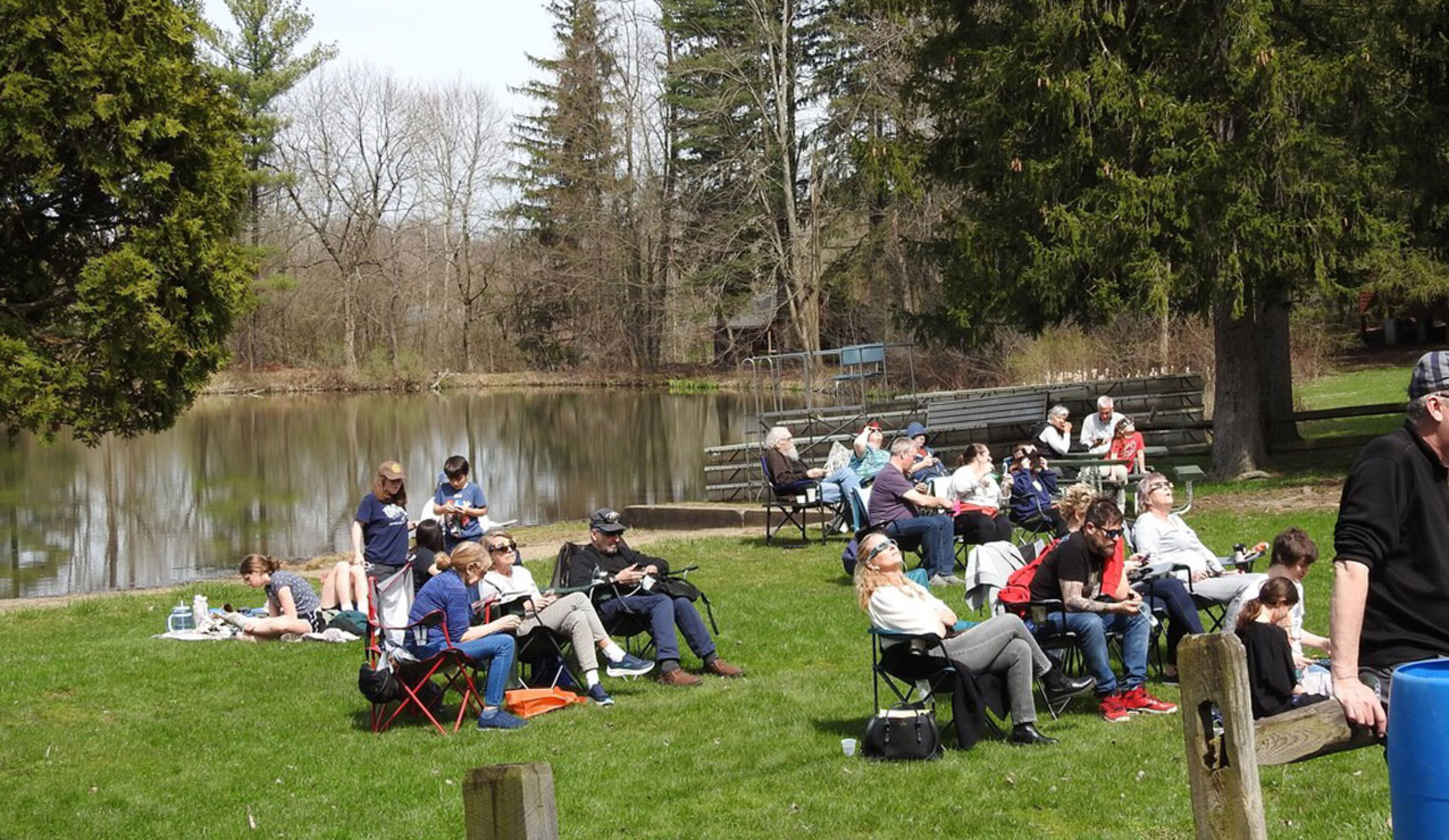 People gathered in their yards, at parks, in schoolyards, parish parking lots, at Camp Christopher in Bath and at the Center for Pastoral Leadership in Wickliffe. Fortunately, the rain and clouds moved out, leaving a warm, sunny spring day that was perfect for viewing the once-in-a-lifetime event in our area.