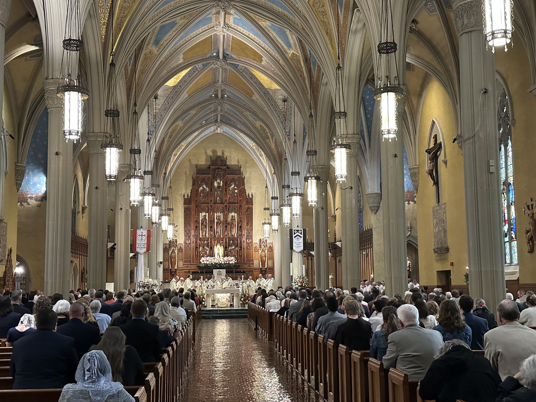 Bishop Malesic said he first met Father Garvin – who was a student at Saint Mary Seminary – in 2020, when he was appointed bishop of Cleveland. “Since then, I’ve come to know him as a gifted composer, musician and a techie.” In fact, two musical pieces used in the ordination liturgy were among the newly ordained priest’s work. He also created a computerized map of the diocese with lights that show which parishes are having Mass, confession or adoration at any given time. (The map was featured in the March/April 2023 issue of Northeast Ohio Catholic magazine.)