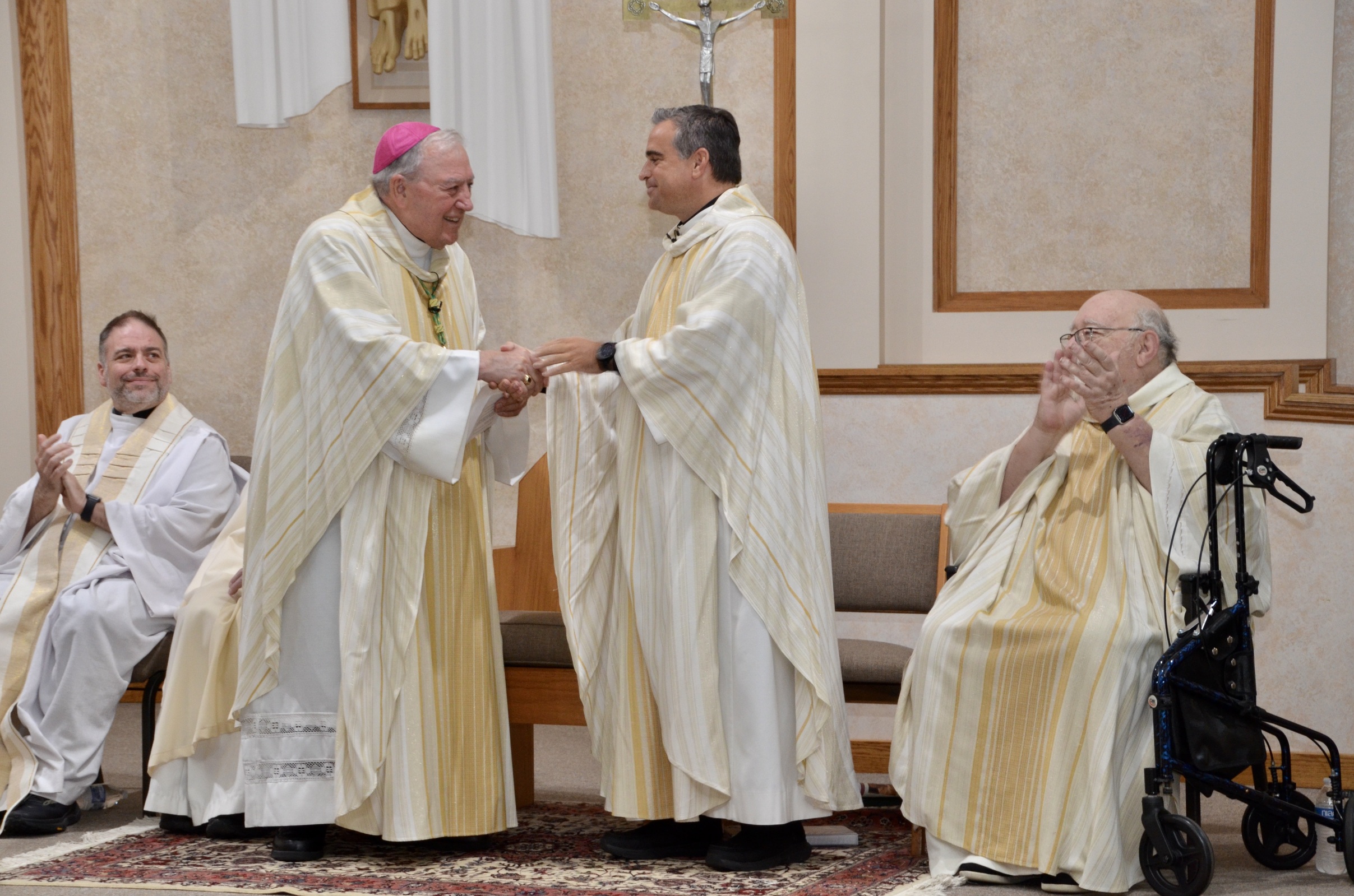 Presiding at the installation Mass was Auxiliary Bishop emeritus Roger Gries, OSB, a longtime friend of the new pastor. During Father Denk’s childhood, Bishop Gries provided pastoral assistance at his parish, Holy Family in Parma. He ordained Father Denk to the transitional diaconate on Nov. 5, 2006.