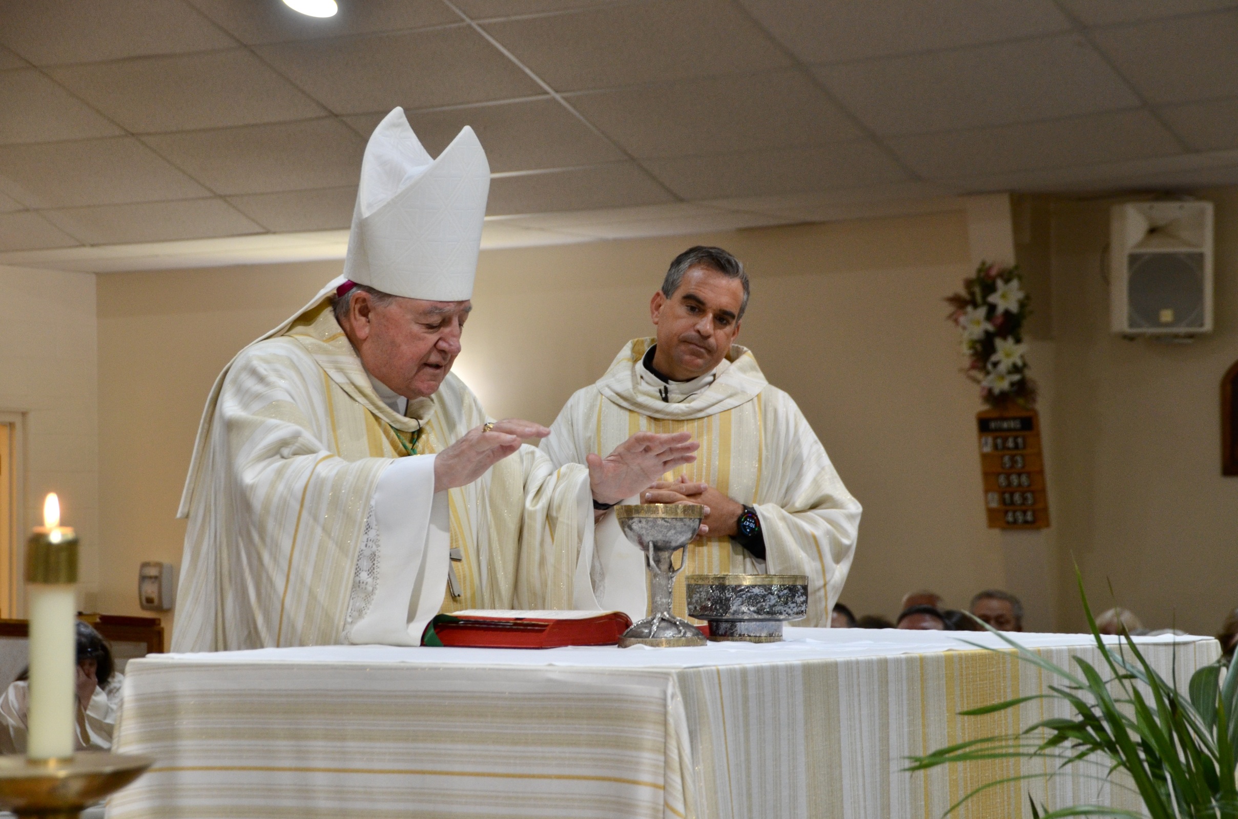 It summed up what happened there on May 12, which was Mother’s Day, the solemnity of the Ascension of the Lord and the installation of Father Michael Denk as the fifth pastor of St. Matthias Parish. He was assigned as parish administrator on Aug. 14, 2022, when the previous pastor, Father Raymond Sutter retired after serving as pastor for a decade. St. Matthias was established in 1980.
